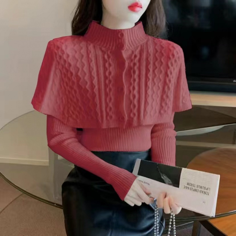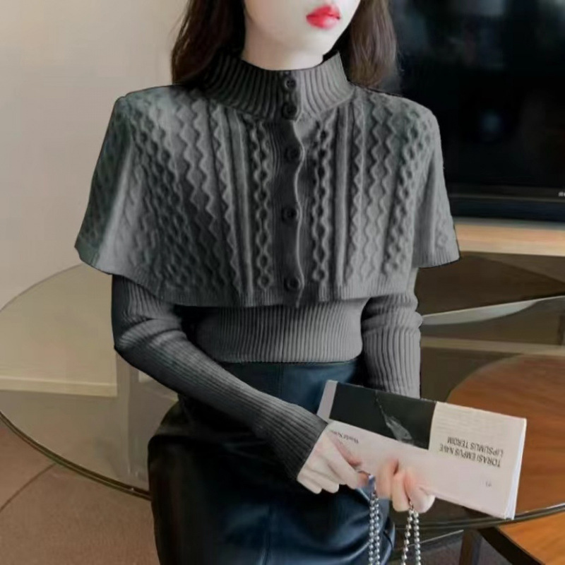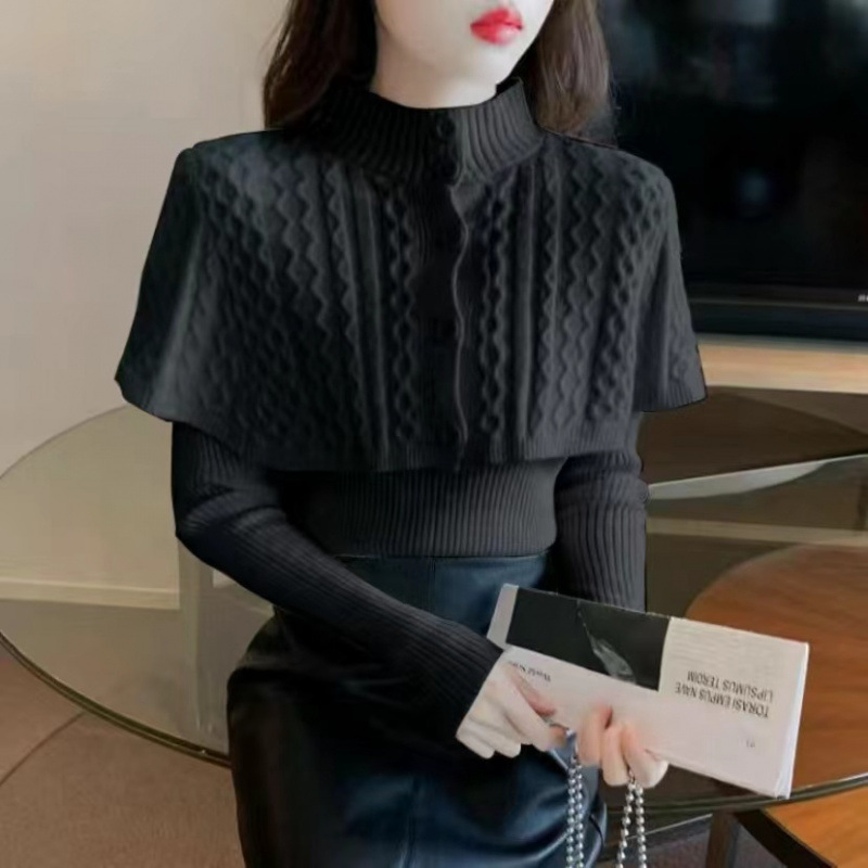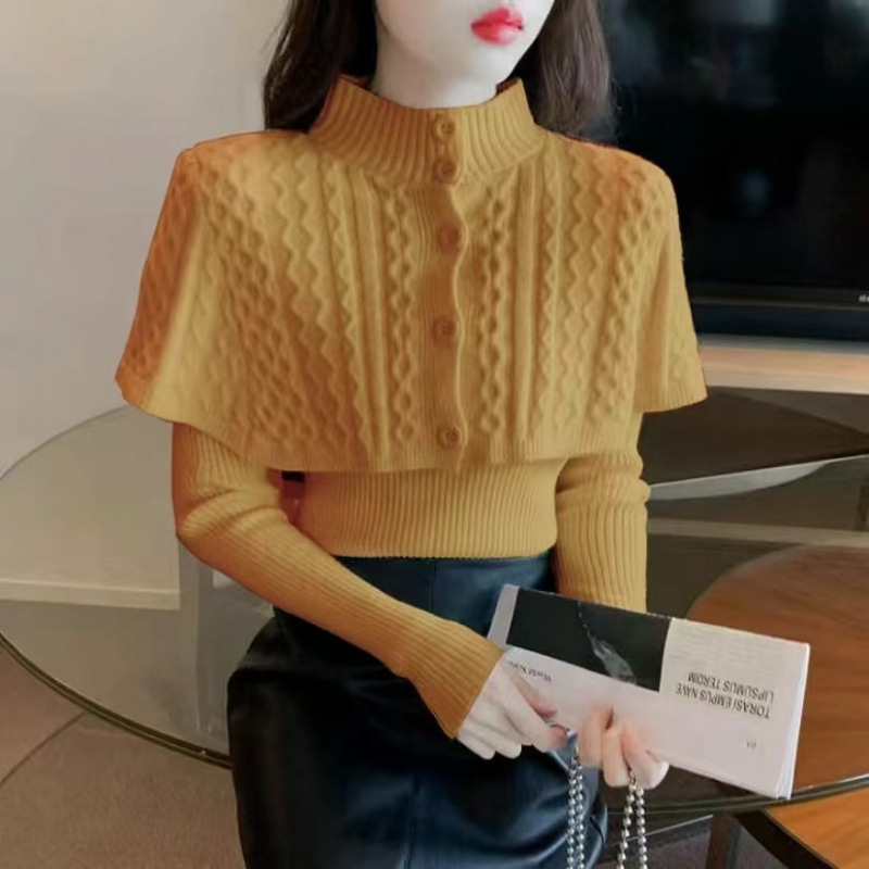 트위스트 니트 하프 하이 칼라 웨스턴 스타일 탑 여성의 가을과 겨울 내부 긴팔 목도리 내부 2 피스 스웨터 베이스스토어 가기