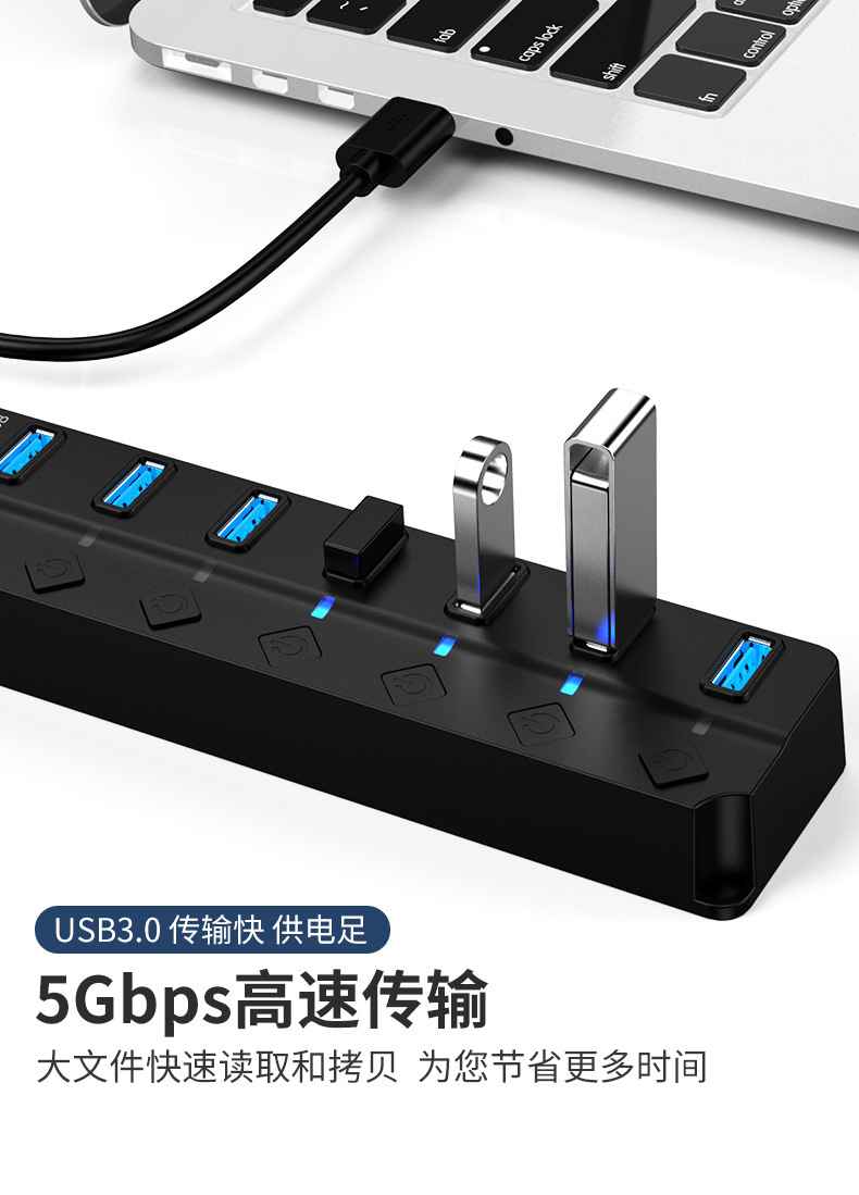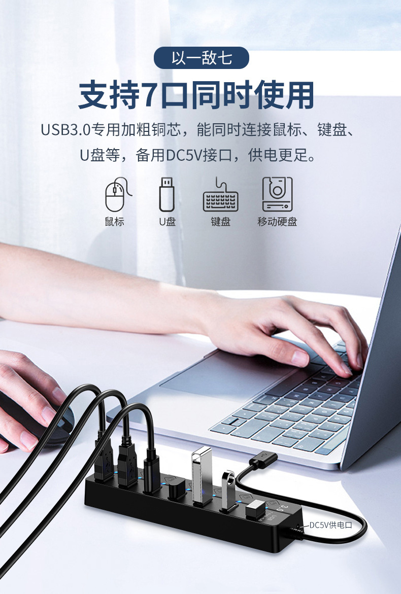 국경 간 usb 익스텐더 1 대 7 usb 스플리터 3.0usb 7 포트 독립 스위치 허브 컴퓨터 허브스토어 가기