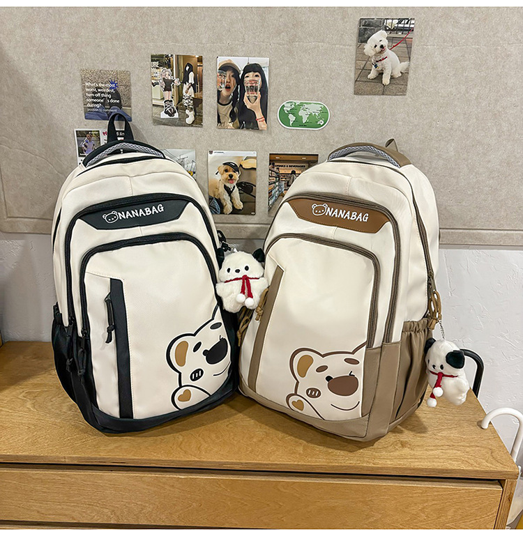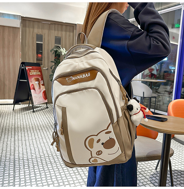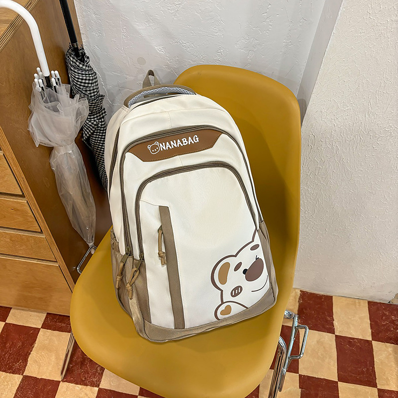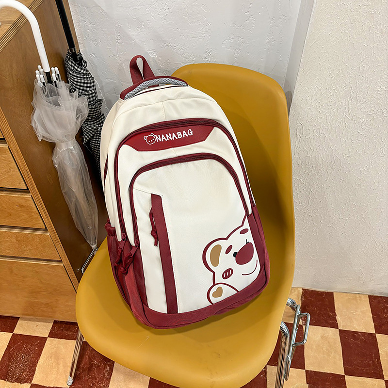 중학교 고등학교 학생 배낭 대용량 컬러 블록 만화 곰 인쇄 스쿨 백 여성의 높은 가치 대학 스타일 배낭스토어 가기