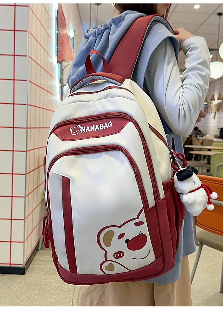 중학교 고등학교 학생 배낭 대용량 컬러 블록 만화 곰 인쇄 스쿨 백 여성의 높은 가치 대학 스타일 배낭