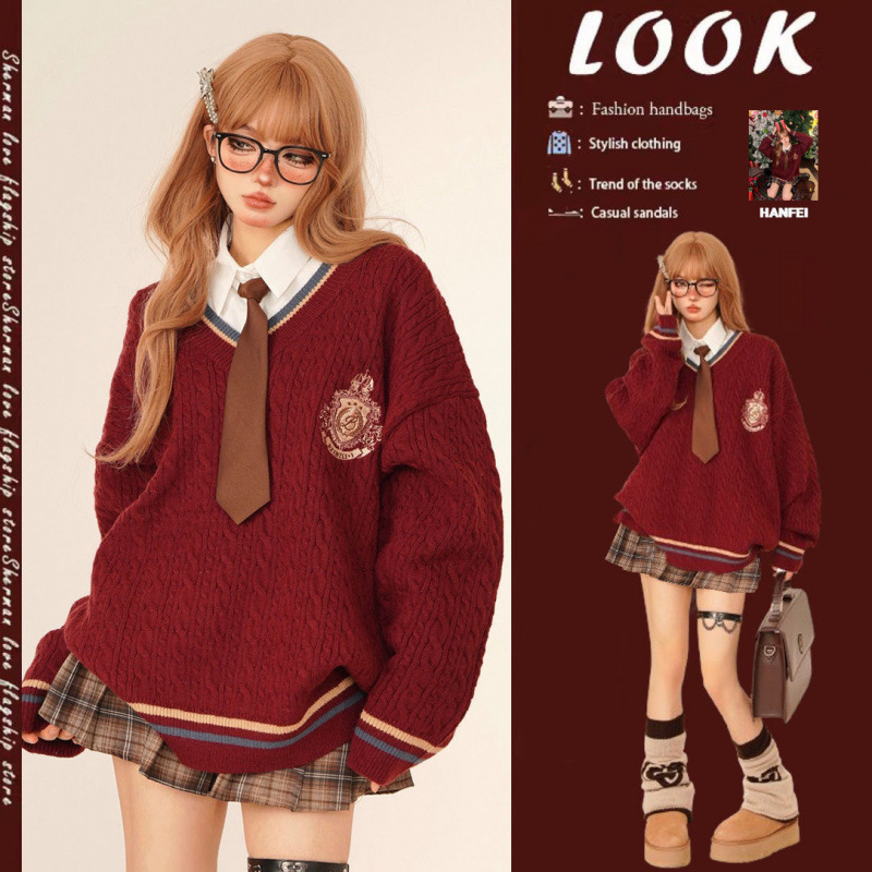 • 빨간색 스웨터 + 셔츠에는 넥타이가 함께 제공됩니다. 976#