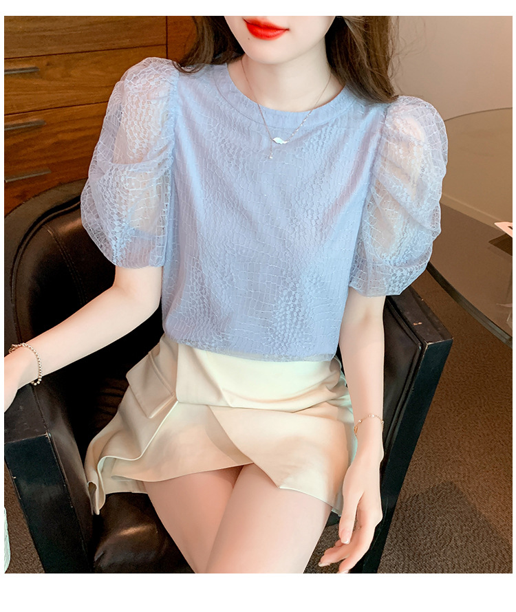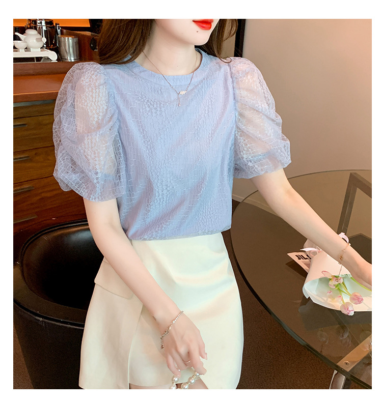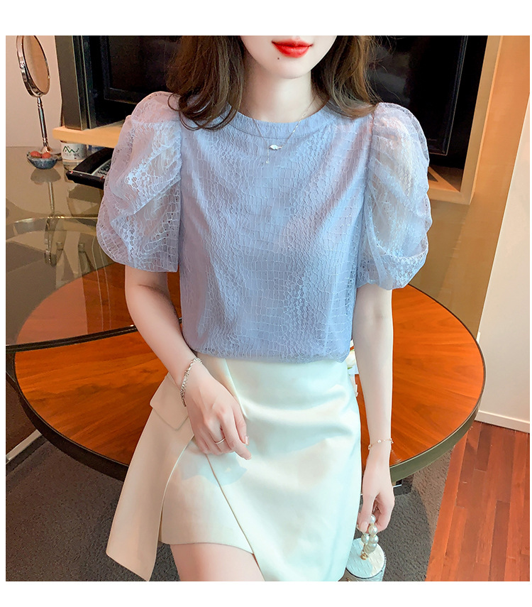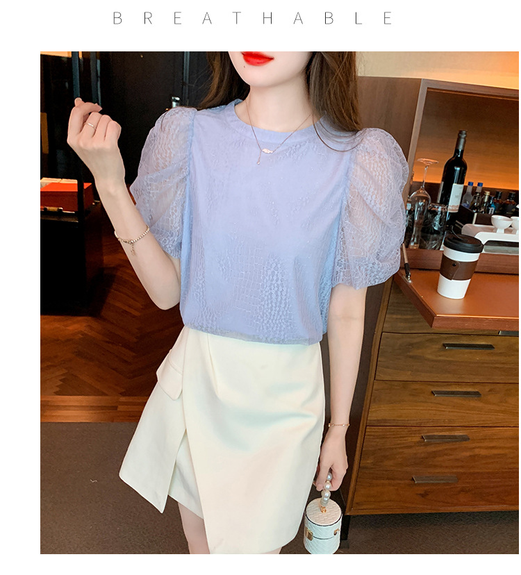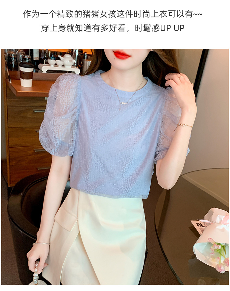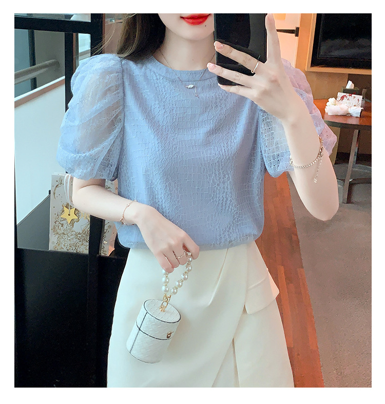 반팔 티셔츠 여자 시폰 셔츠 여름 2025 새로운 프랑스 하이 엔드 센스 퍼프 슬리브 탑 올 매치 우아한 작은 셔츠스토어 가기