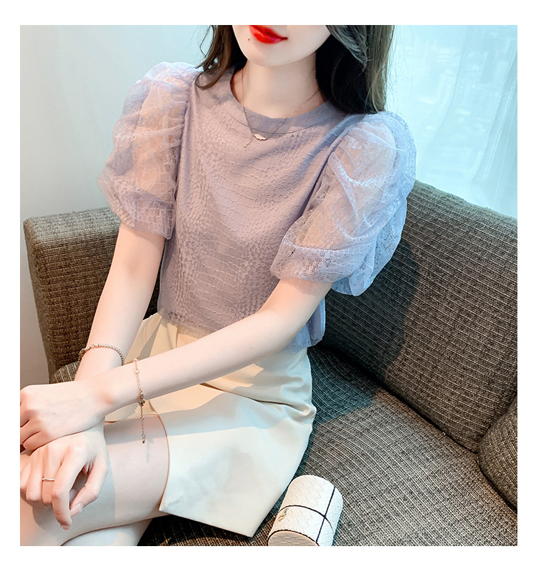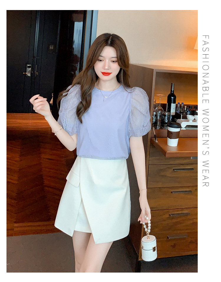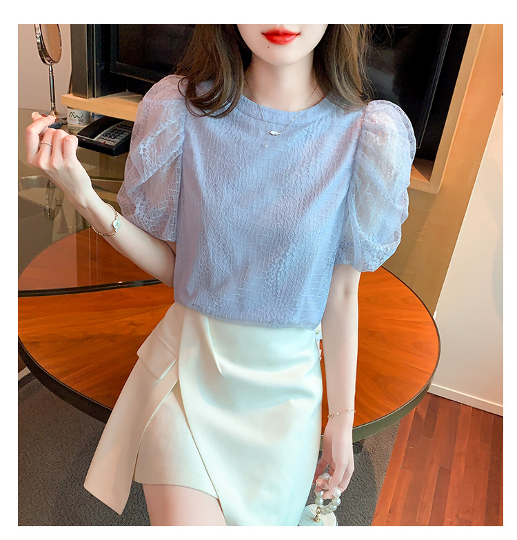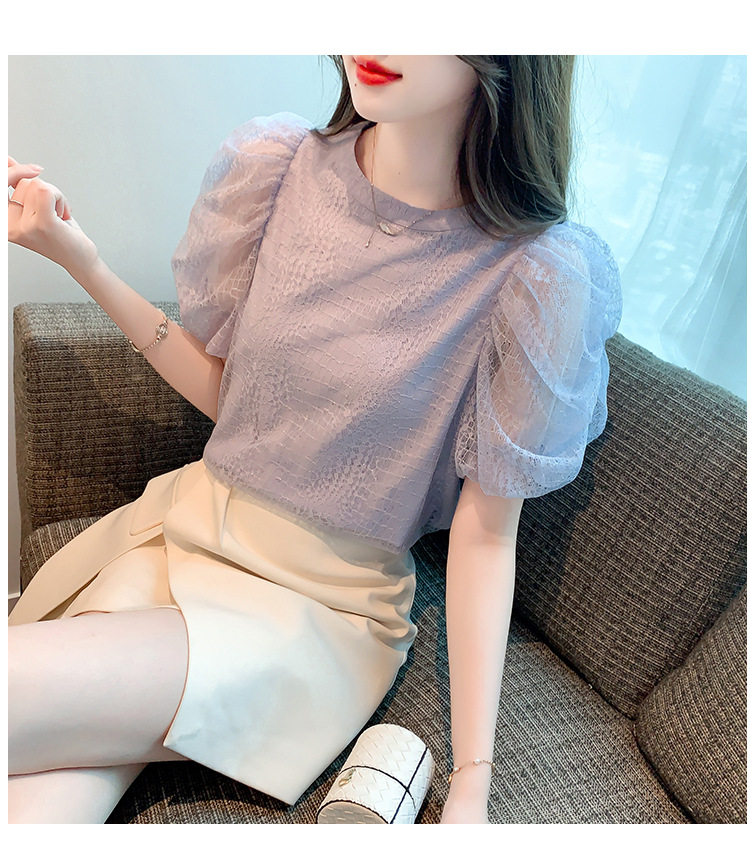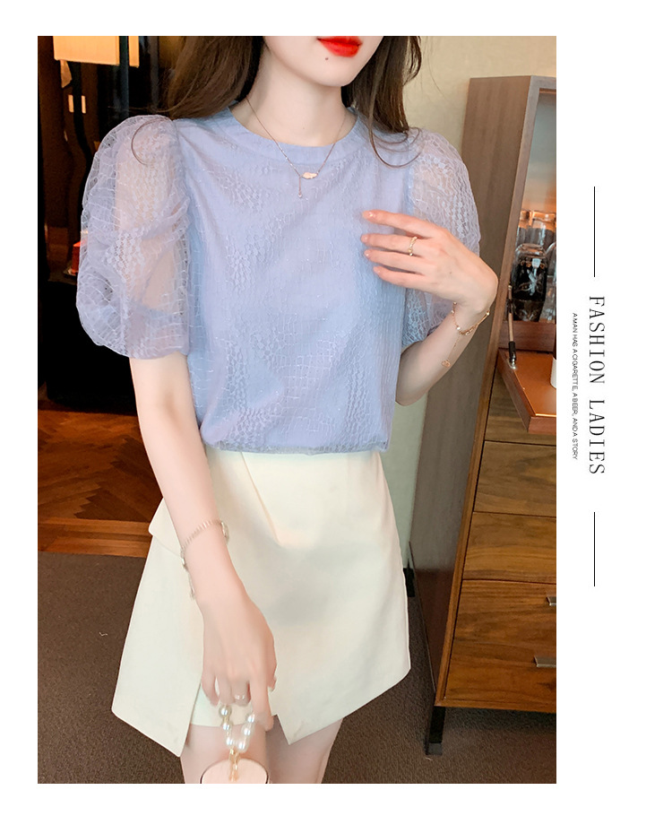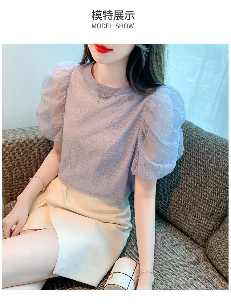 반팔 티셔츠 여자 시폰 셔츠 여름 2025 새로운 프랑스 하이 엔드 센스 퍼프 슬리브 탑 올 매치 우아한 작은 셔츠스토어 가기