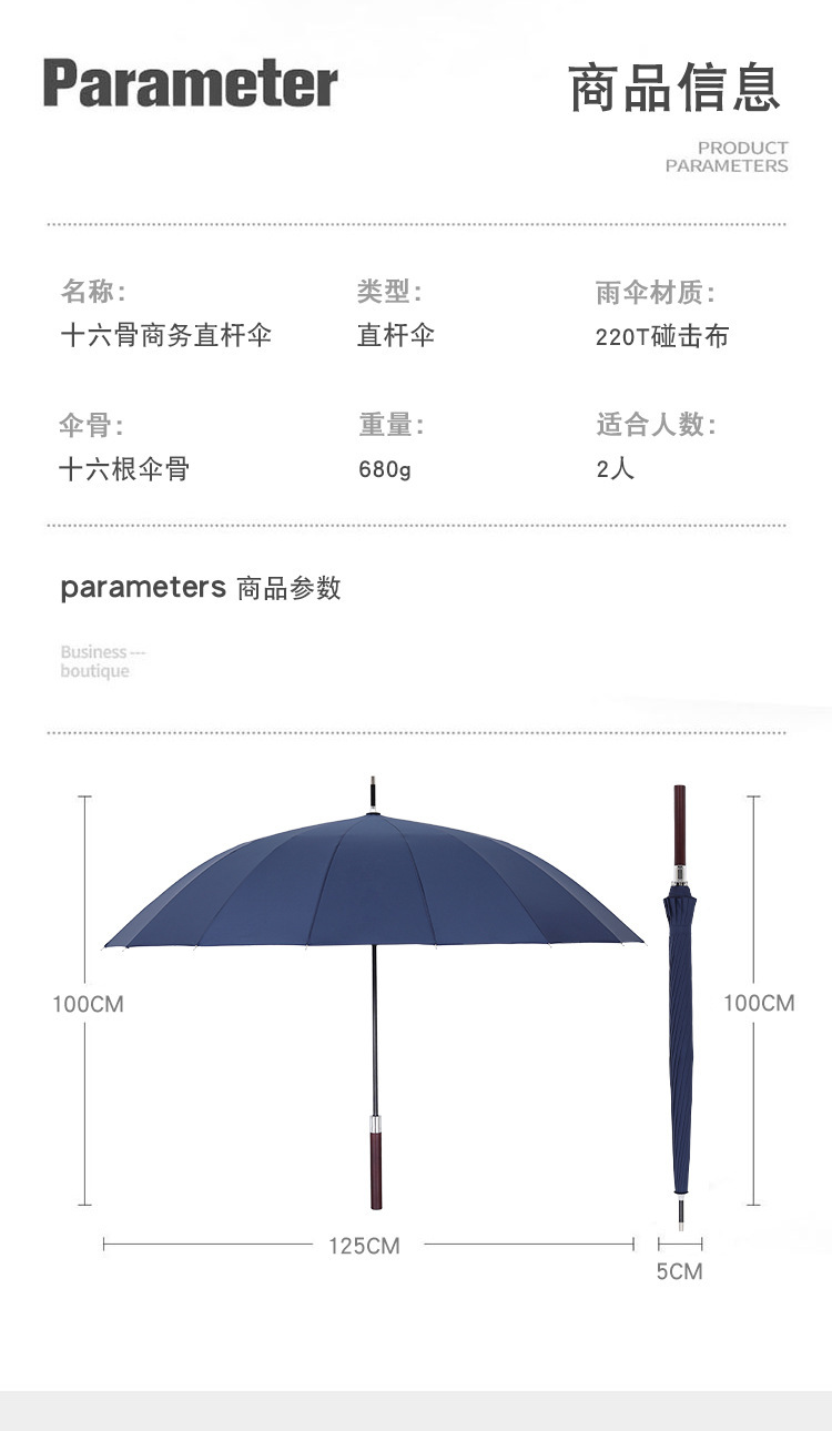 16 뼈 나무 손잡이 골프 우산 이중 바람 방지 스트레이트 긴 손잡이 우산 남성 비즈니스 광고 선물 우산스토어 가기
