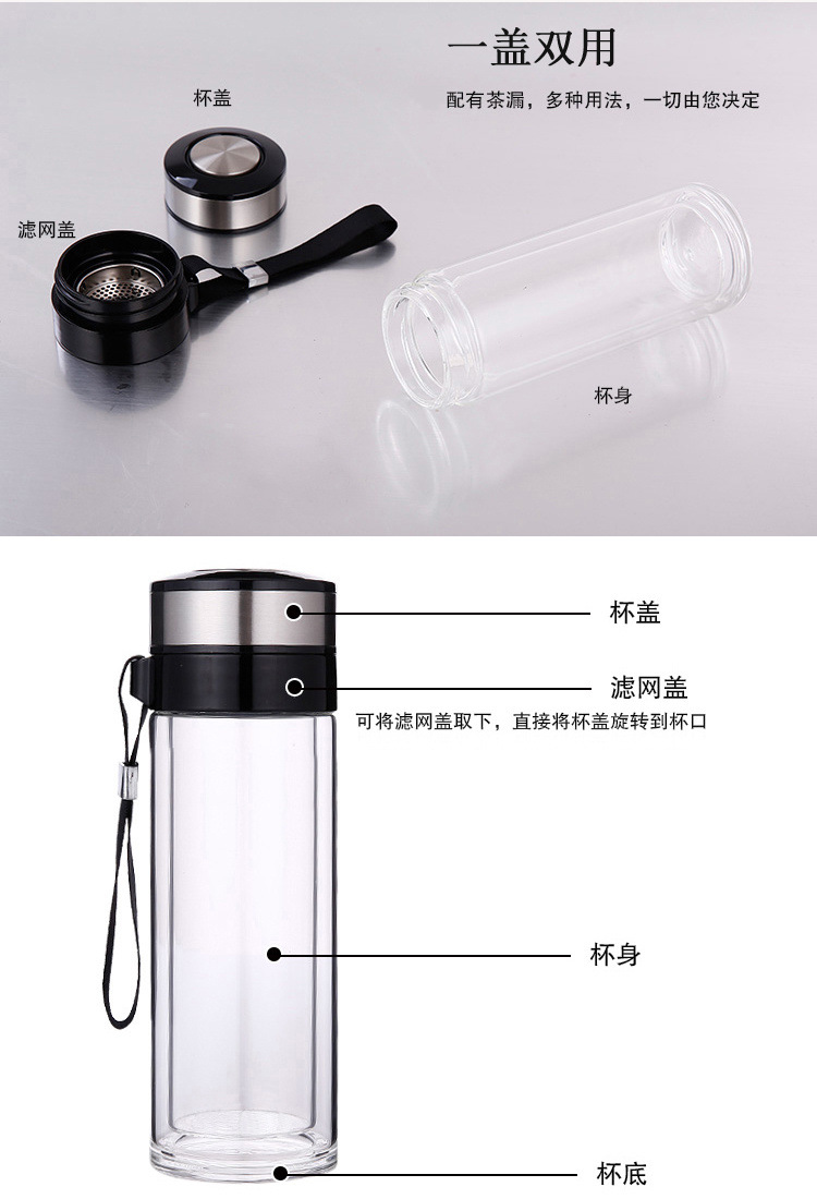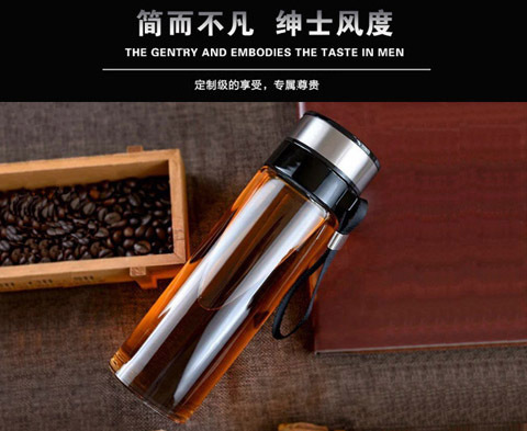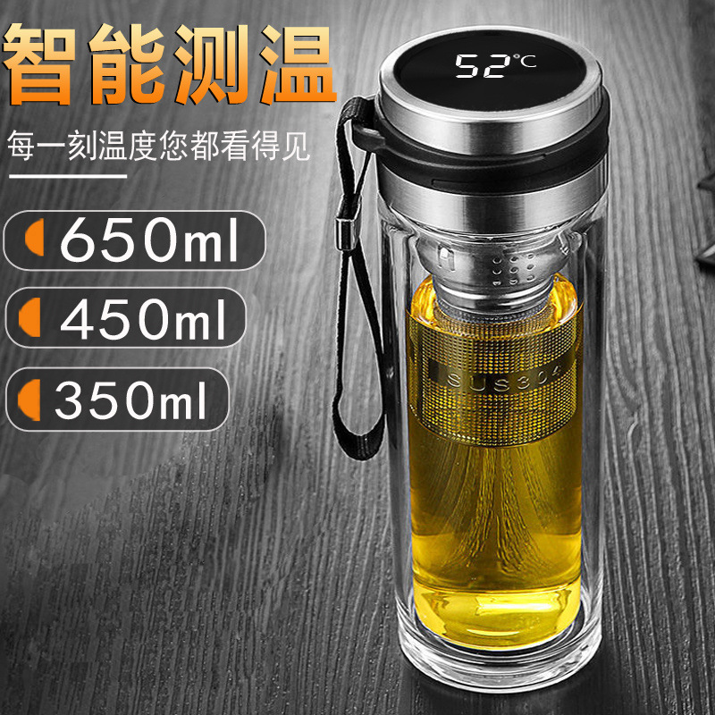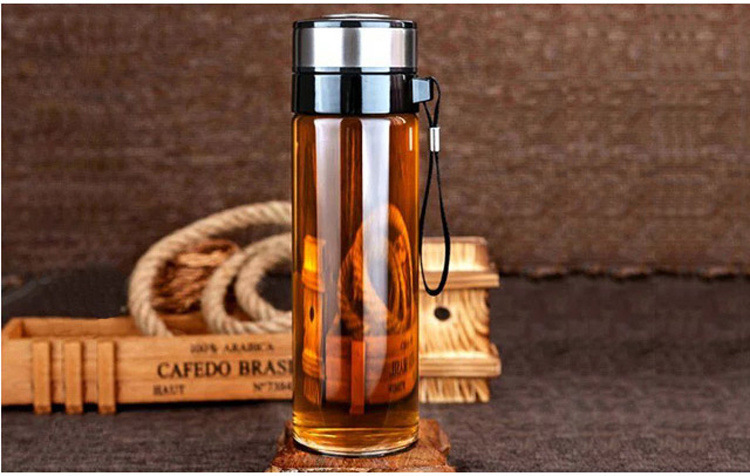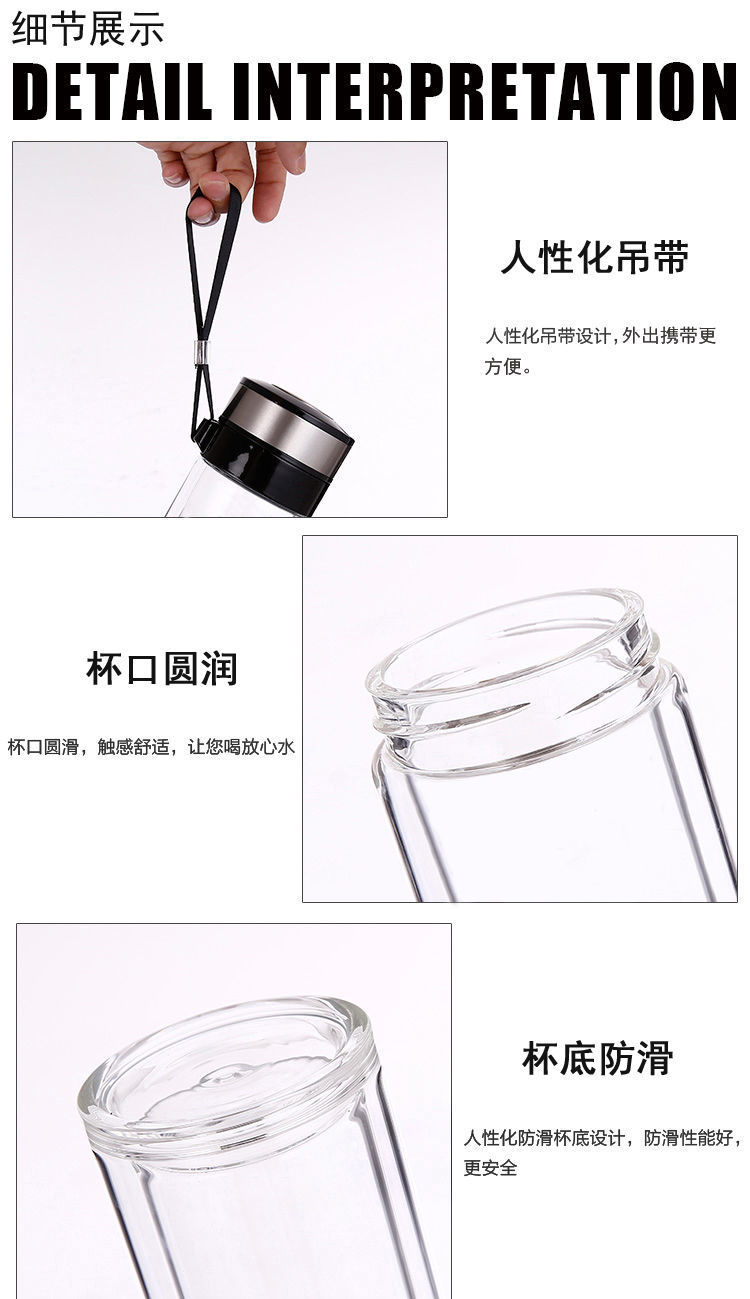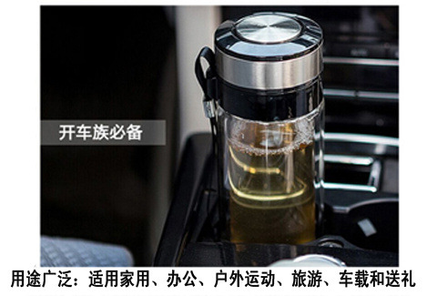 휴대용 더블 레이어 유리 남자 워터 컵 어린이 야외 휴대용 유리 열 절연 안티 스케일 티 컵 자동차 장착