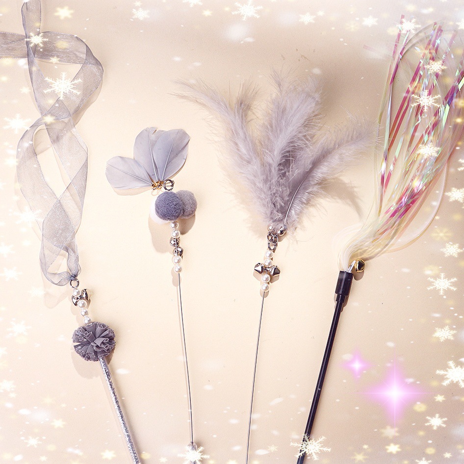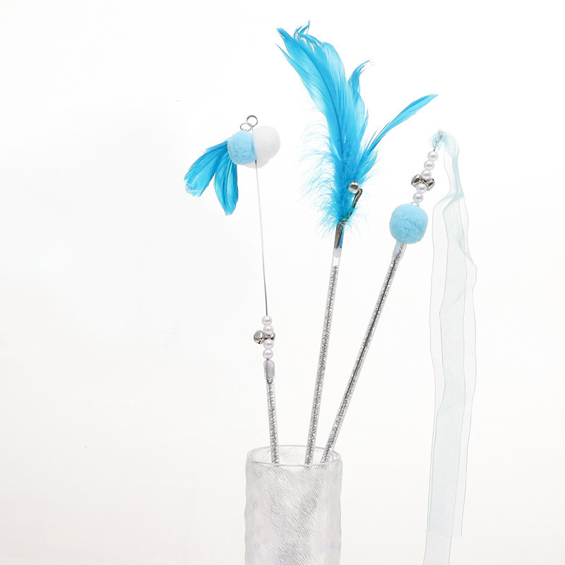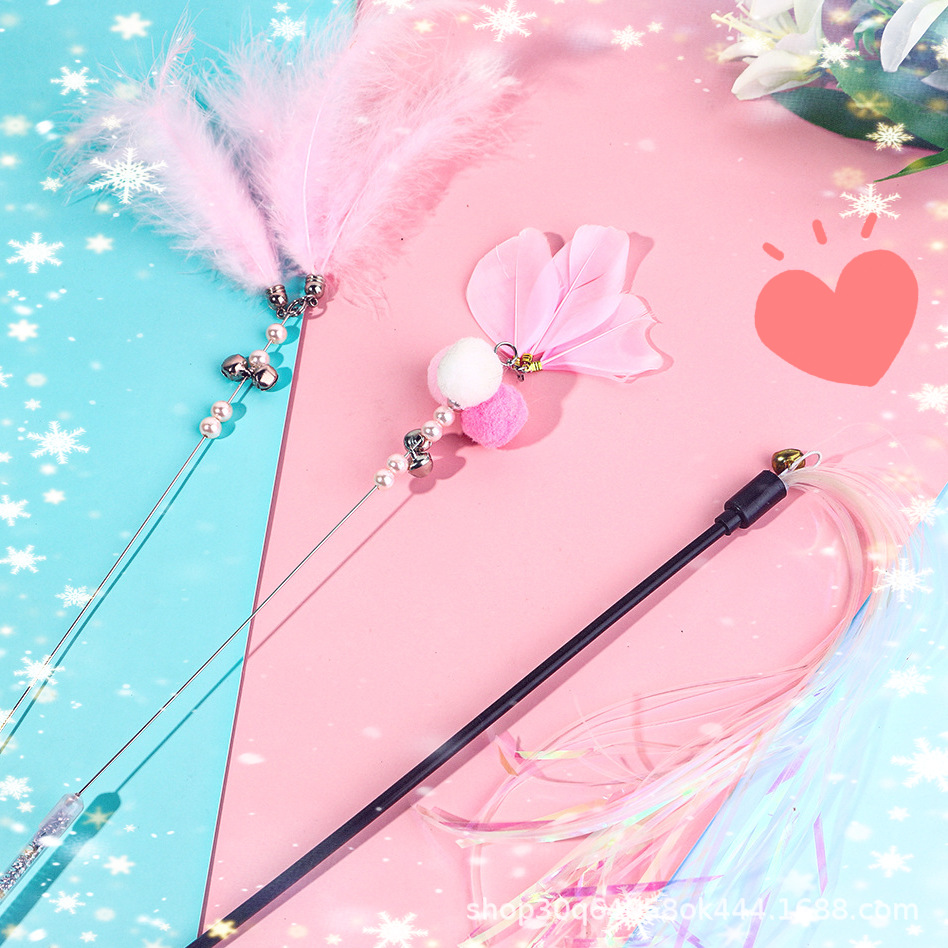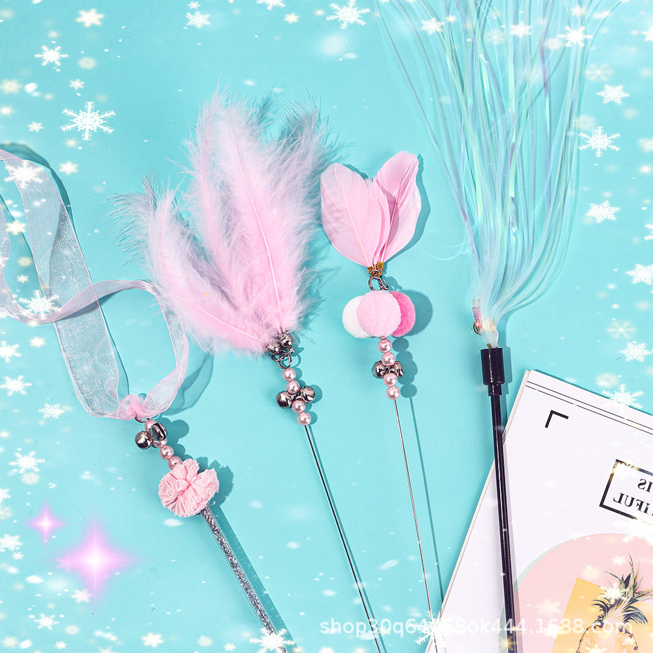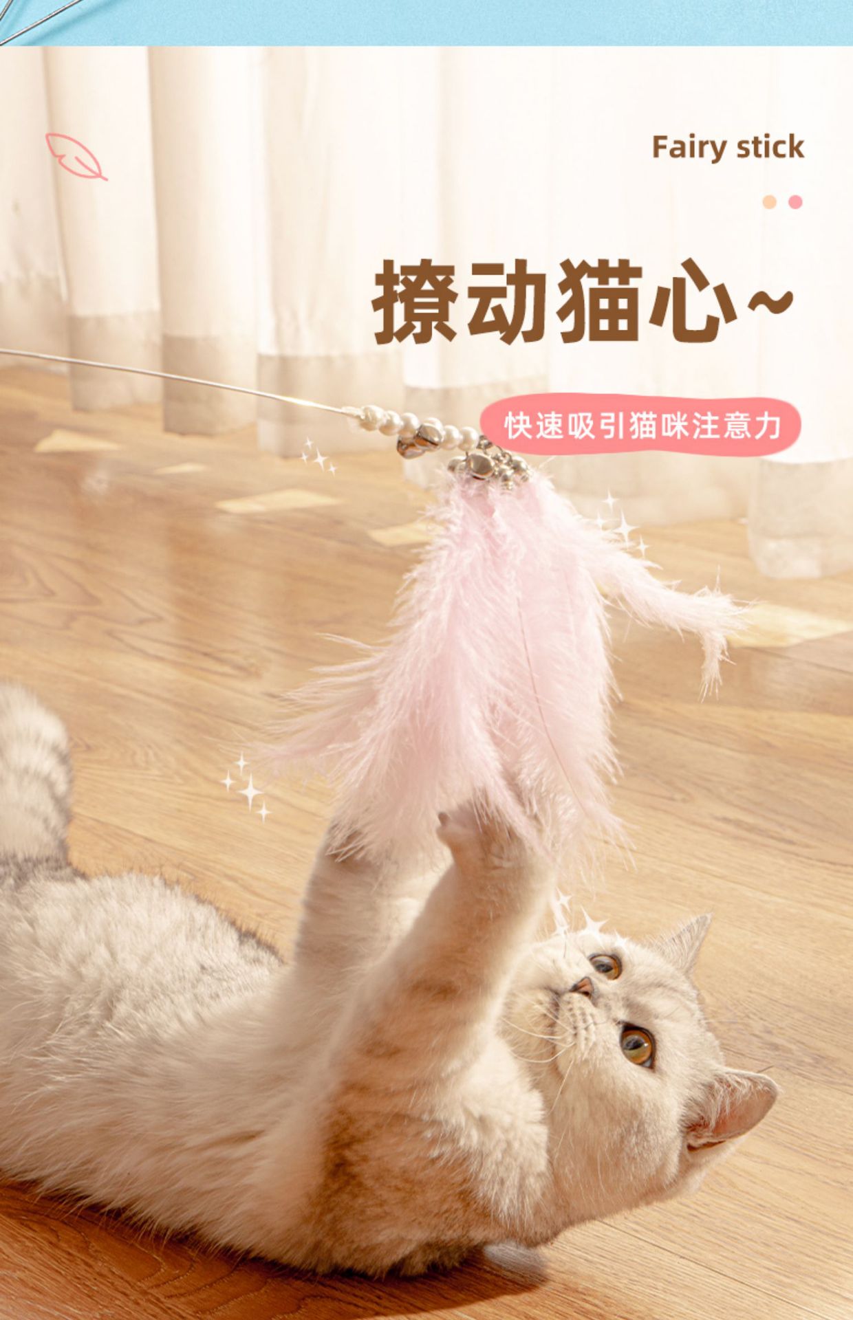 애완 동물 용품 고양이 장난감 고양이 테이 스틱 셀프 플레이 벨 요정 스틱 깃털 셀프 하이 바이트 저항하는 긴 막대 고양이 테이 스틱스토어 가기