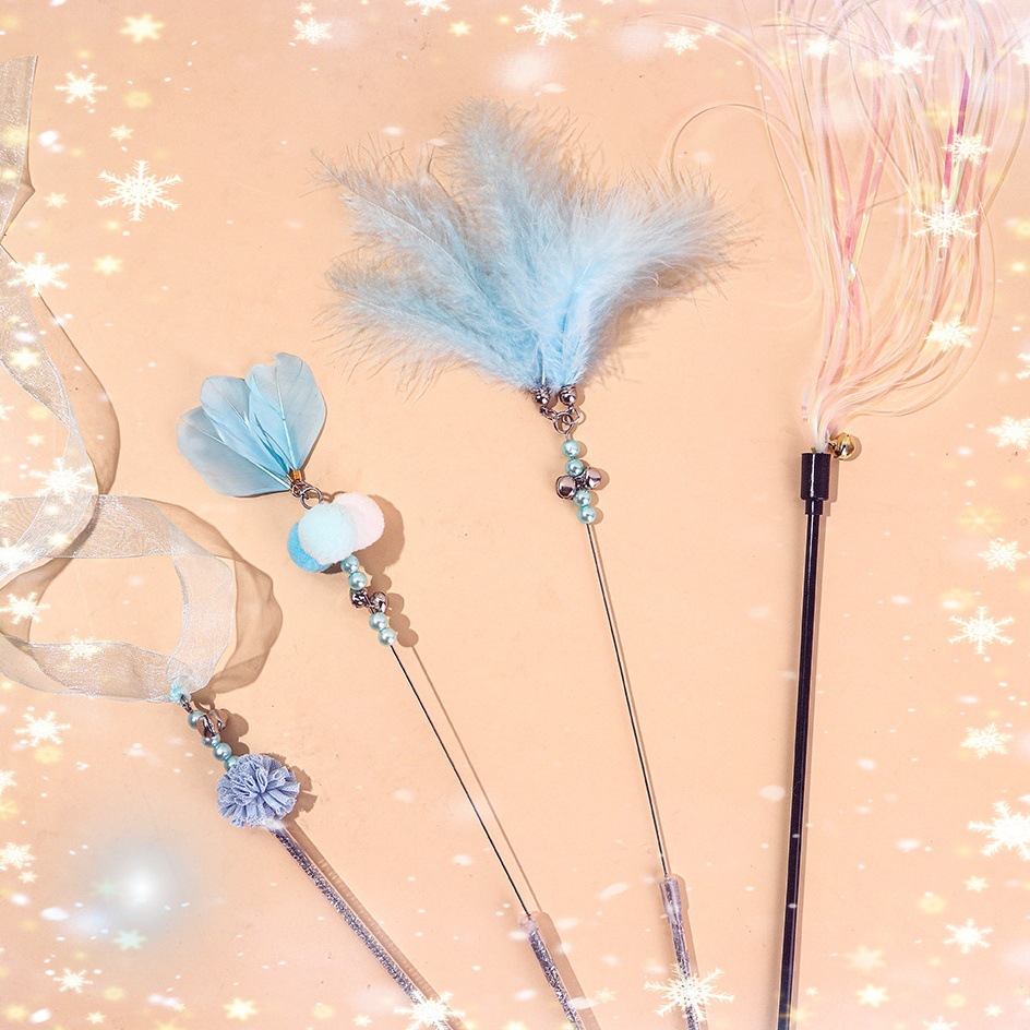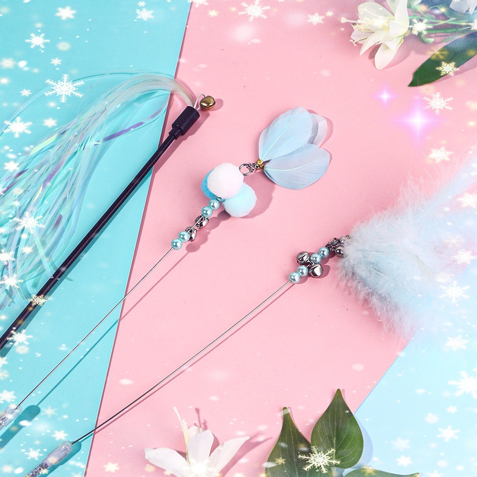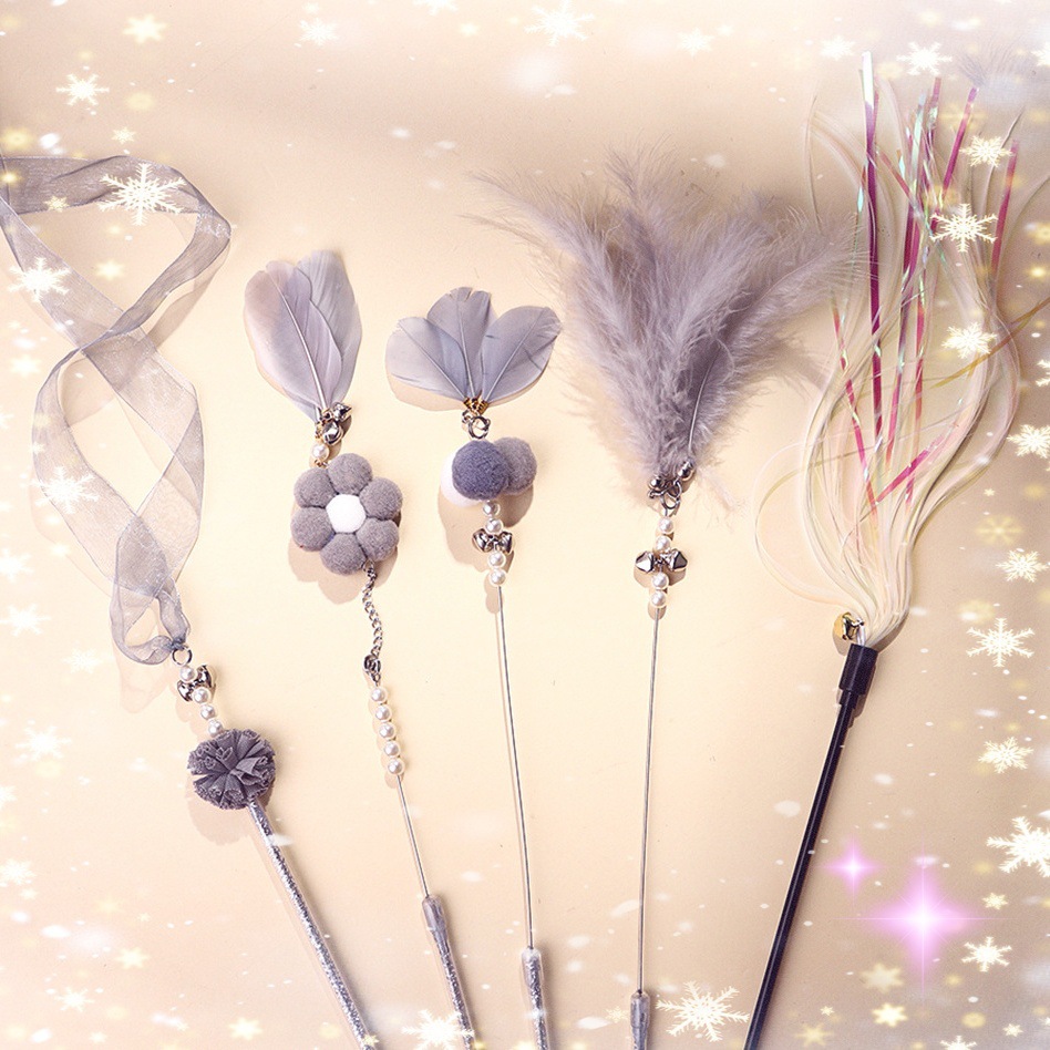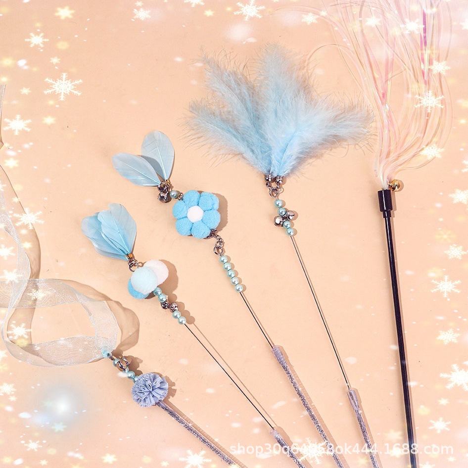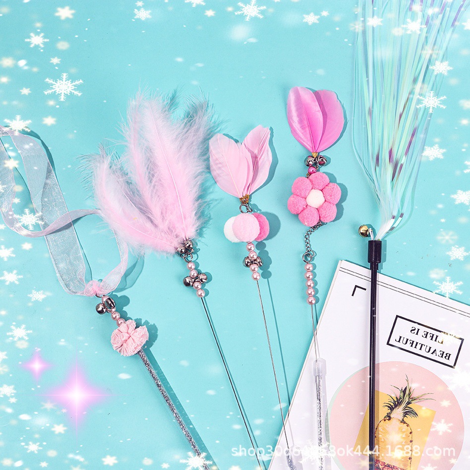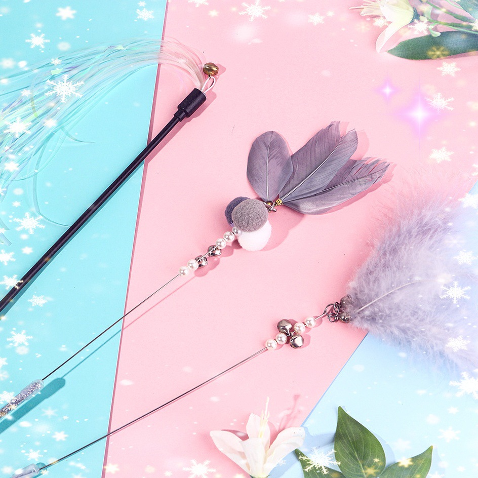 애완 동물 용품 고양이 장난감 고양이 테이 스틱 셀프 플레이 벨 요정 스틱 깃털 셀프 하이 바이트 저항하는 긴 막대 고양이 테이 스틱스토어 가기