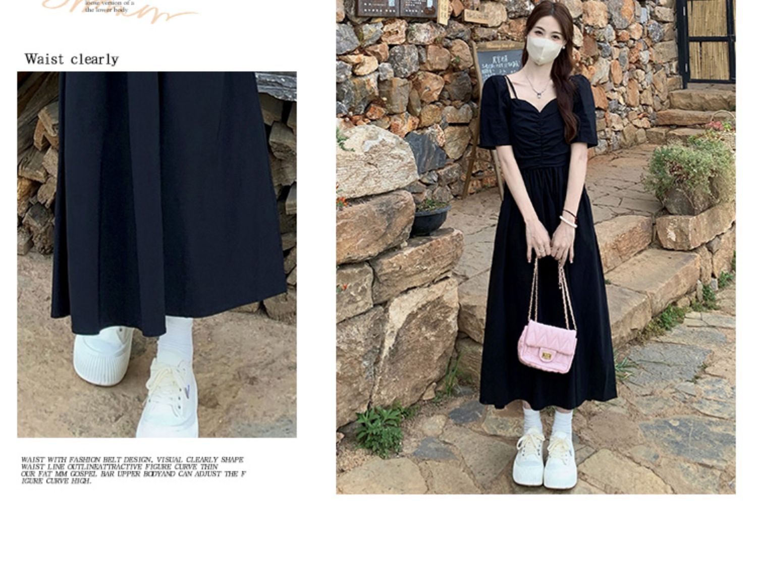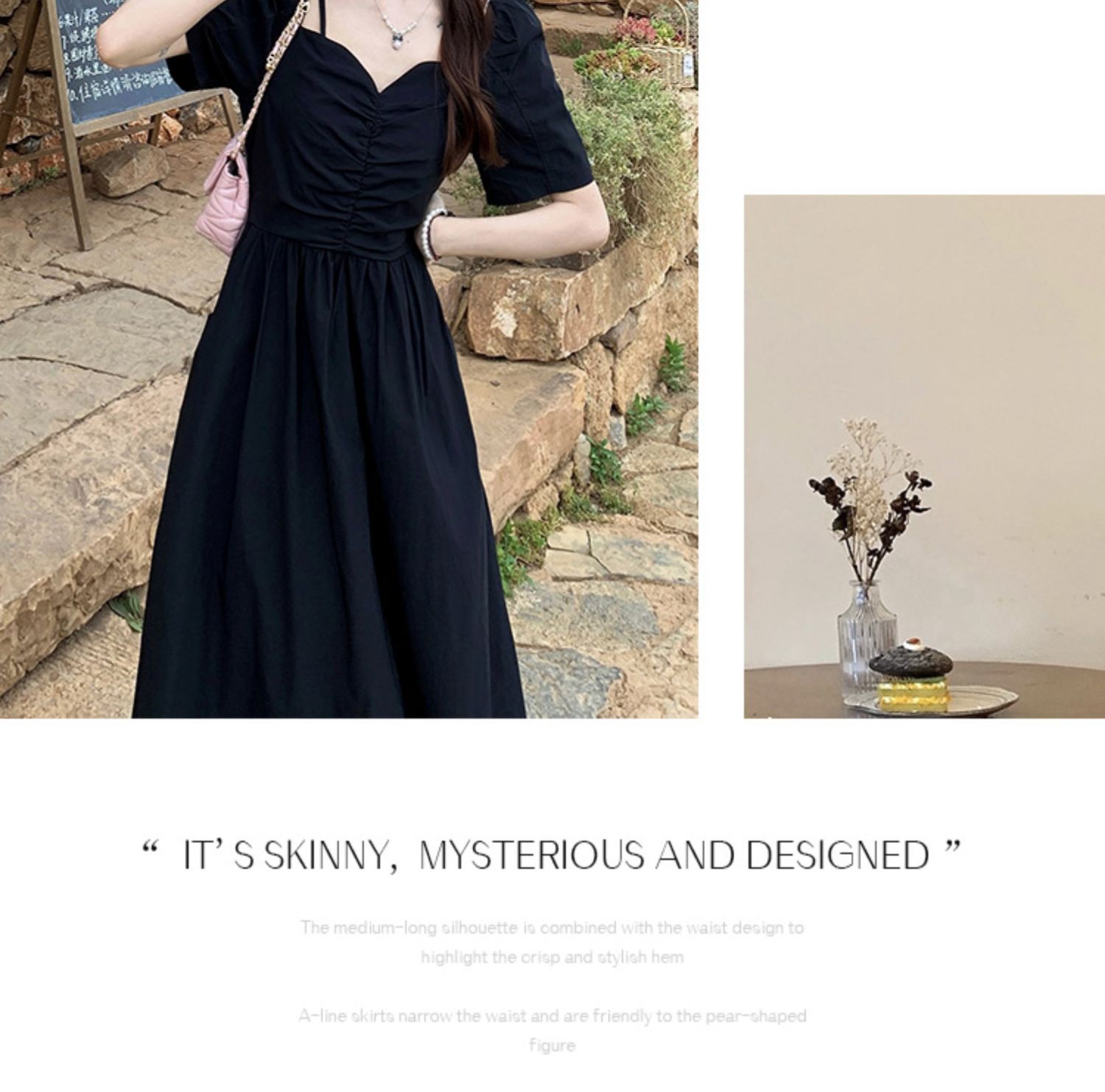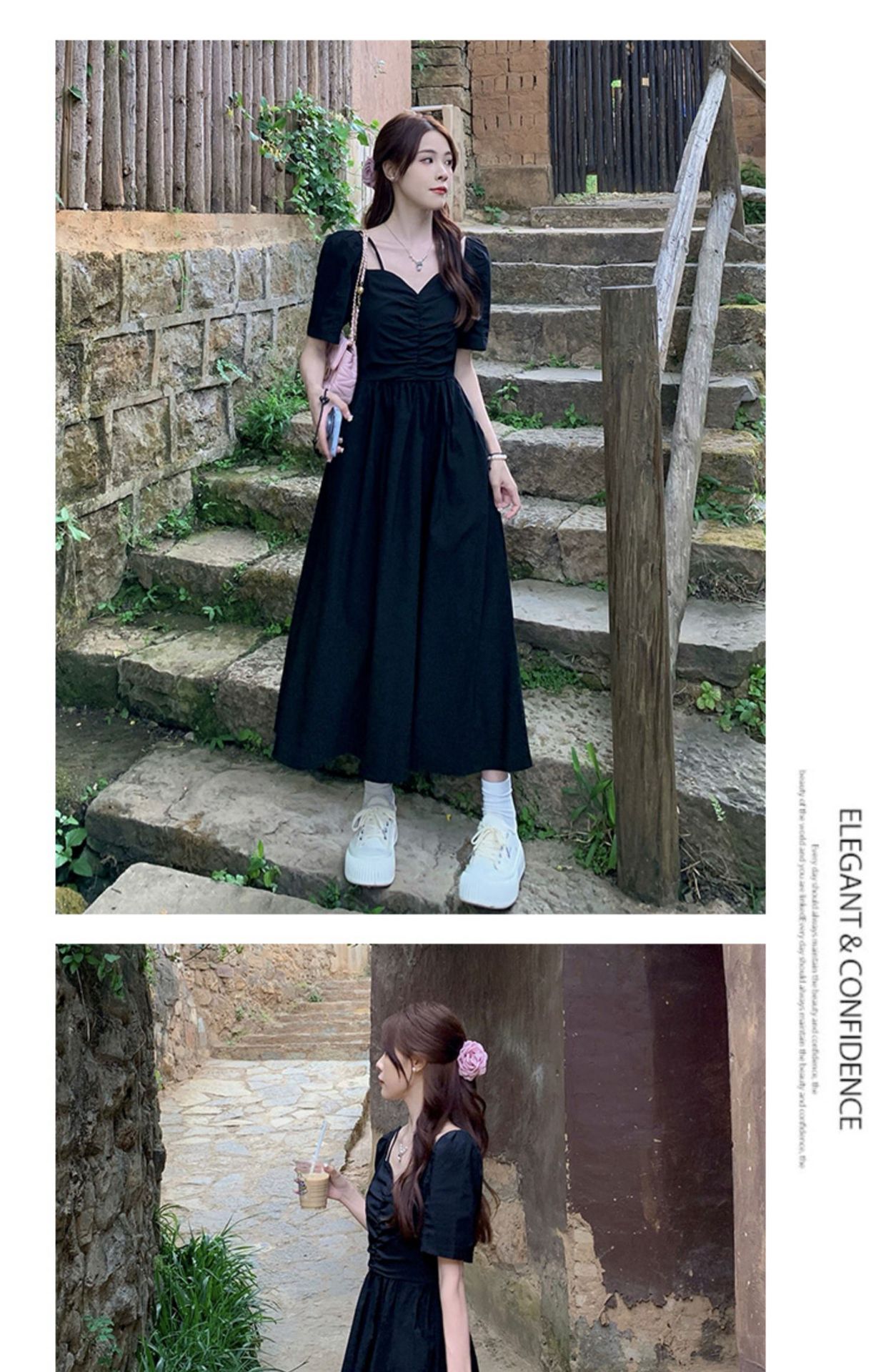 외국식 프라이드 스트리트 블랙 스퀘어 칼라 퍼프 슬리브 원피스 여성 여름 2025 새로운 프랑스 스타일 커피 브레이크 블랙 원피스 헵번 스타일스토어 가기
