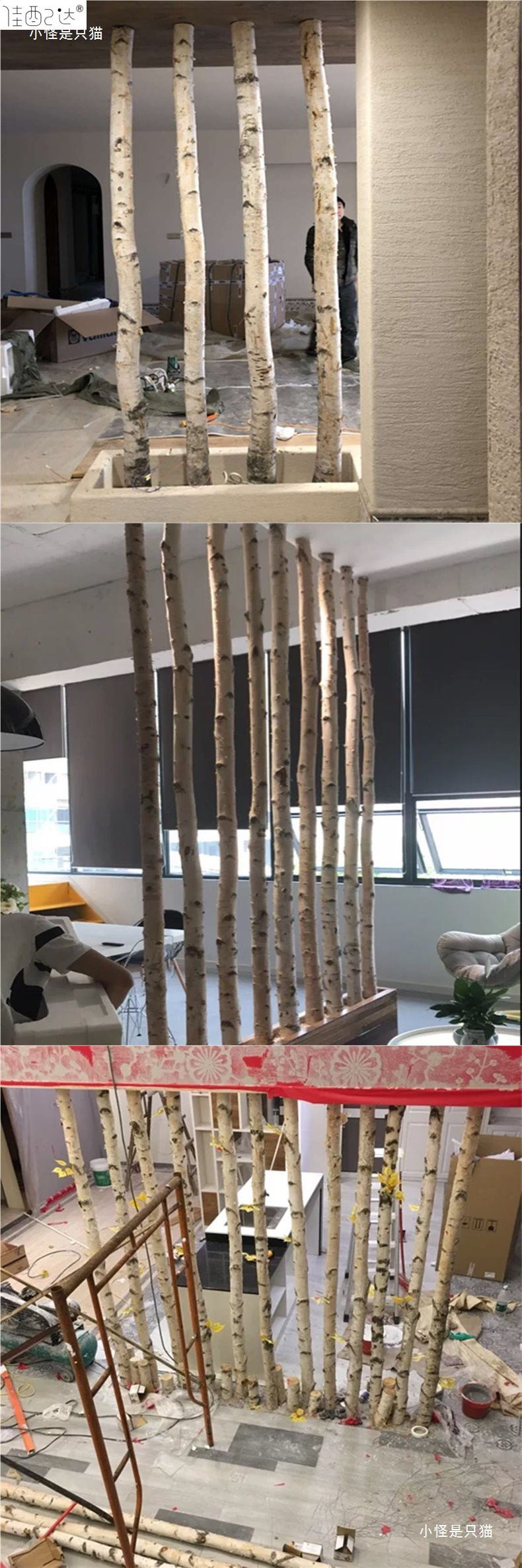 자작 나무 장식 나무 섹션 그루터기 가지 자작 나무 트렁크 창 파티션 입구 웨딩 몰 레이아웃 트리스토어 가기