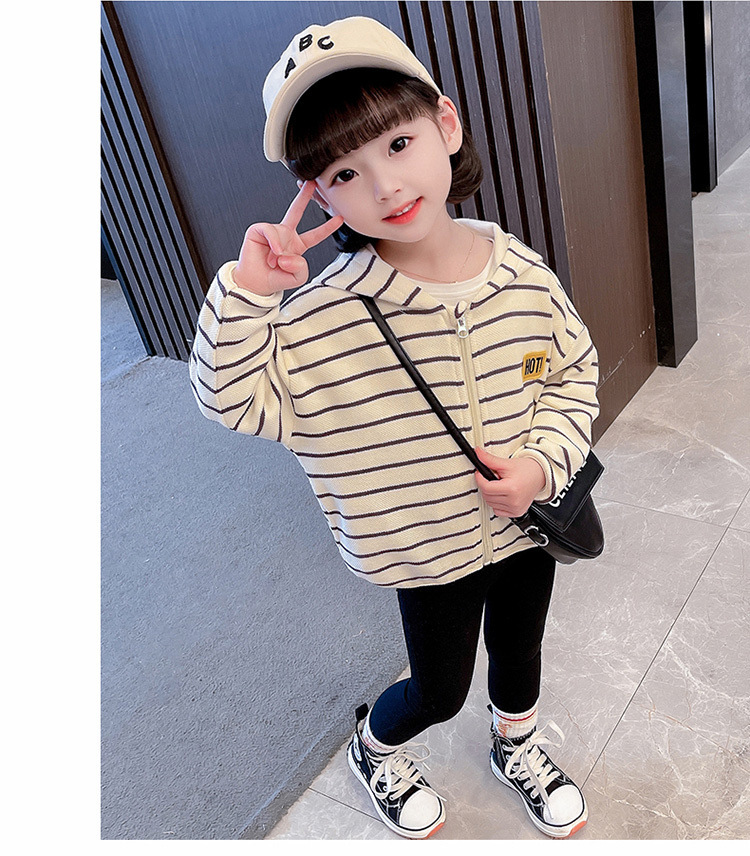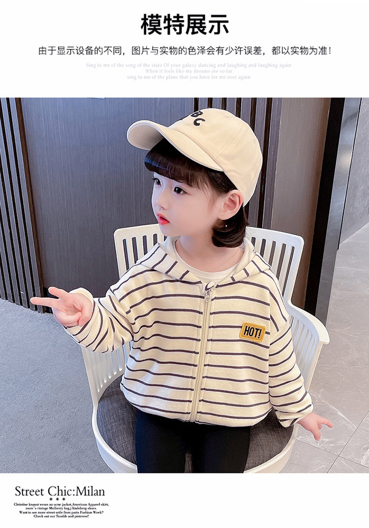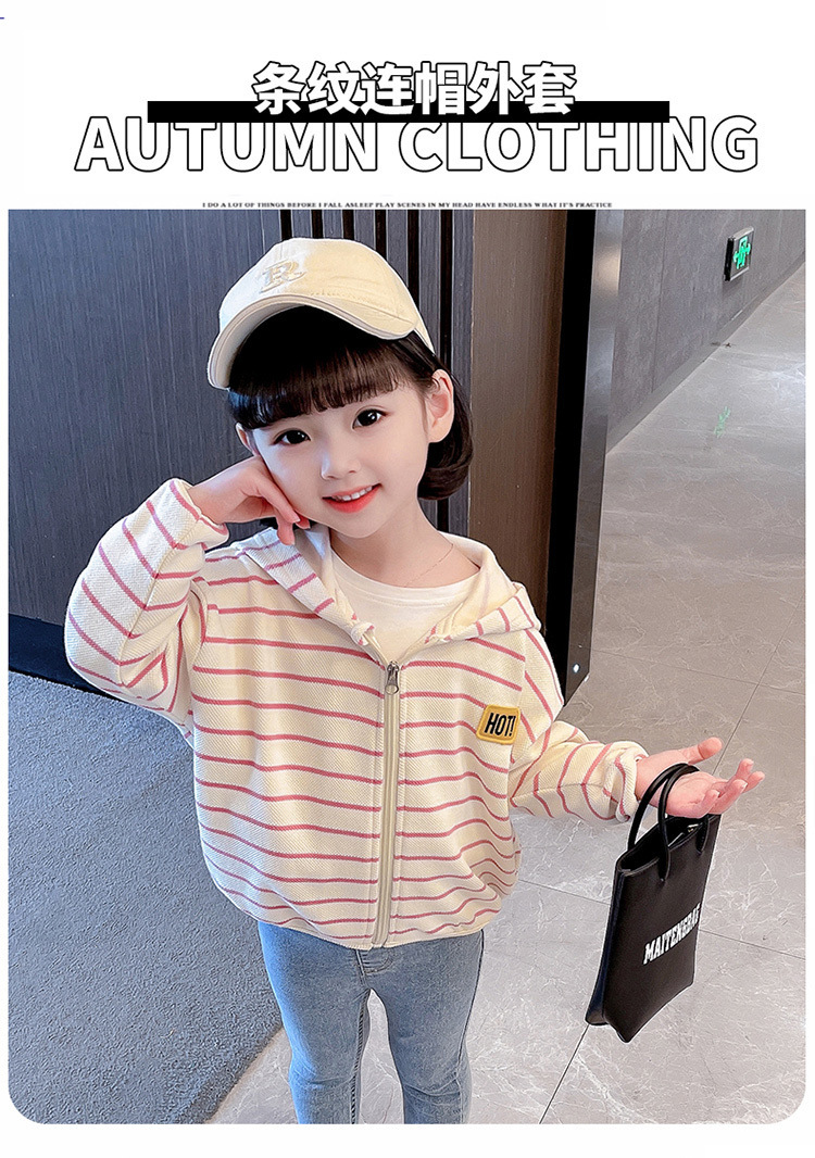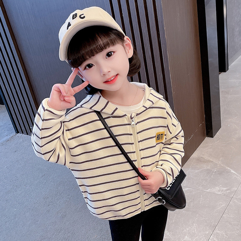 소녀 코트 2025 가을 새로운 스타일 서양식 카디건 어린이 후드 스웨터 아기의 봄과 가을 스트라이프 탑스토어 가기