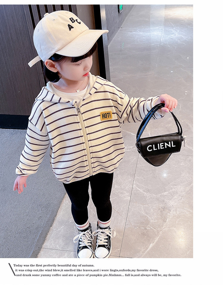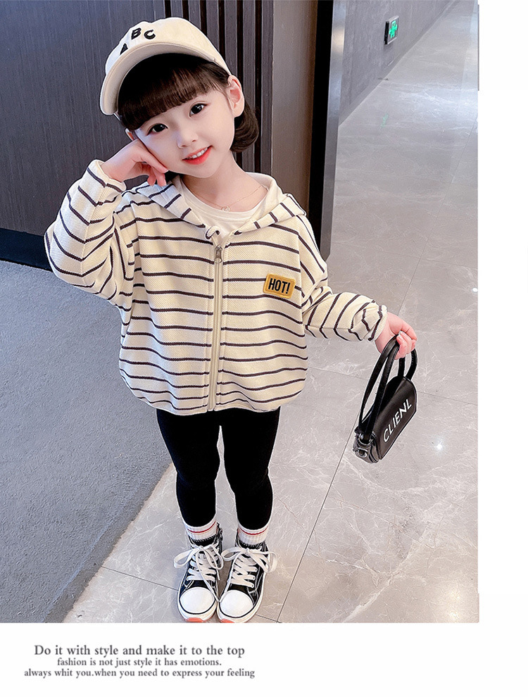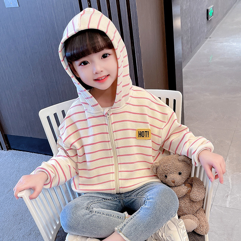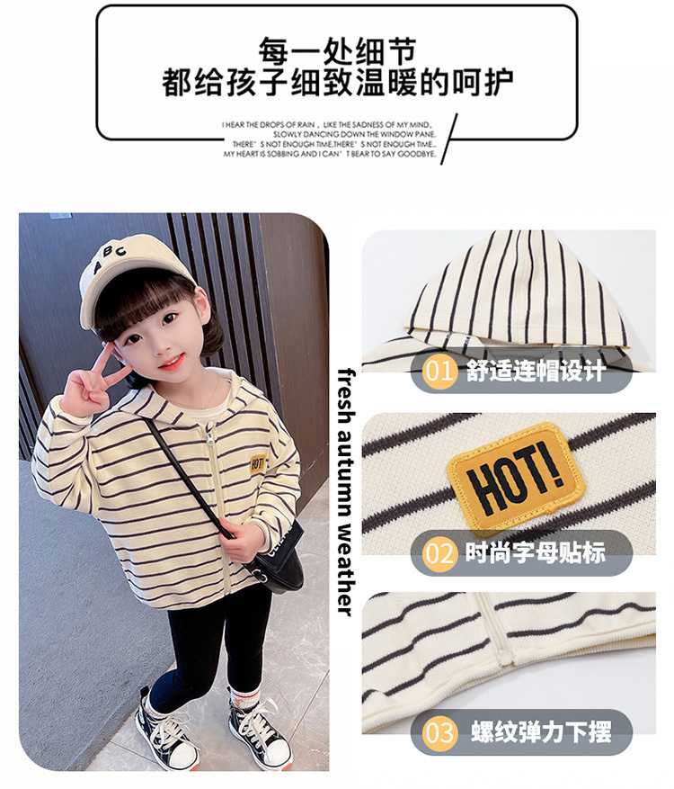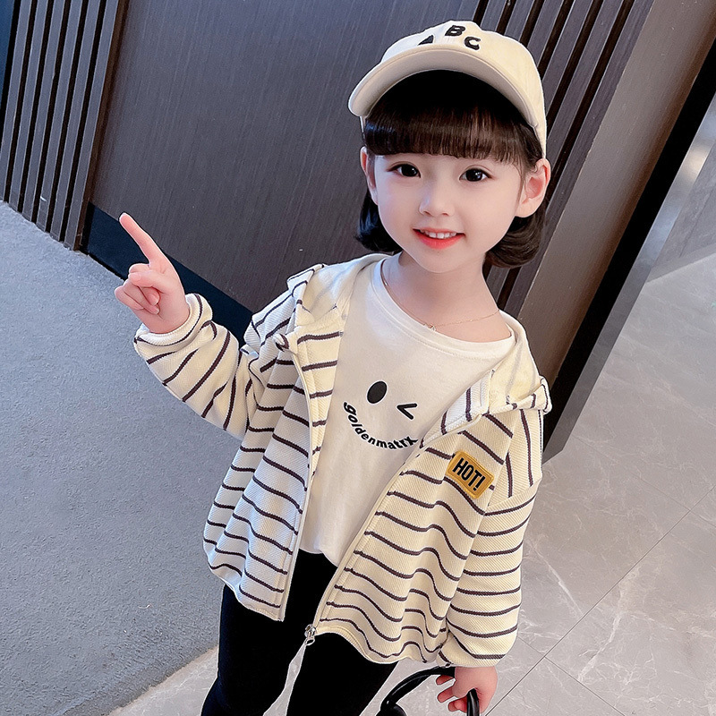 소녀 코트 2025 가을 새로운 스타일 서양식 카디건 어린이 후드 스웨터 아기의 봄과 가을 스트라이프 탑스토어 가기