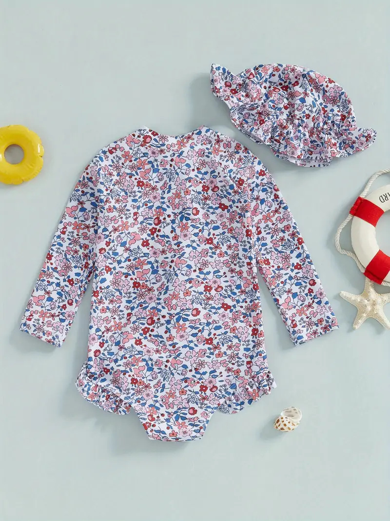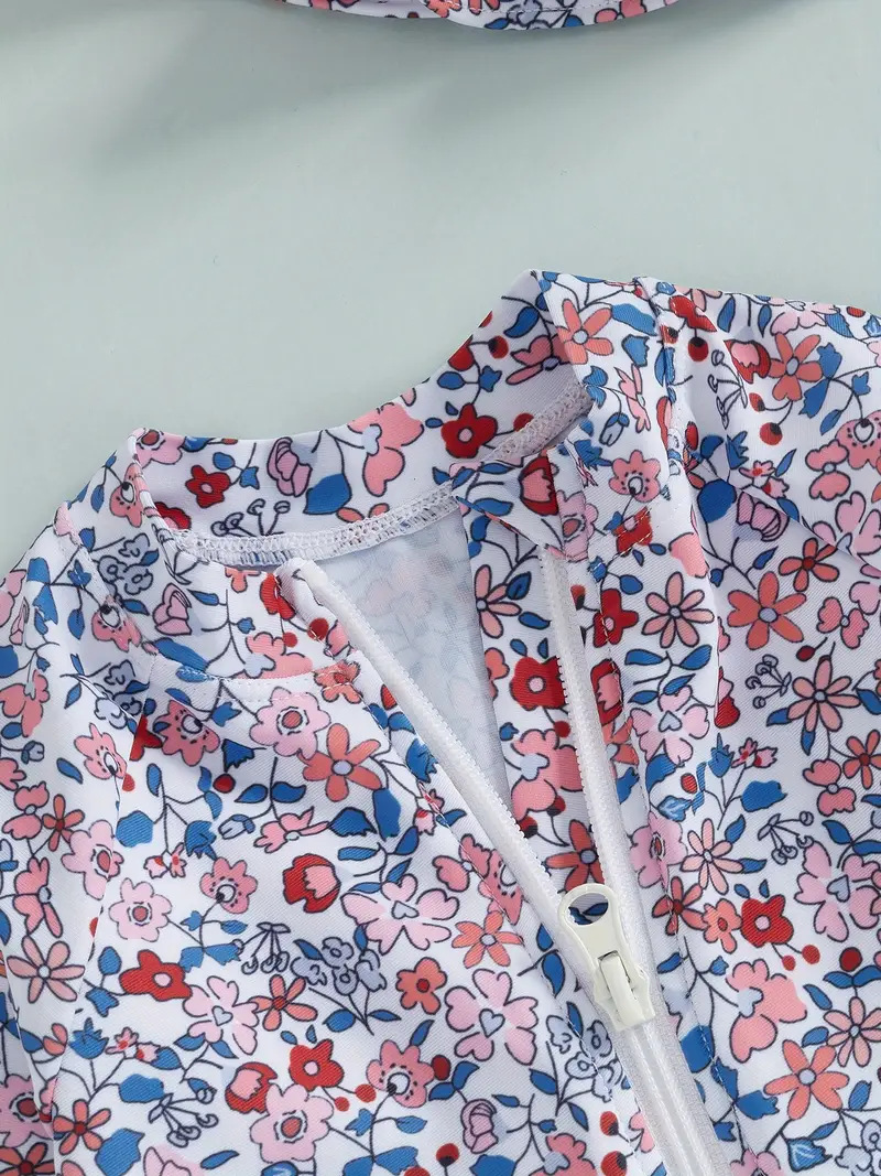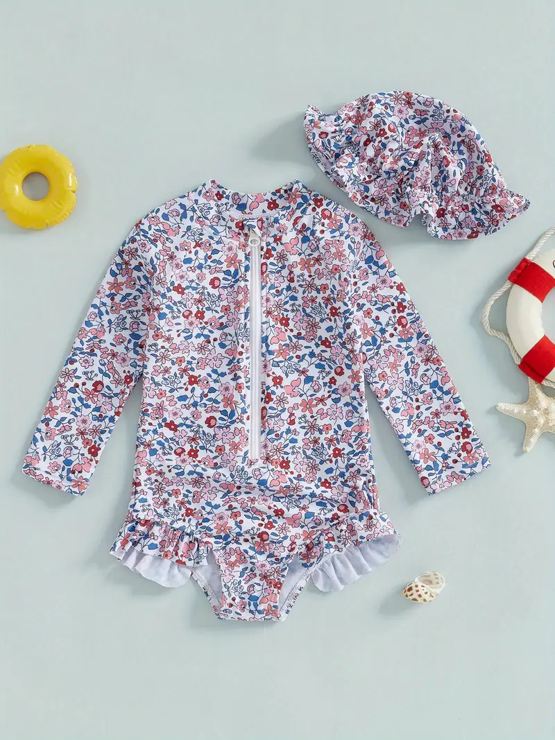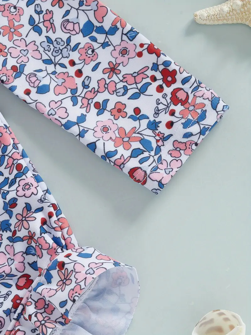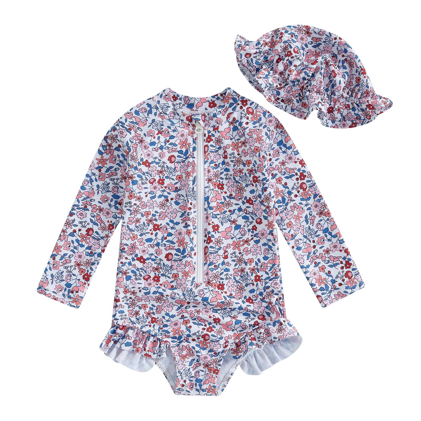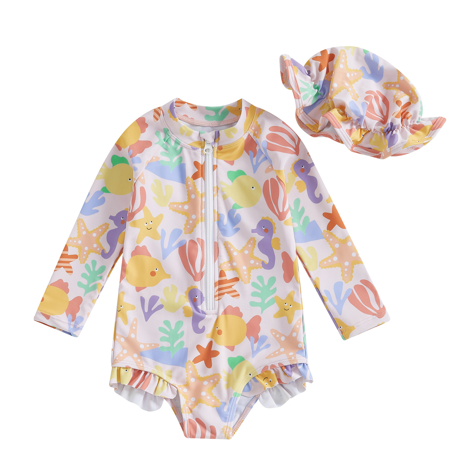 20254 여름 수영복 한국 스타일 소녀 선 스크린 긴 소매 퀵 드라이 프린트 인 스타일 유아용 수영복