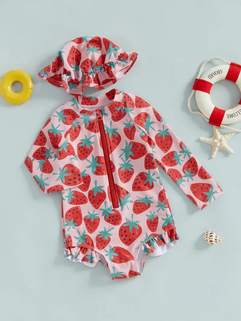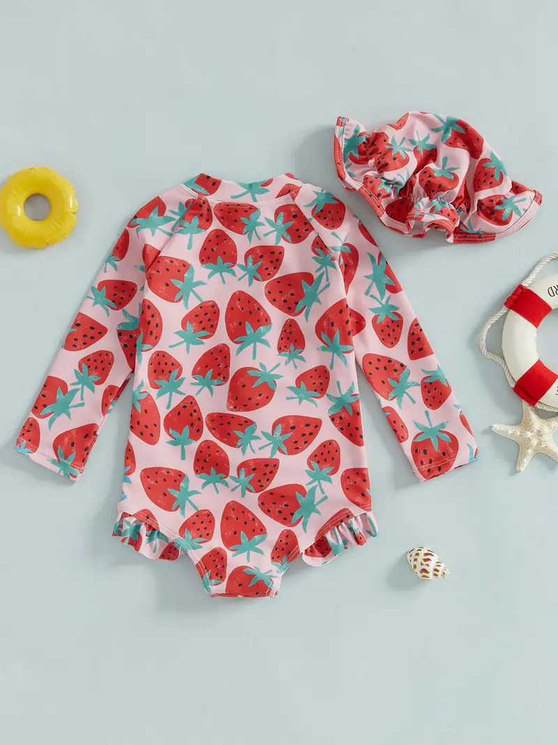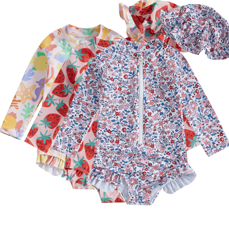 20254 여름 수영복 한국 스타일 소녀 선 스크린 긴 소매 퀵 드라이 프린트 인 스타일 유아용 수영복스토어 가기