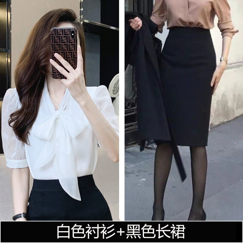 • 흰색 셔츠 + 검정 스커트