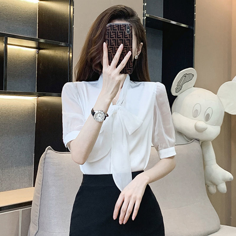 활 흰 셔츠 여자의 여름 얇은 4-상점 사업 착용 셔츠 가게 보석 가게 관리자 작업 옷스토어 가기