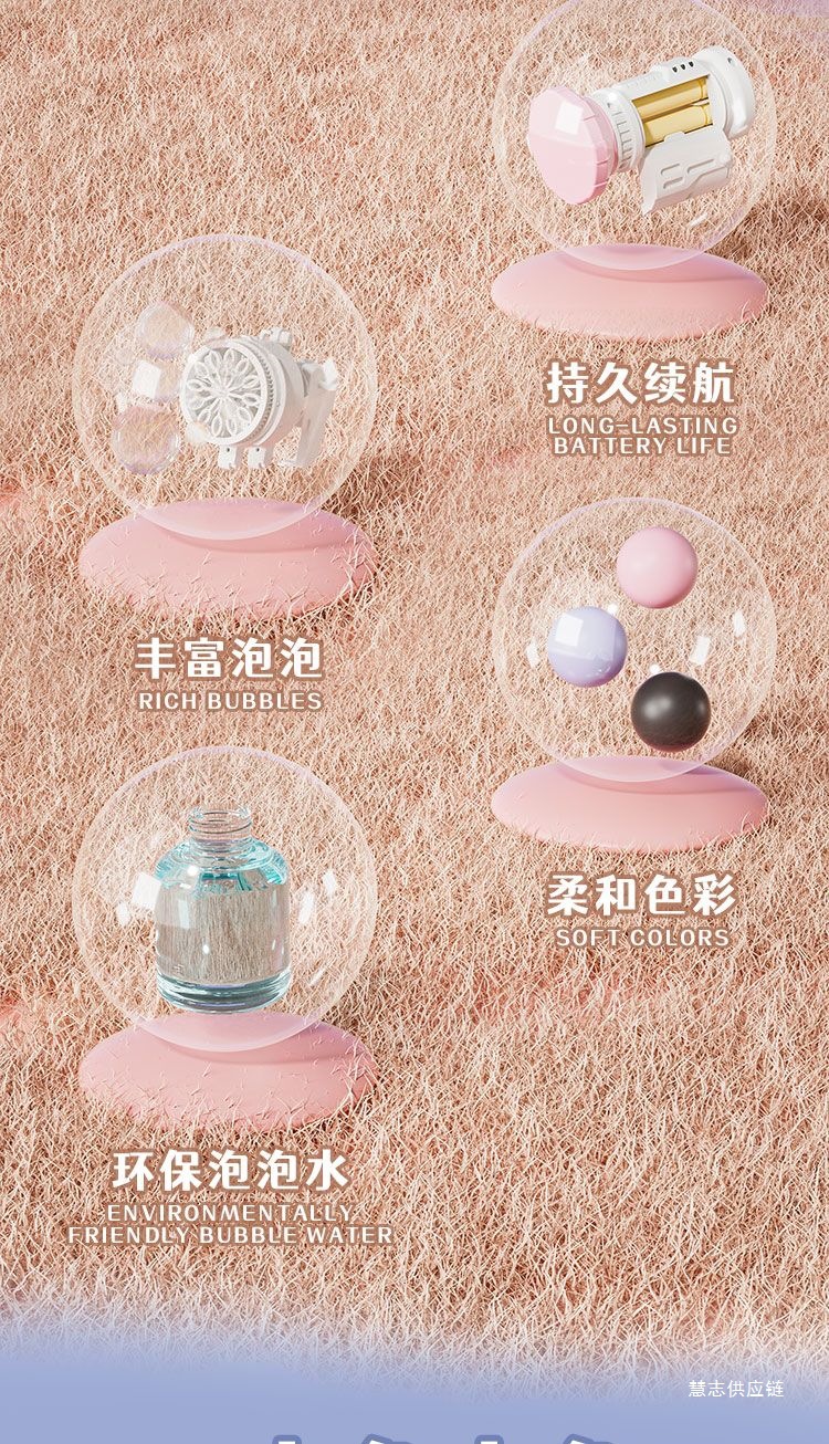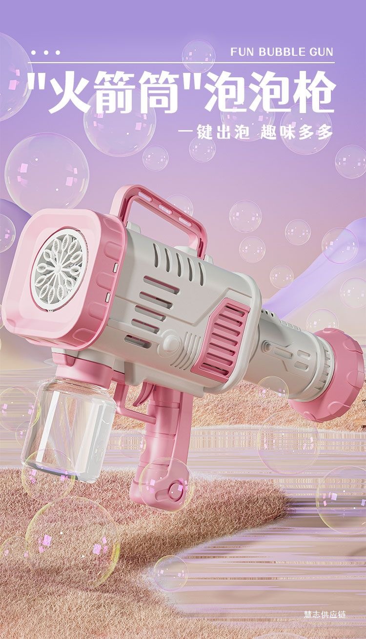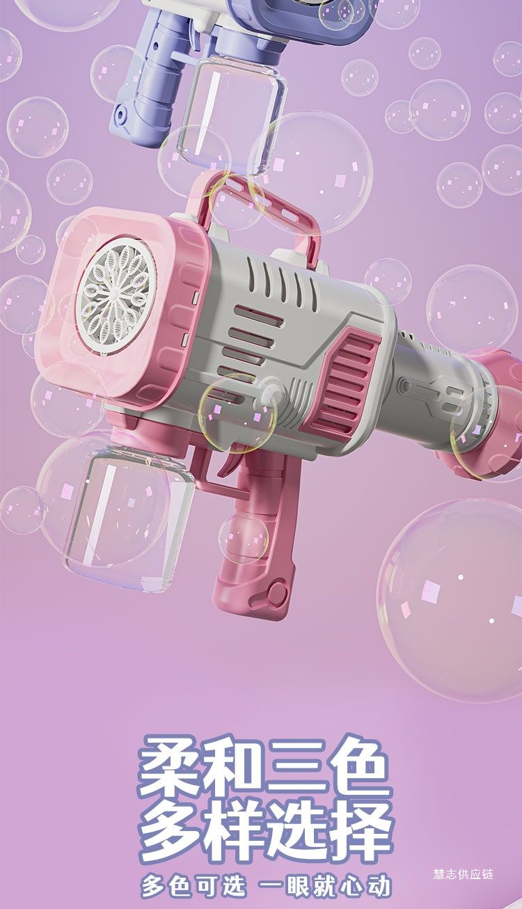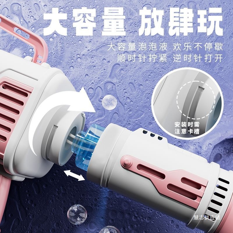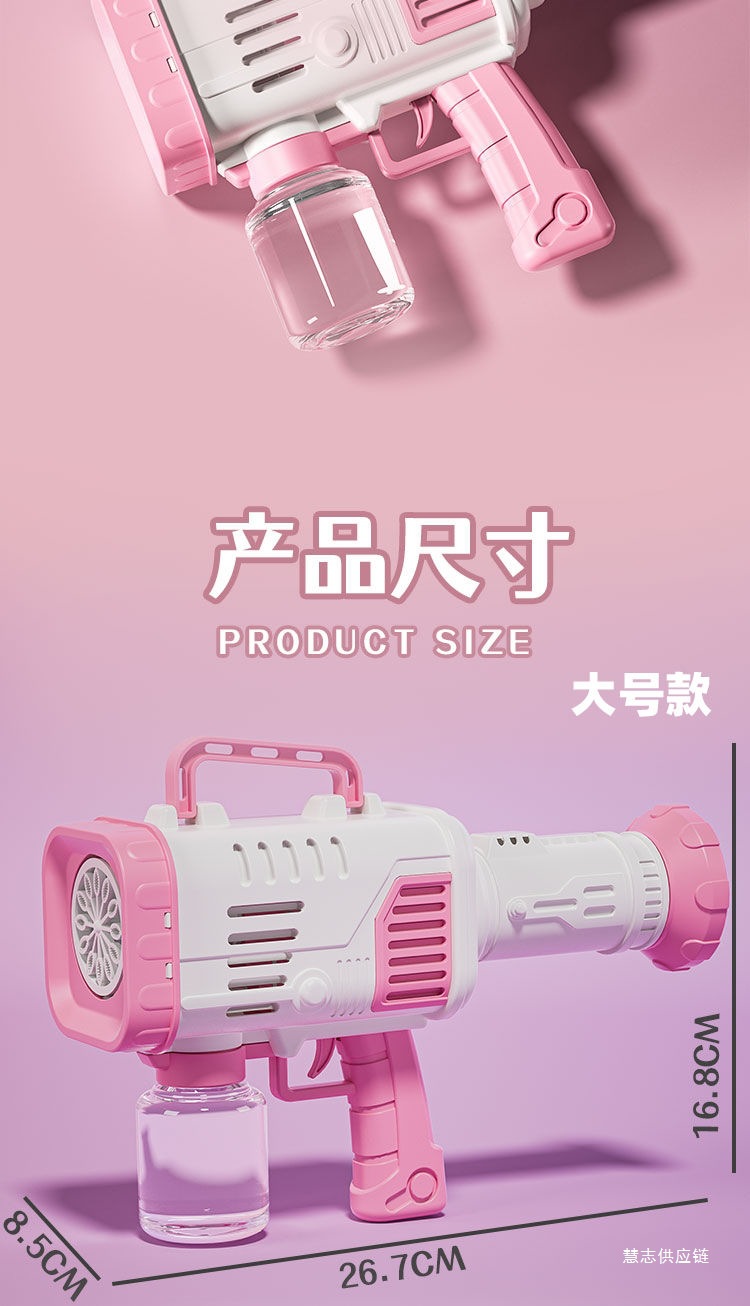 • 초대형 전자동 버블건 충전식 버전에는 버블 워터 핑크 버전이 함께 제공됩니다.
