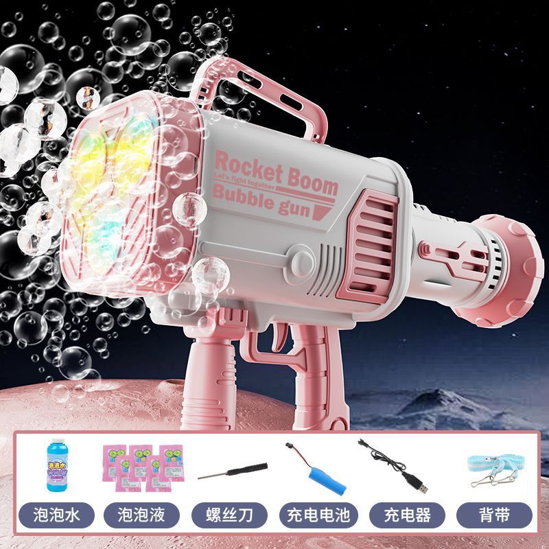 • 초대형 전자동 버블건 충전식 버전에는 버블수 + 액체 60팩이 함께 제공됩니다 - 핑크 버전