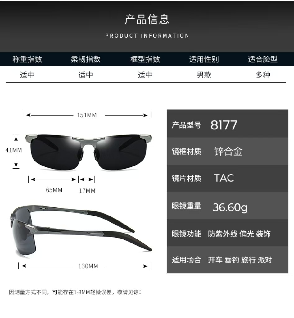 유럽과 미국의 인기 편광 선글라스 낚시 하프 프레임 편광 안경 남성 스포츠 운전 선글라스 8177스토어 가기