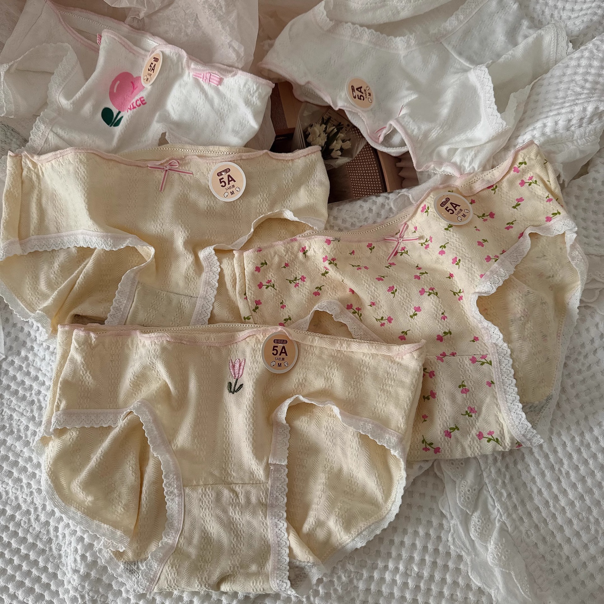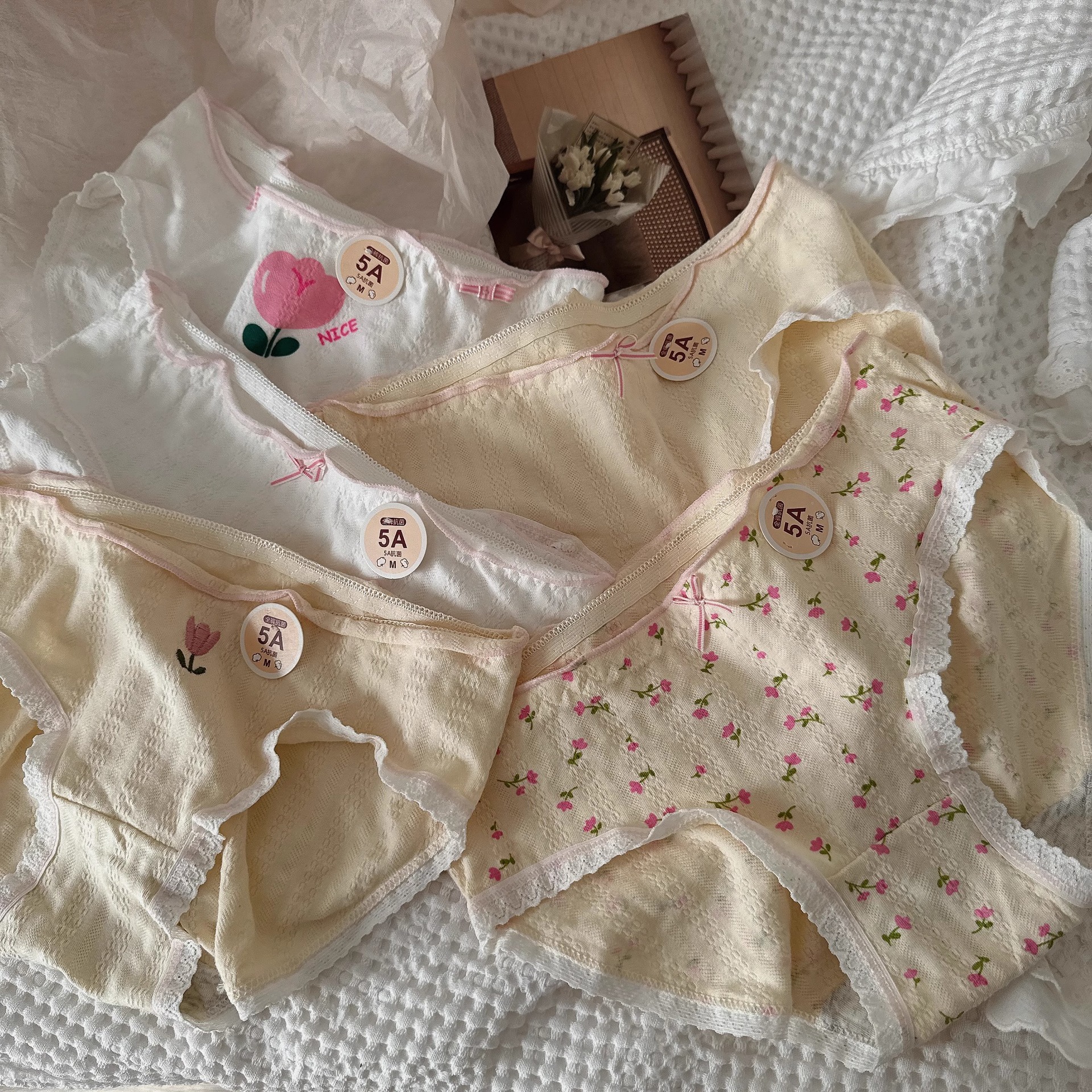 새로운 튤립 클래스 A 아기 면화 소녀 속옷 여성 면화 5A 전체 바지 항균 중간 허리 삼각형 반바지