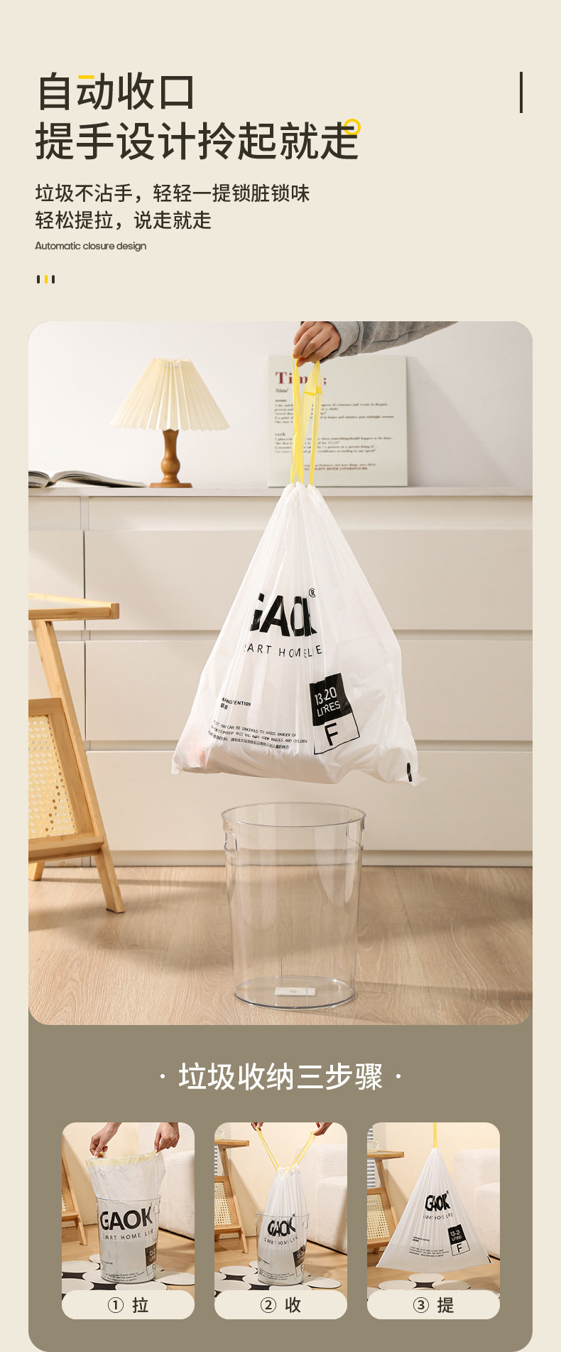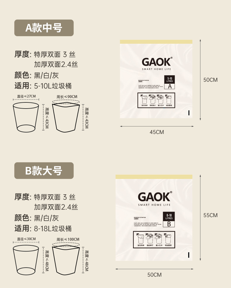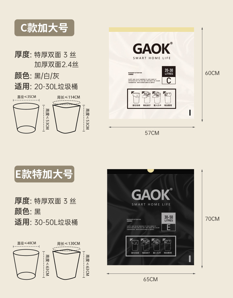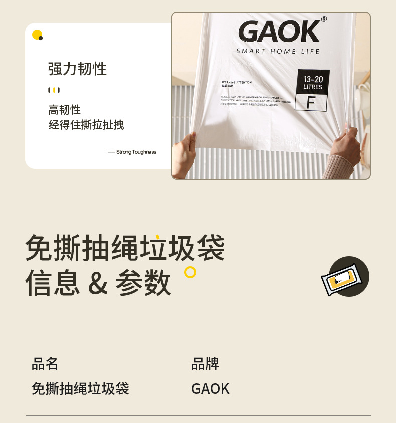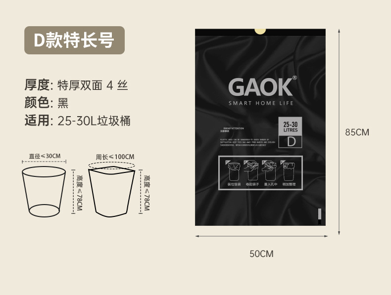 저렴한 휴대용 니핑 가정용 슈퍼 두꺼운 자동 서랍 쓰레기 봉투 두꺼운 GAOK 추가 두꺼운 대형 주방