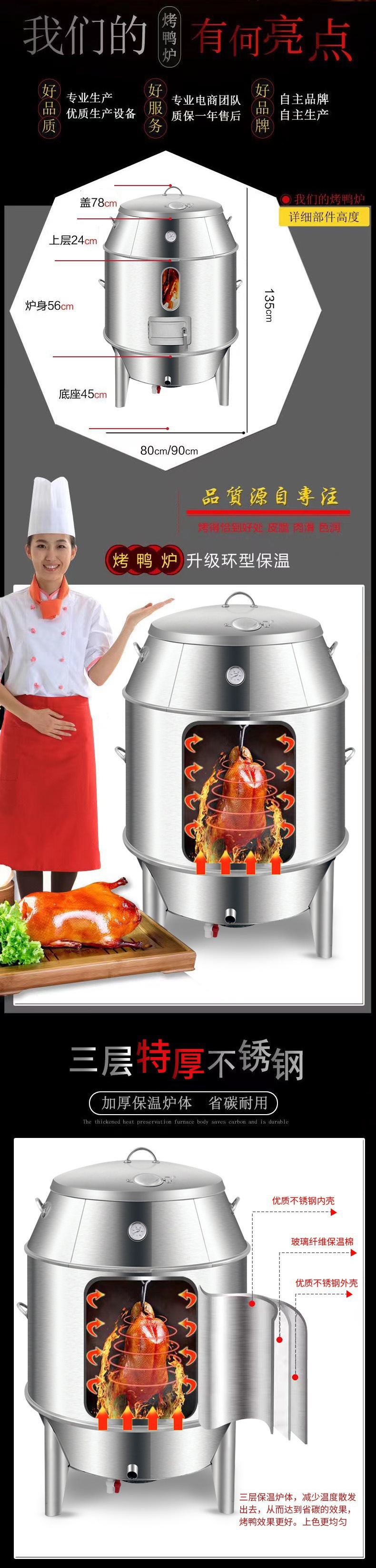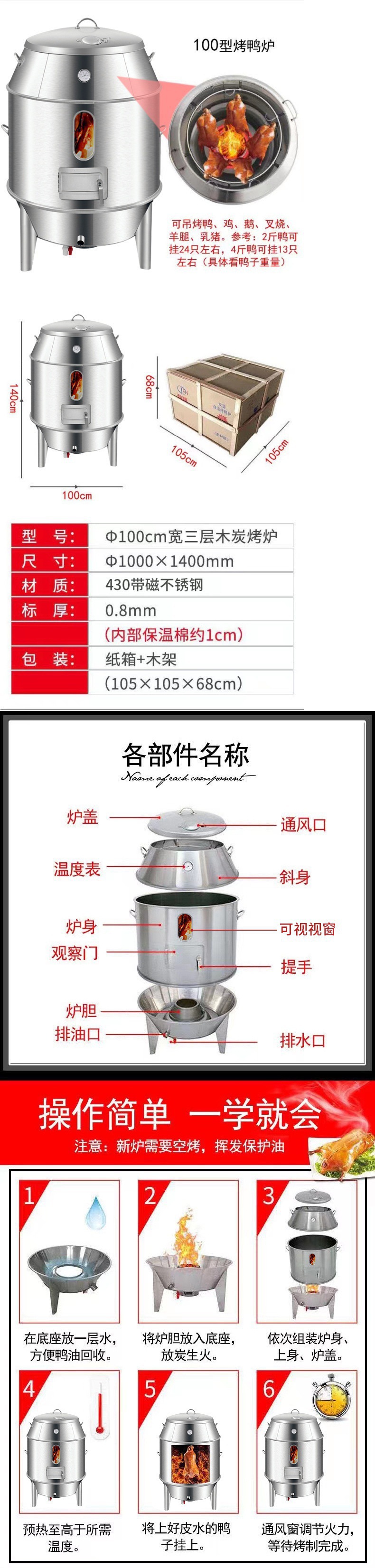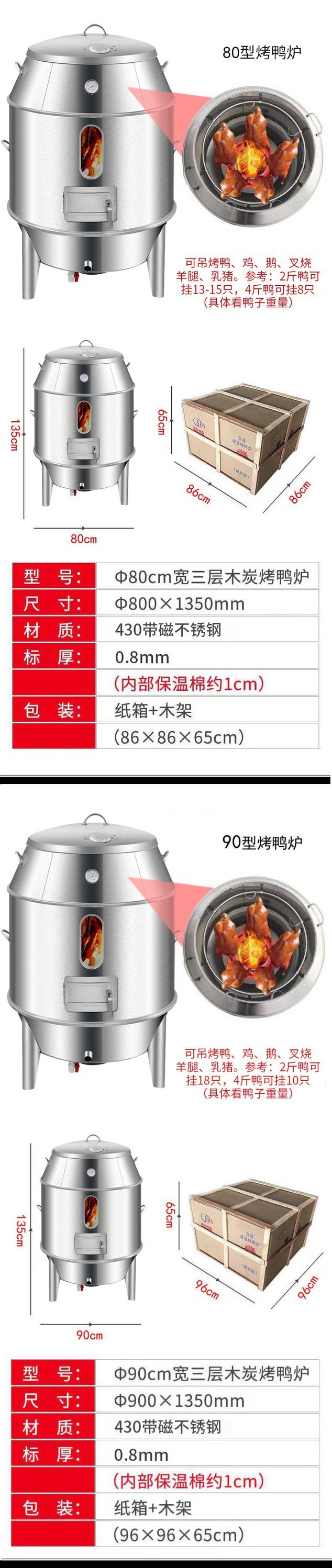 상업용 로스트 오리 오븐 숯 가스 이중 목적 오븐 로스트 오리 로스트 치킨 구스 오븐 바삭한 돼지 고기 오븐