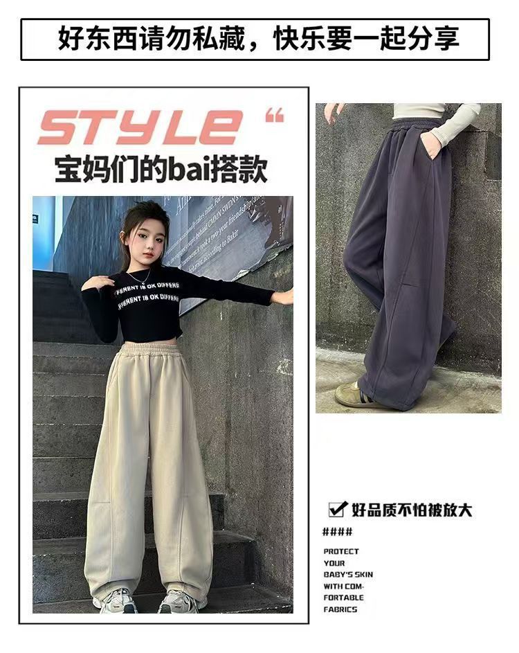소녀 캐주얼 스웨트 봄 가을 어린이 서양식 바나나 바지 2025 신소녀 가을 겨울 기모 스포츠 바지 트렌디스토어 가기