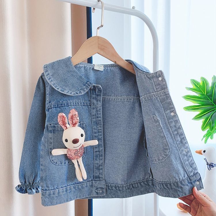 소녀 데님 코트 봄과 가을 2025 새로운 스타일 유행 어린이 탑 아기 봄 코트 한국 스타일스토어 가기
