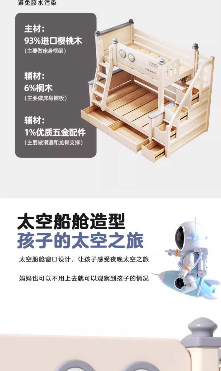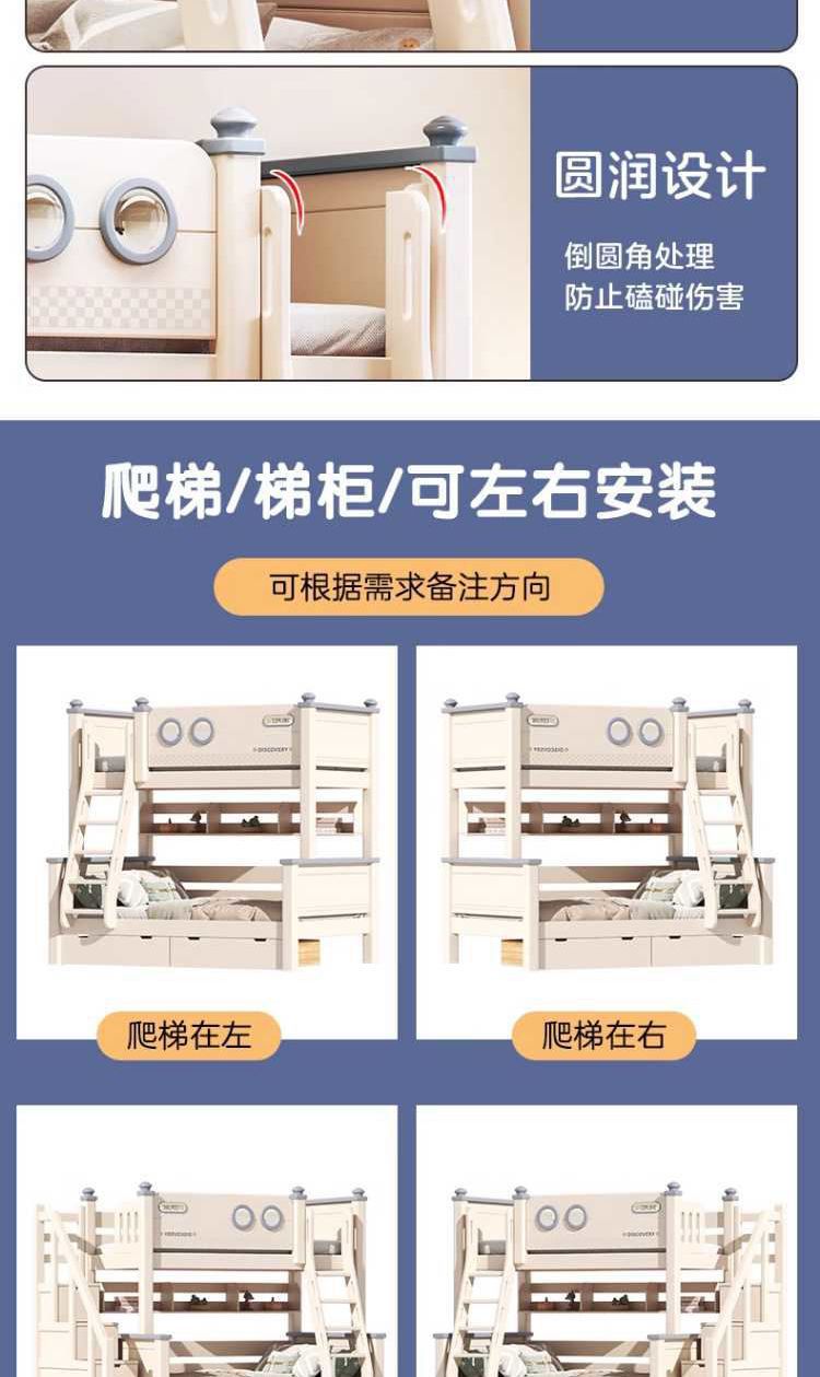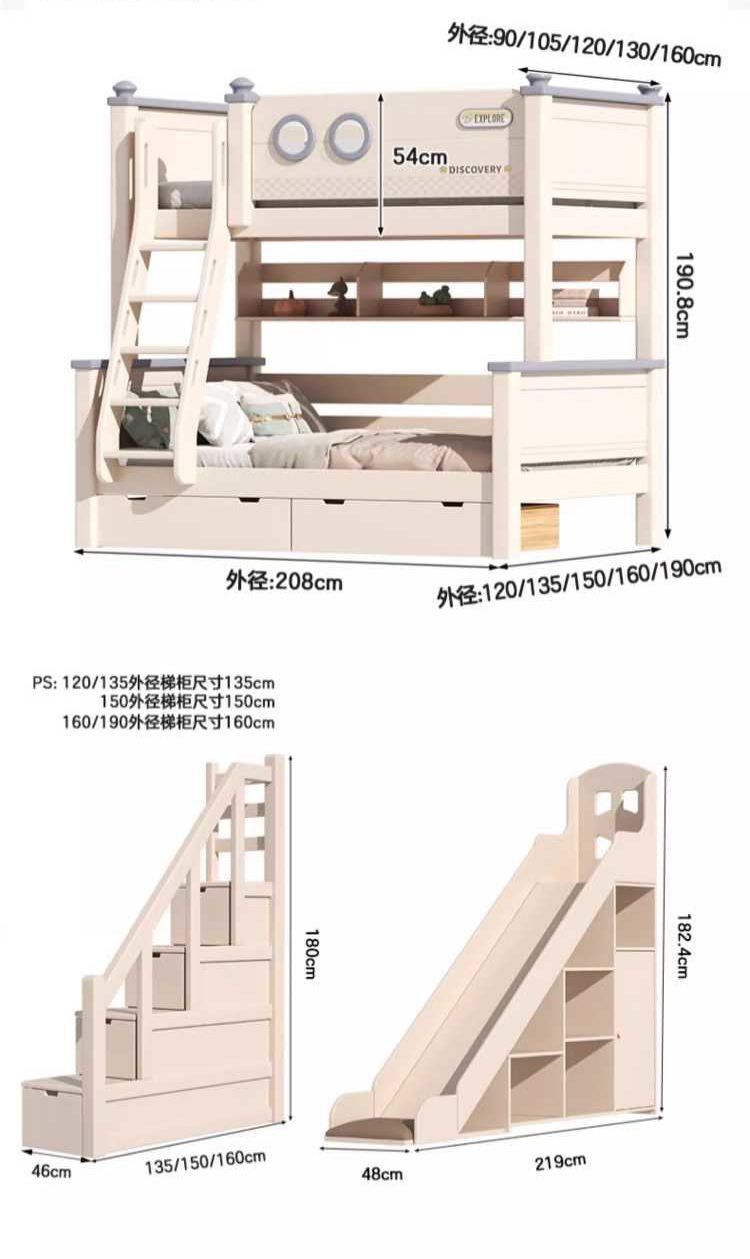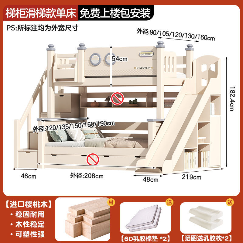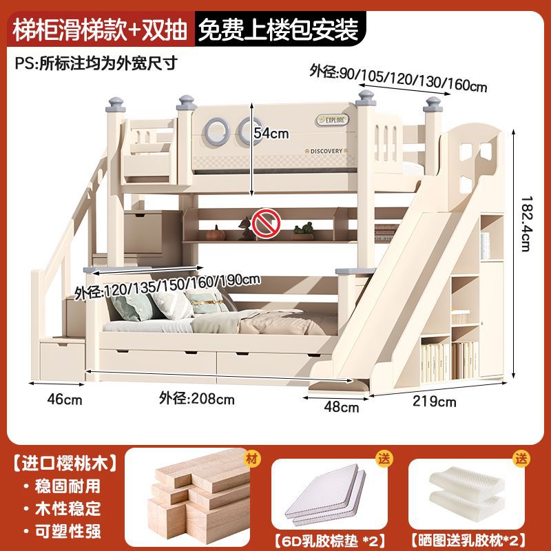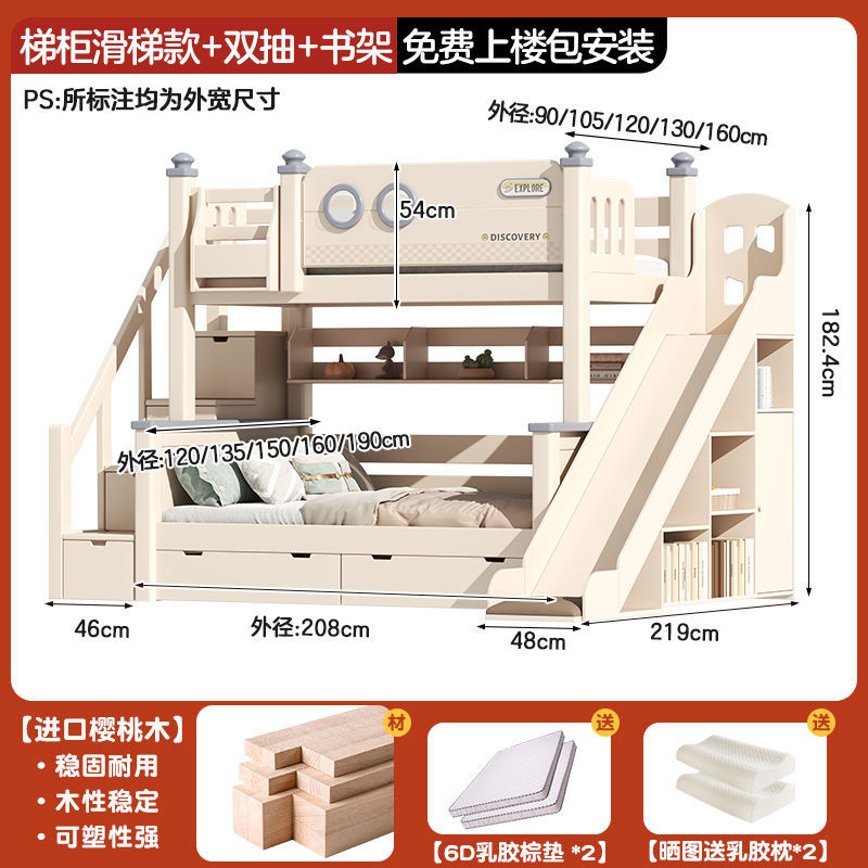 • 사다리 캐비닛 + 슬라이드 + 더블 서랍, 무료 상하 매트리스