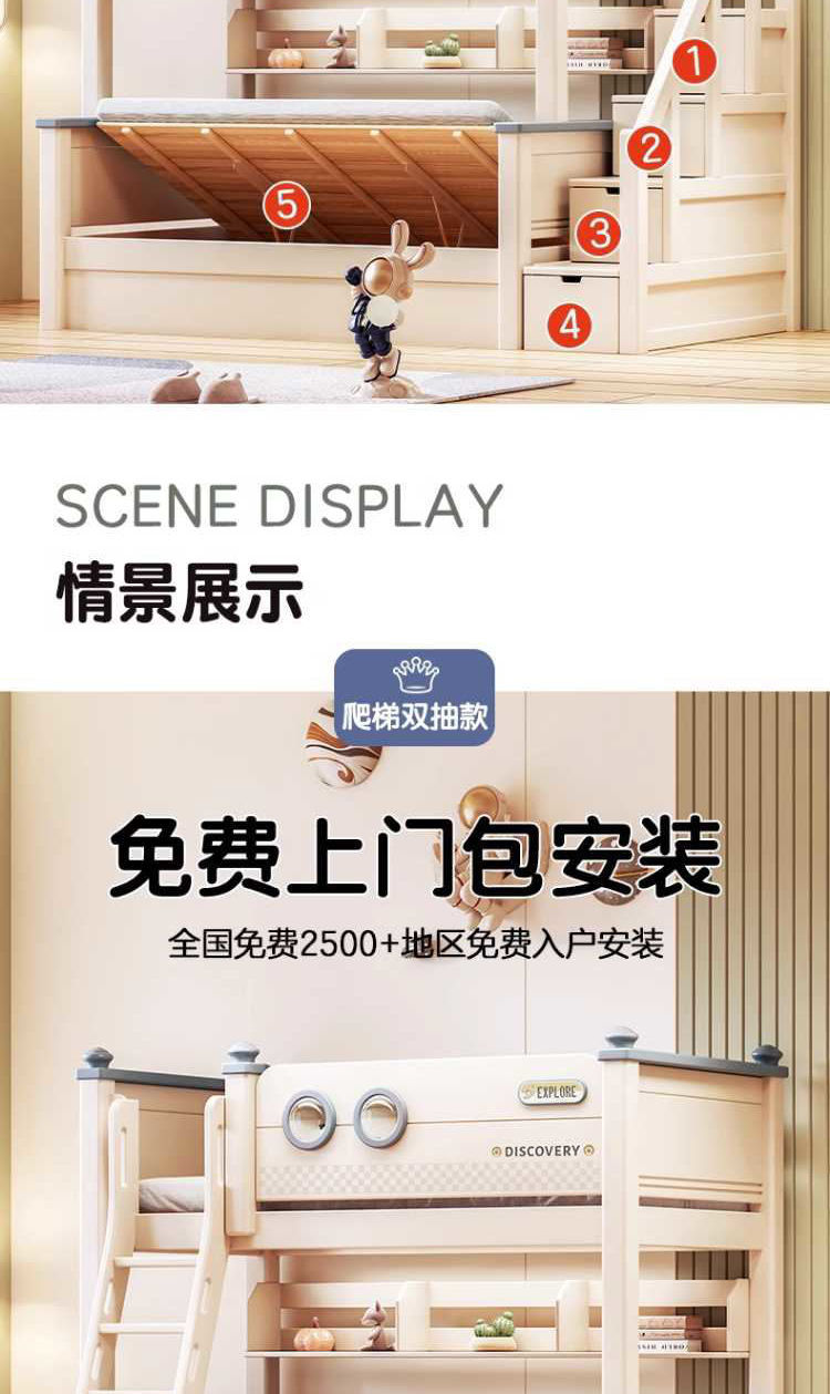 • 사다리 캐비닛 모델 + 더블 서랍, 무료 상하 매트리스