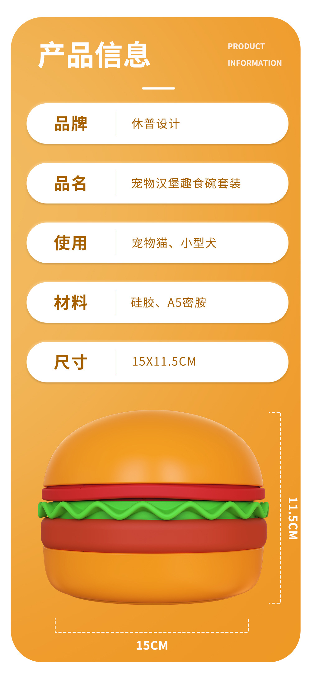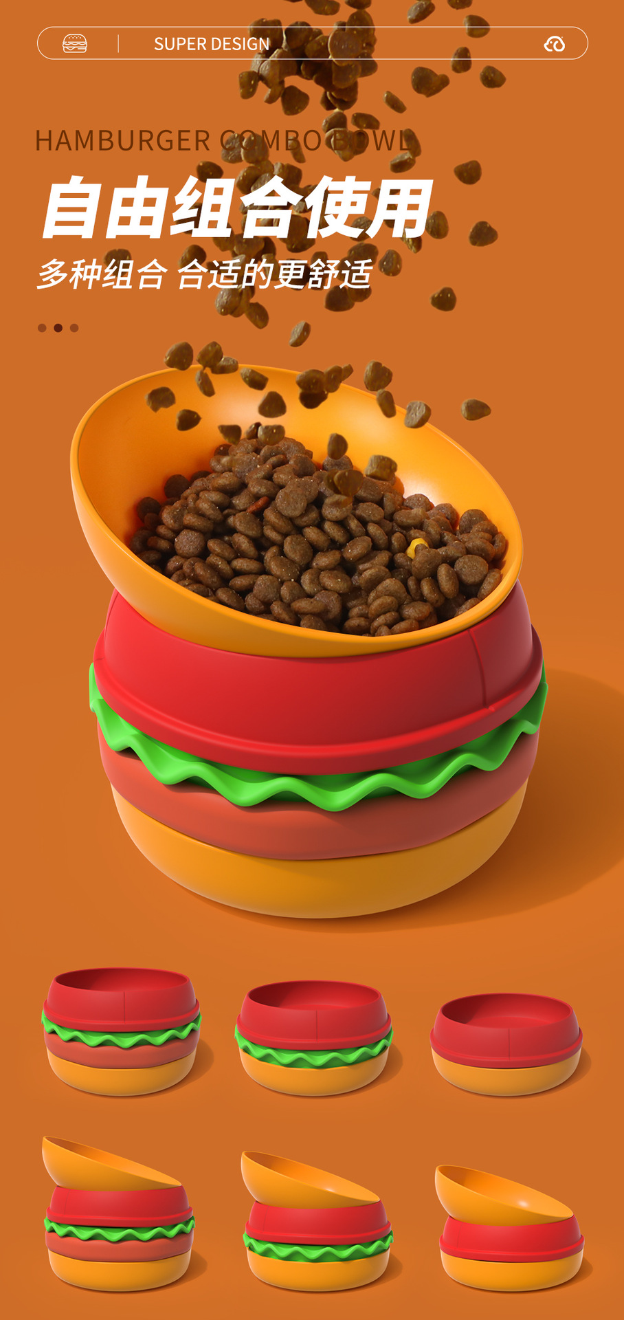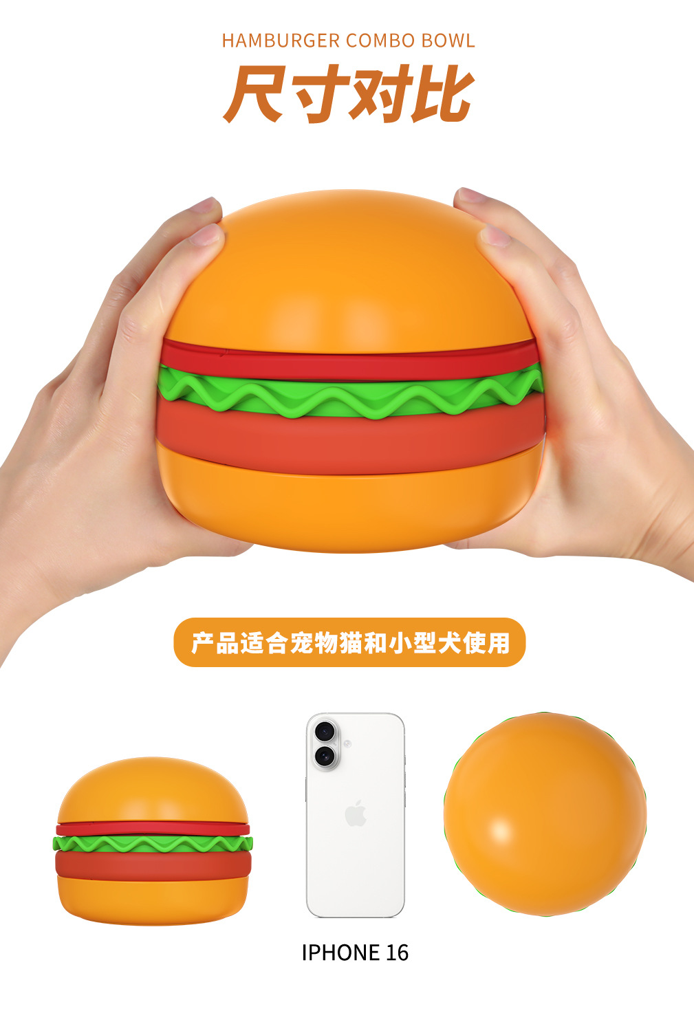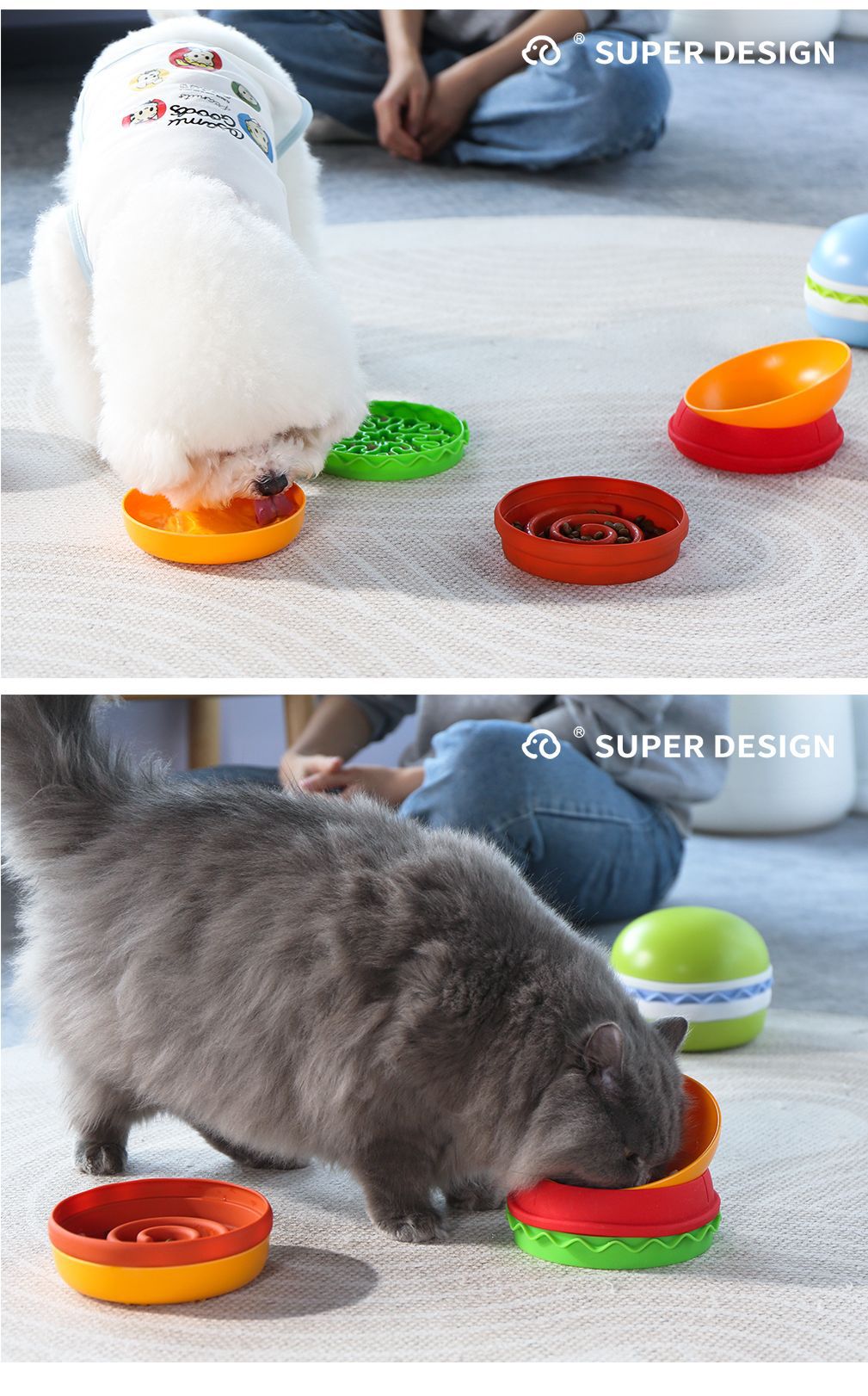 Hupu Pet Hamburger Bowl 식기 식기 다용도 애완 동물 식기 그릇 먹이 개 그릇 고양이 그릇 개 식품 분지 휴대용 보관스토어 가기
