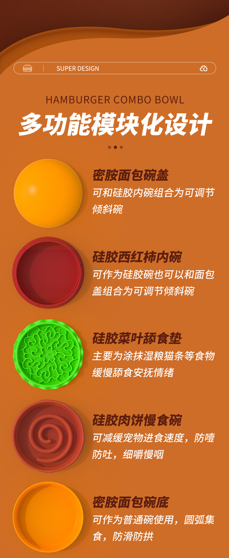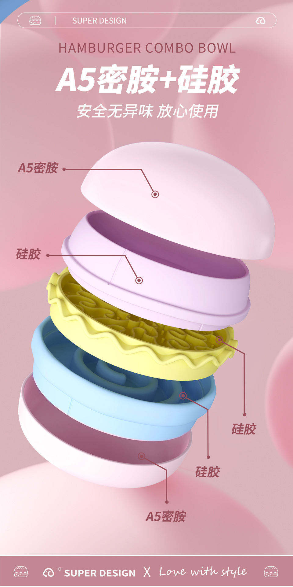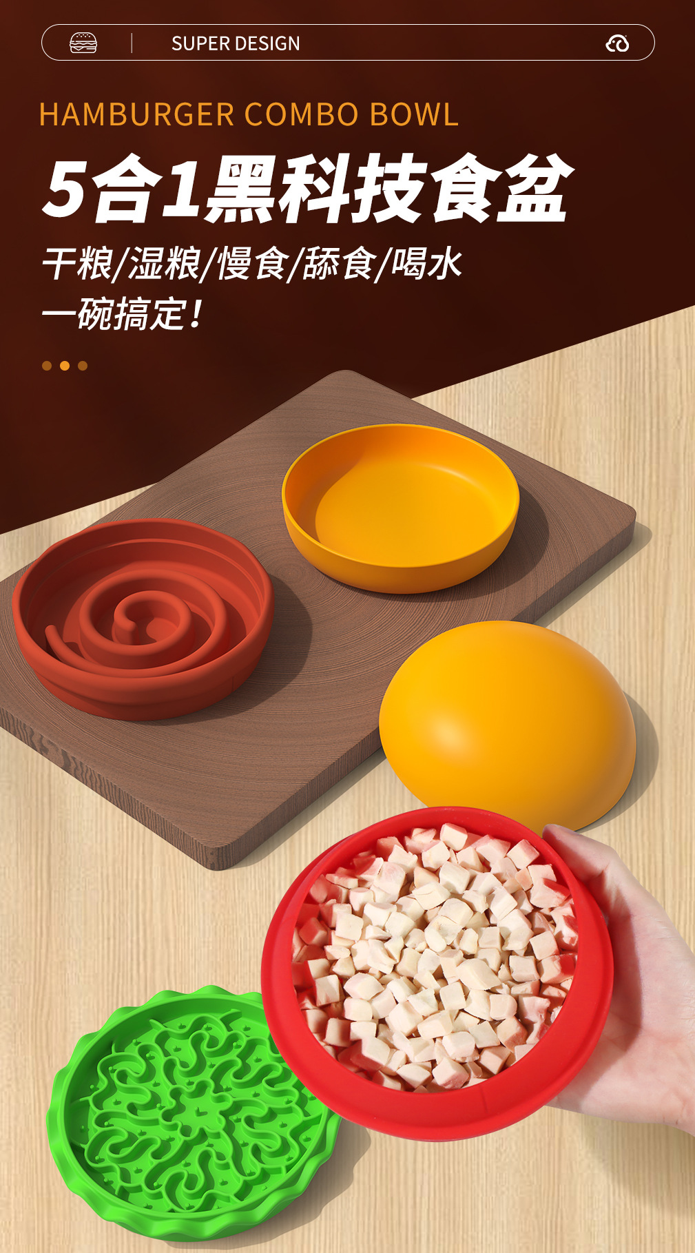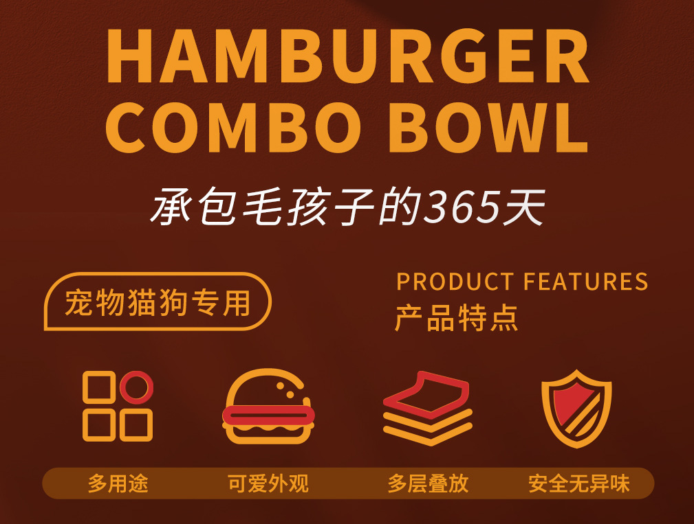 Hupu Pet Hamburger Bowl 식기 식기 다용도 애완 동물 식기 그릇 먹이 개 그릇 고양이 그릇 개 식품 분지 휴대용 보관스토어 가기