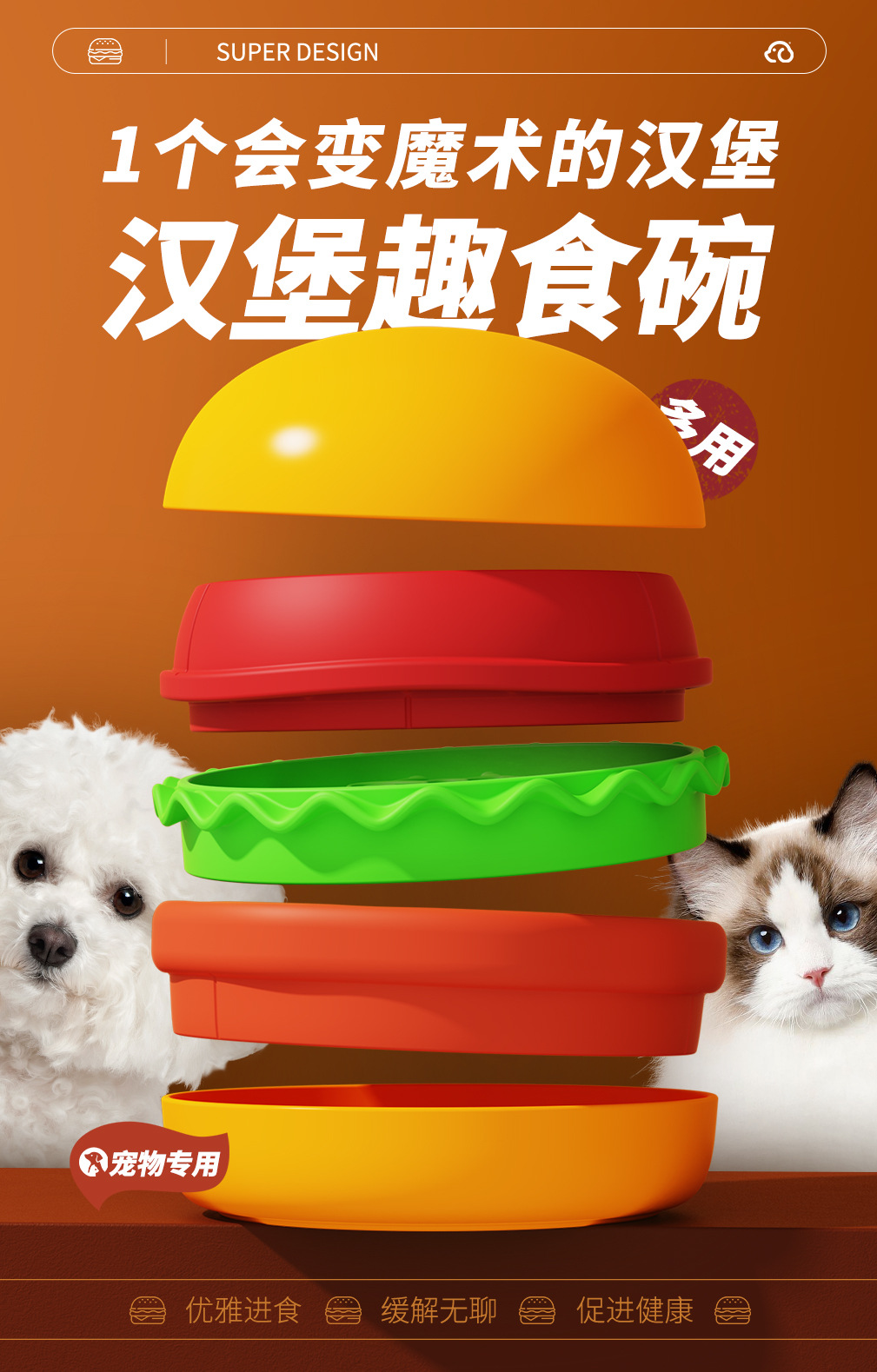 Hupu Pet Hamburger Bowl 식기 식기 다용도 애완 동물 식기 그릇 먹이 개 그릇 고양이 그릇 개 식품 분지 휴대용 보관