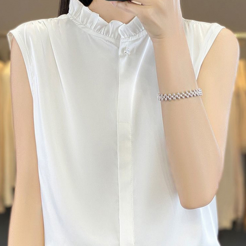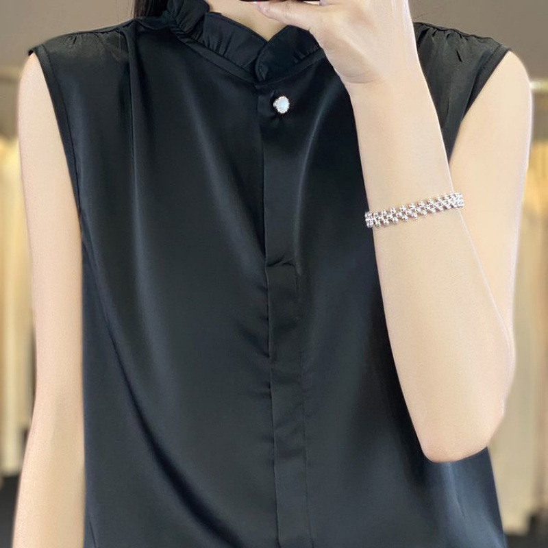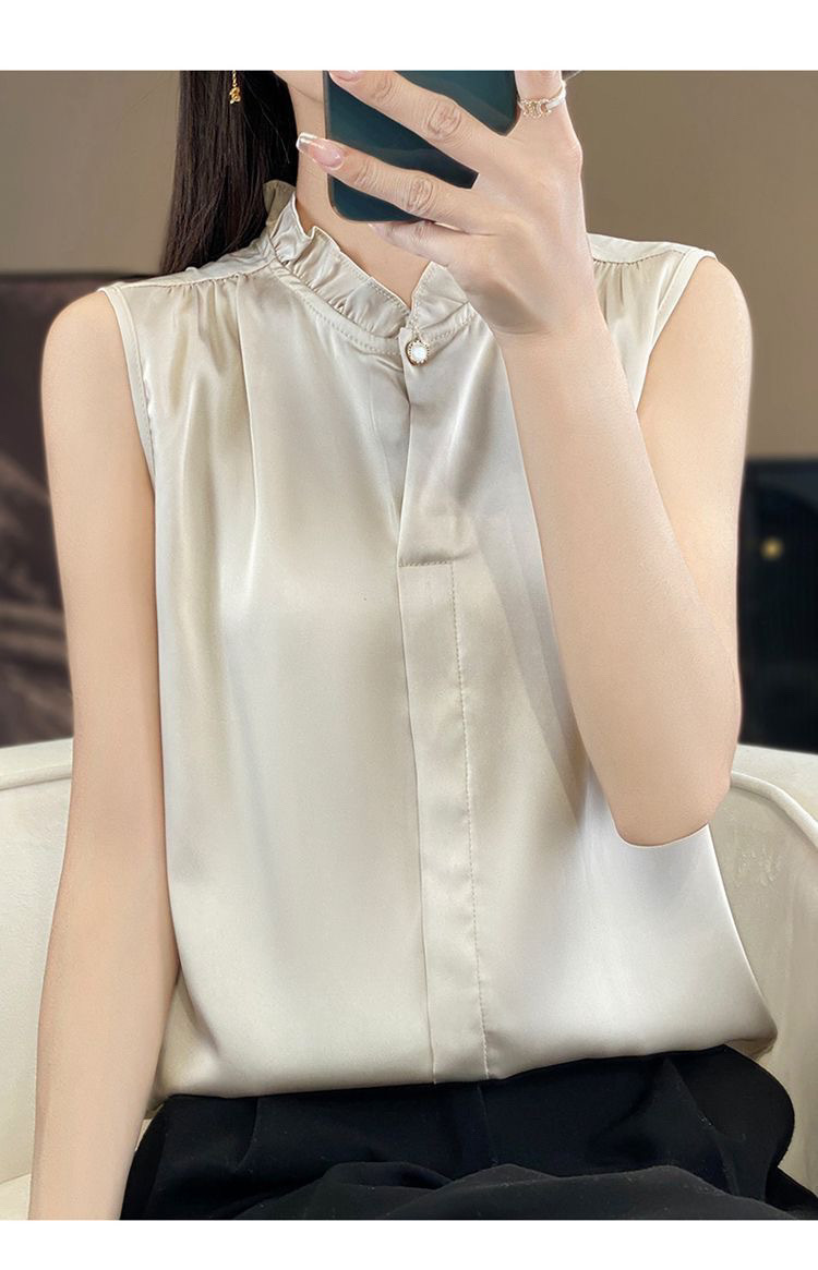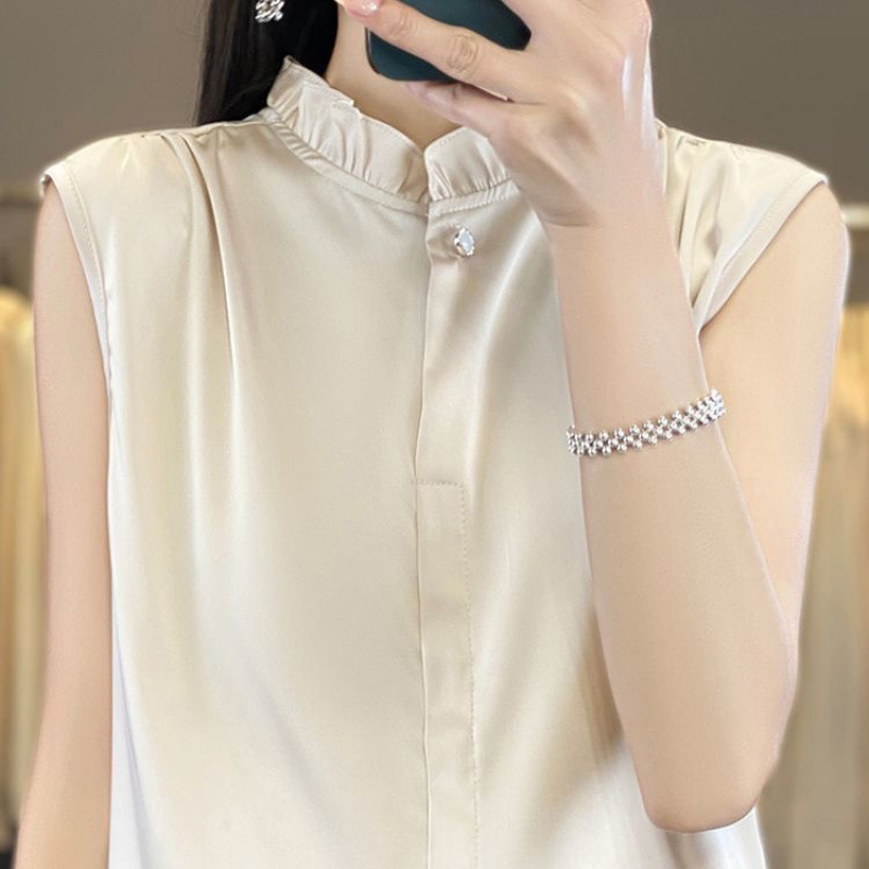 2025 년 여름 폭발 새틴 민소매 티셔츠 패션 얇은 아이스 실크 아우터 세련된 슬림베이스 올 매치 탑