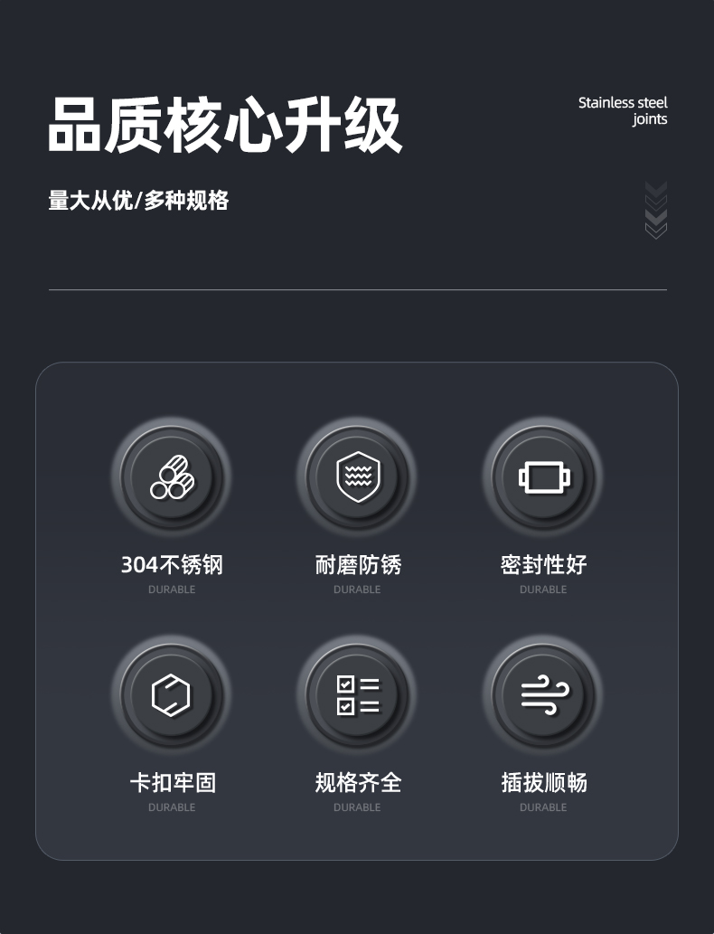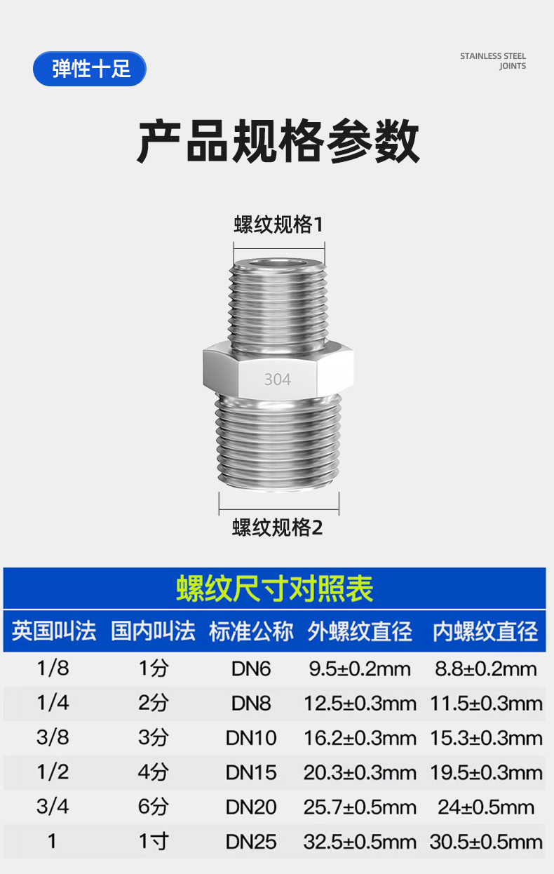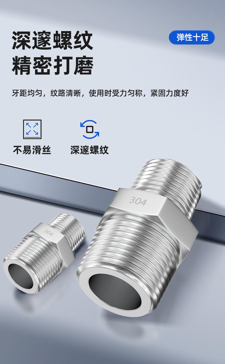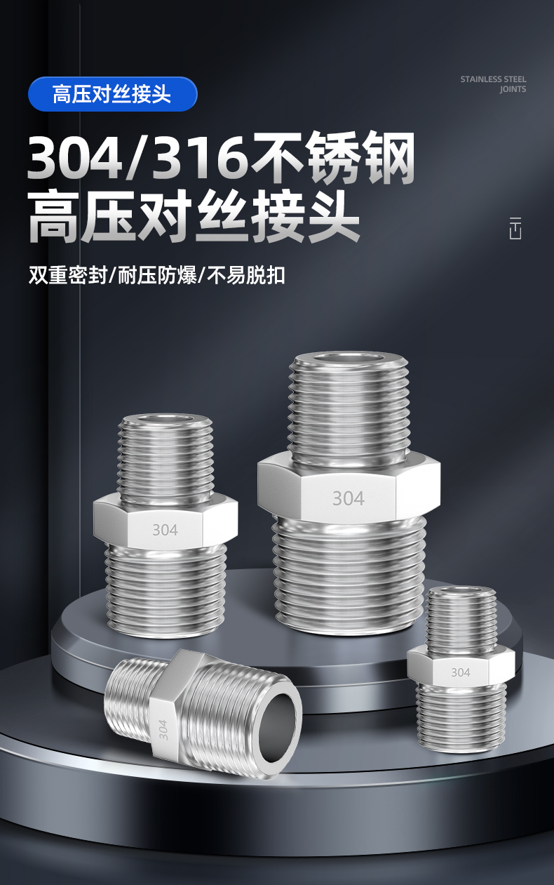 304 스테인레스 스틸 육각형 외부 와이어 고압 두꺼운 더블 헤드 외부 치아 스트레이트 조인트 CNC 와이어 2 점 4 점 1/2스토어 가기