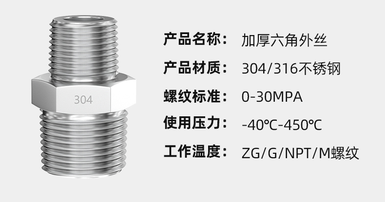 304 스테인레스 스틸 육각형 외부 와이어 고압 두꺼운 더블 헤드 외부 치아 스트레이트 조인트 CNC 와이어 2 점 4 점 1/2