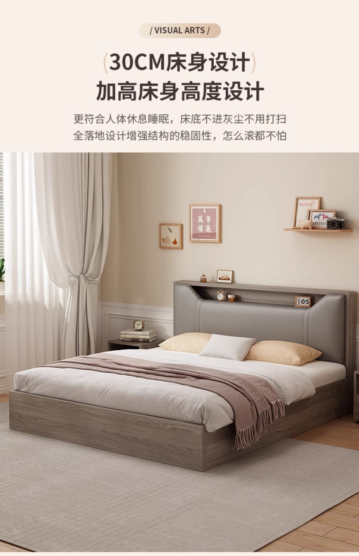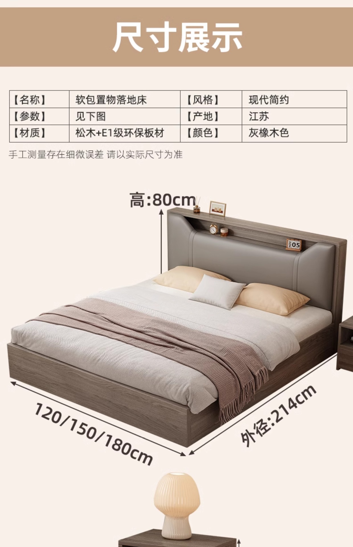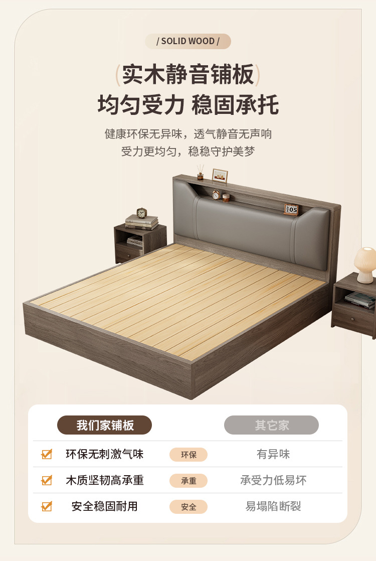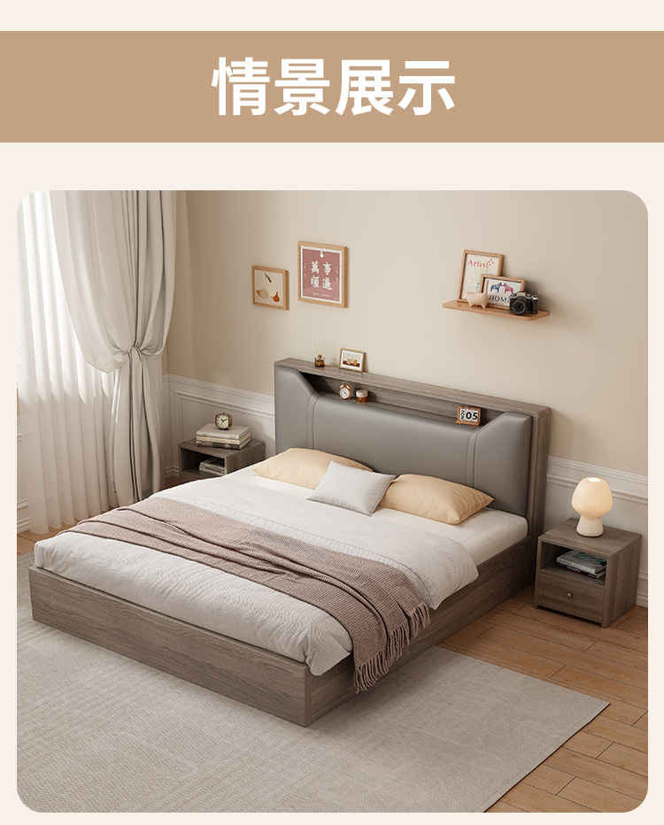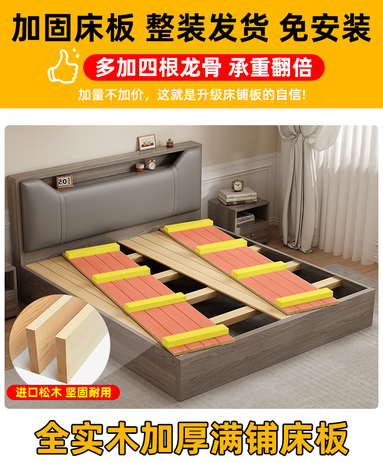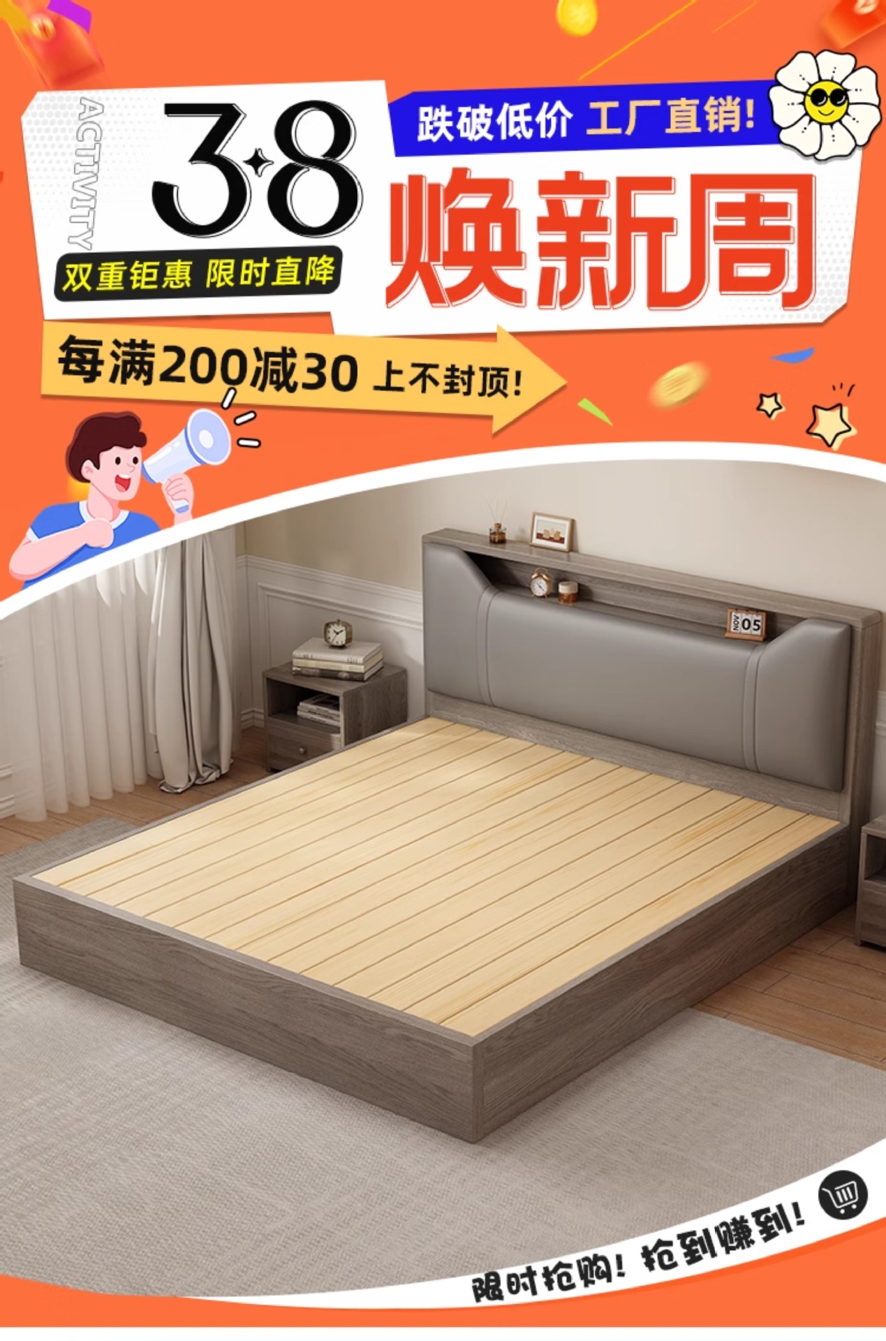 床实木床现代简约1.8m软包双人床1.5家用榻榻米1.2单人床出租房用스토어 가기