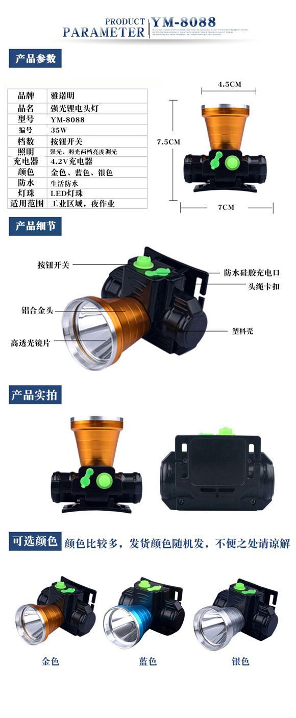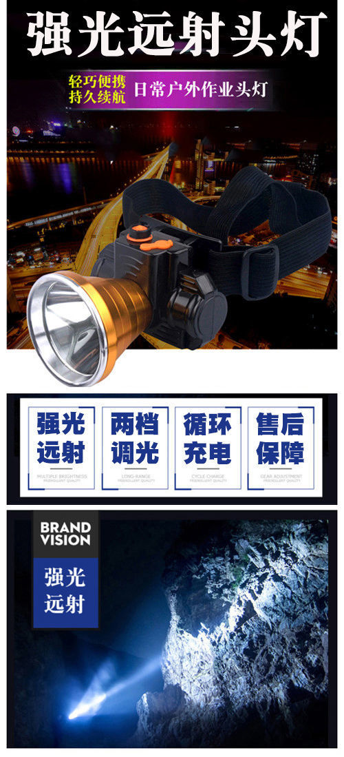 LED 밝은 빛 장거리 리튬 충전식 헤드 라이트 야외 헤드 라이딩 야간 낚시 광부의 램프 손전등