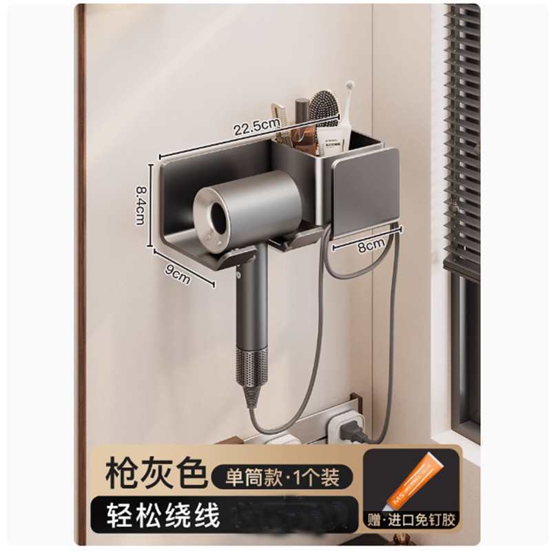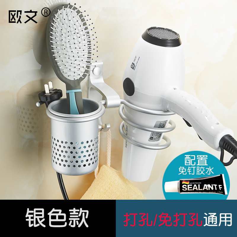 공간 알루미늄 헤어 드라이어 선반 욕실 헤어 살롱 벽 교수형 가정용 헤어 드라이어 선반 펀치 프리