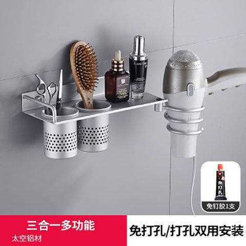 공간 알루미늄 헤어 드라이어 선반 욕실 헤어 살롱 벽 교수형 가정용 헤어 드라이어 선반 펀치 프리스토어 가기