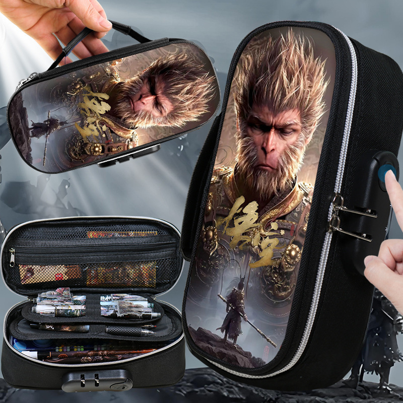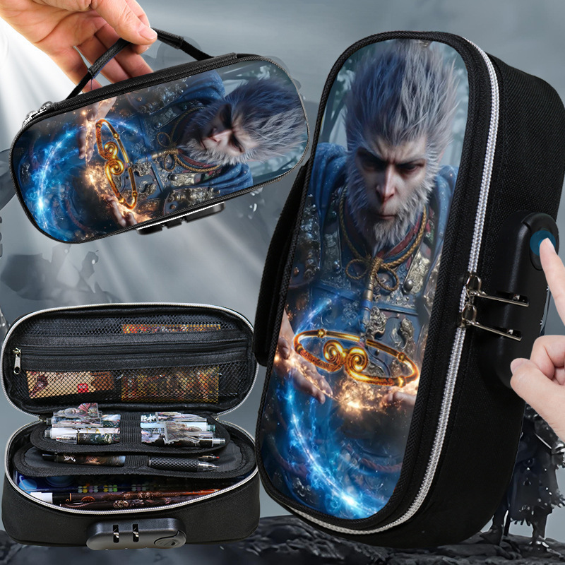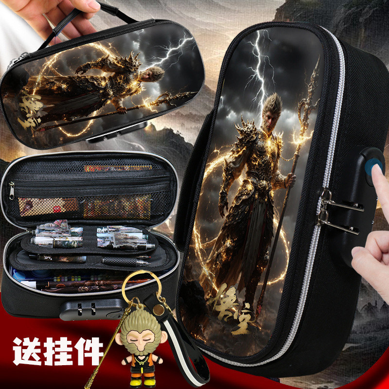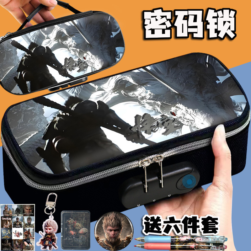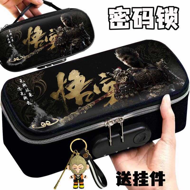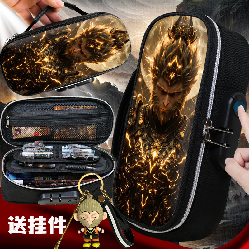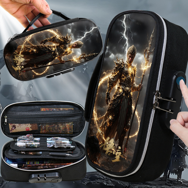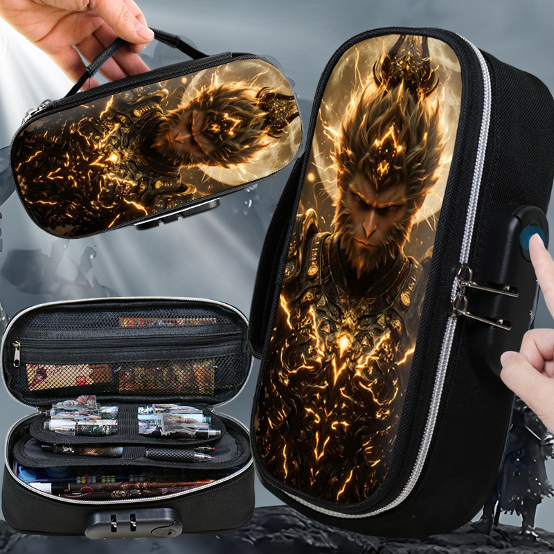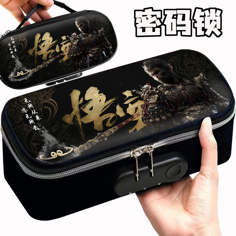 도매 검은 신화 조합 잠금 펜 케이스 소년 휴대용 4 층 문구 케이스 초등 및 중등 학생을위한 내강성 연필 케이스스토어 가기