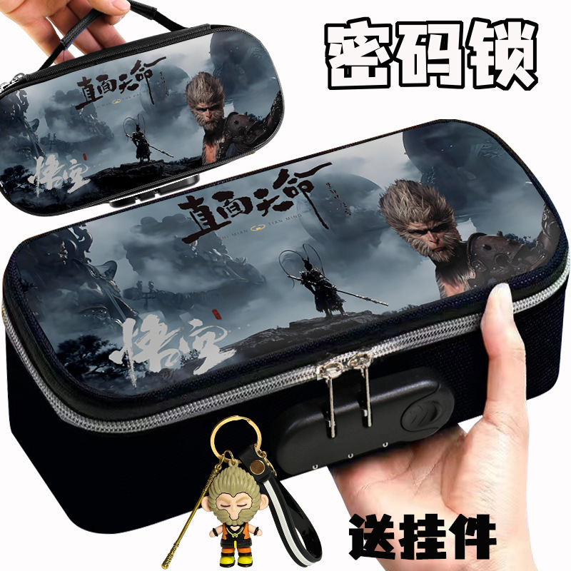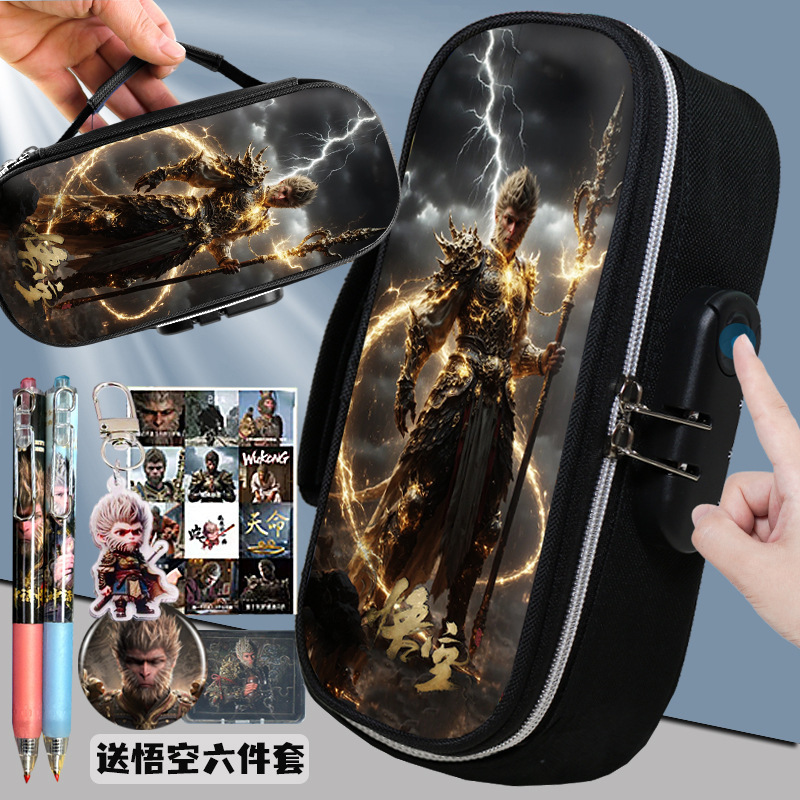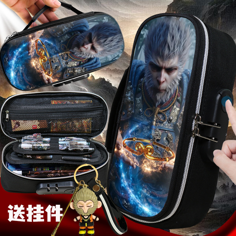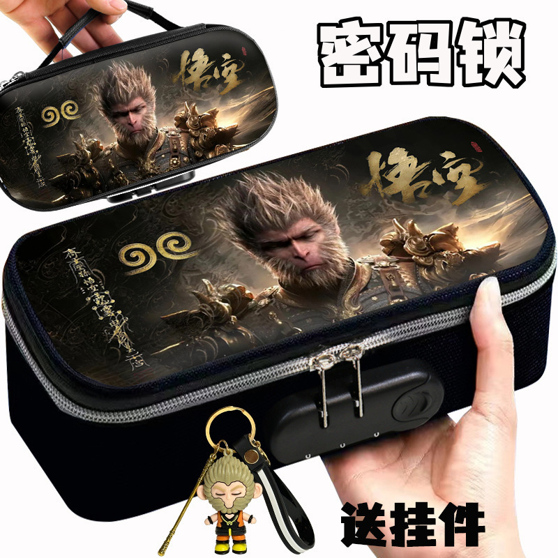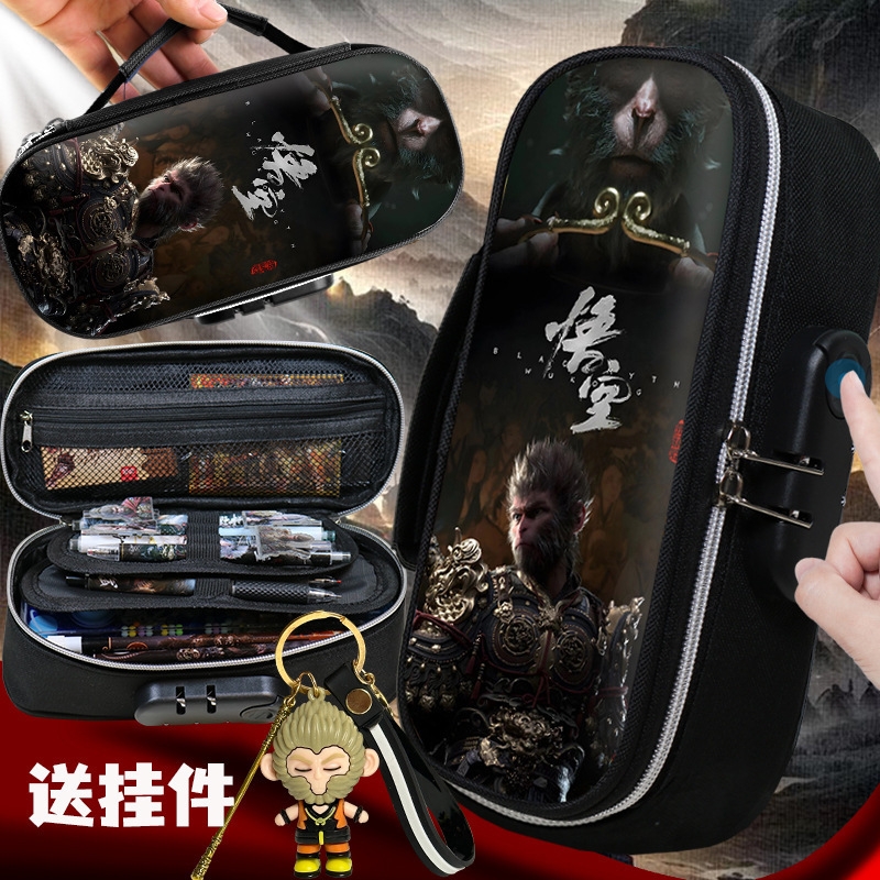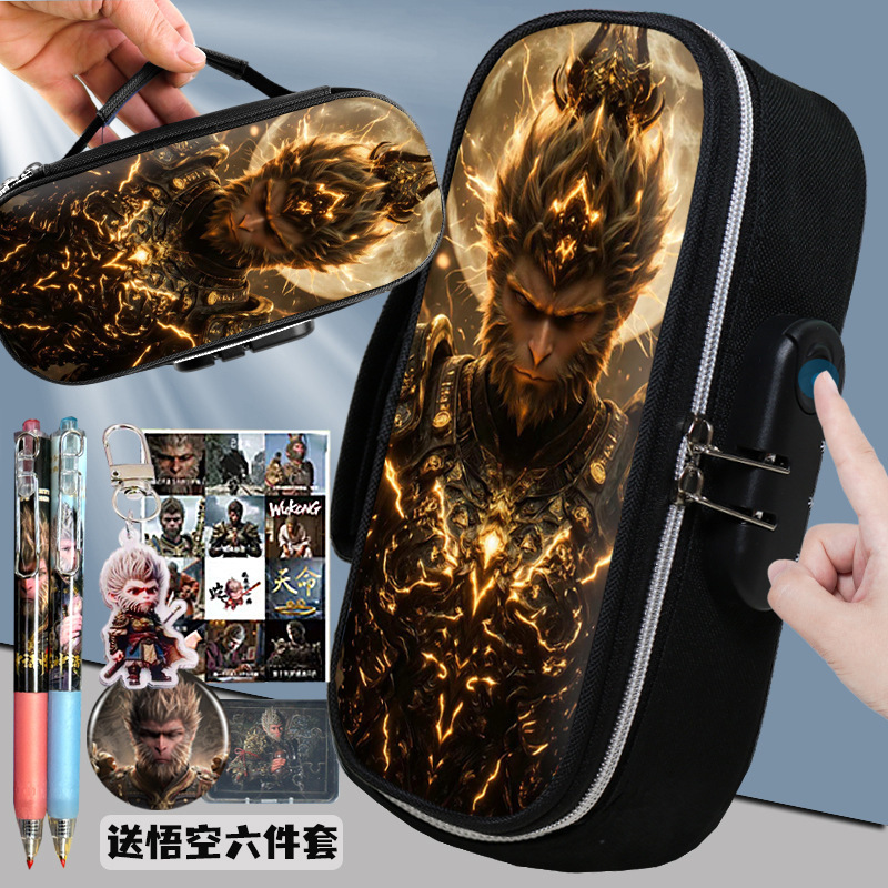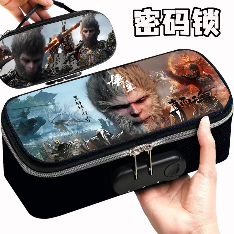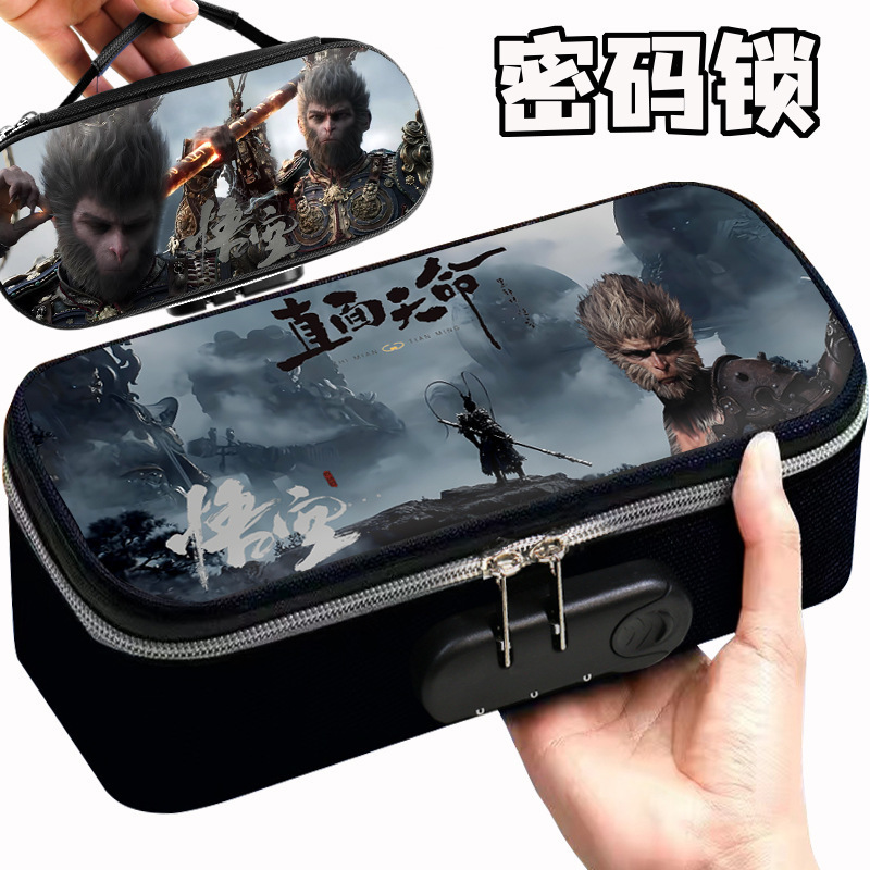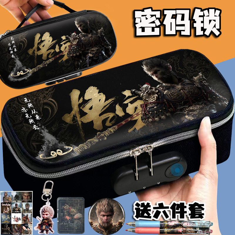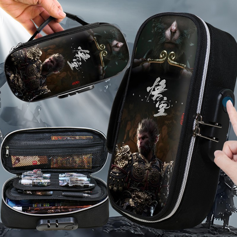 도매 검은 신화 조합 잠금 펜 케이스 소년 휴대용 4 층 문구 케이스 초등 및 중등 학생을위한 내강성 연필 케이스스토어 가기