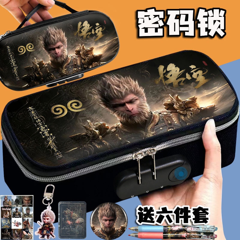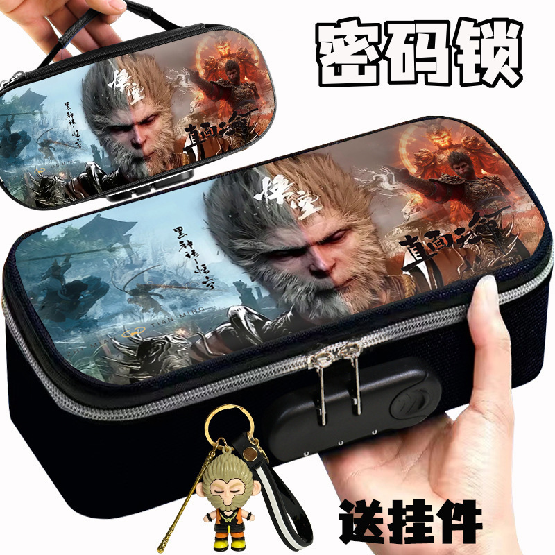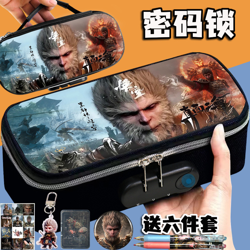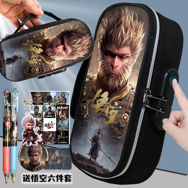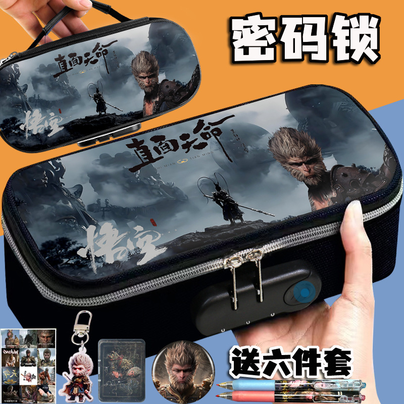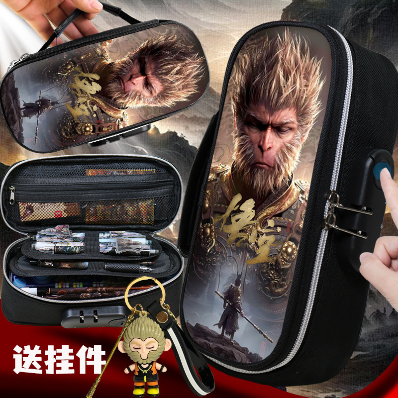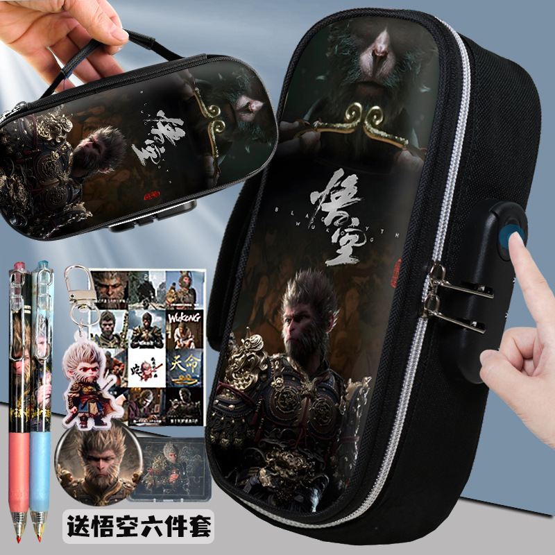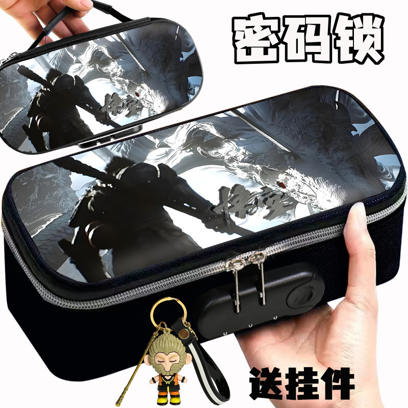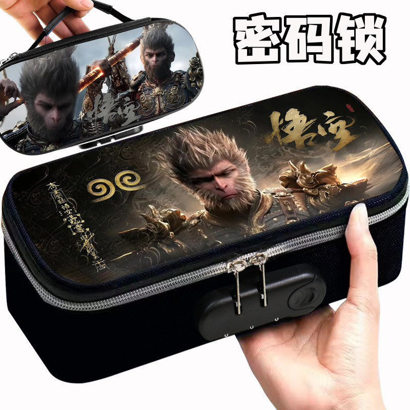 도매 검은 신화 조합 잠금 펜 케이스 소년 휴대용 4 층 문구 케이스 초등 및 중등 학생을위한 내강성 연필 케이스스토어 가기