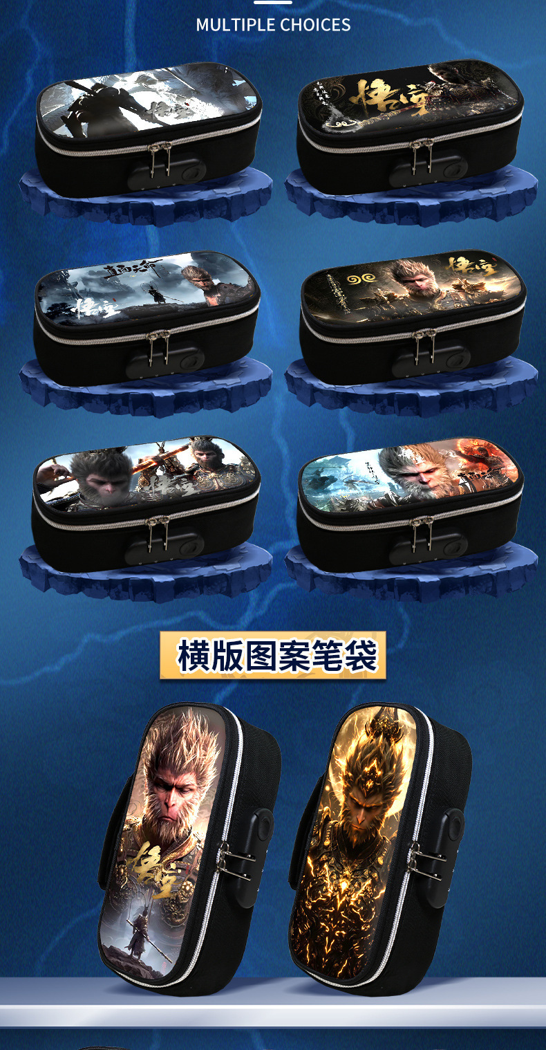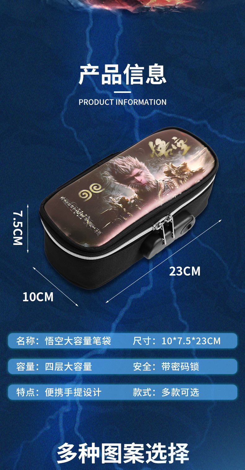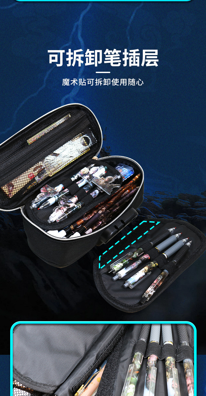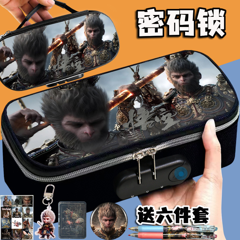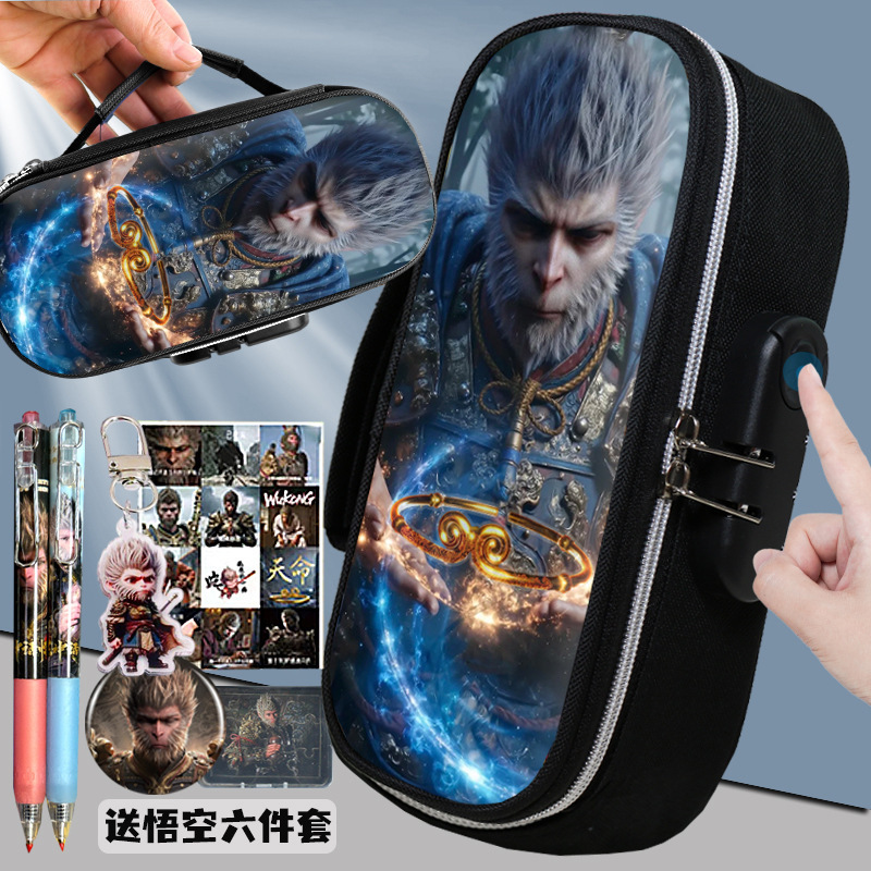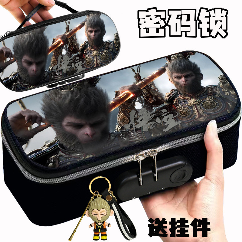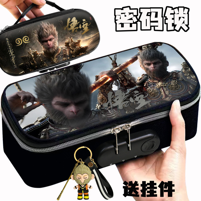 도매 검은 신화 조합 잠금 펜 케이스 소년 휴대용 4 층 문구 케이스 초등 및 중등 학생을위한 내강성 연필 케이스스토어 가기