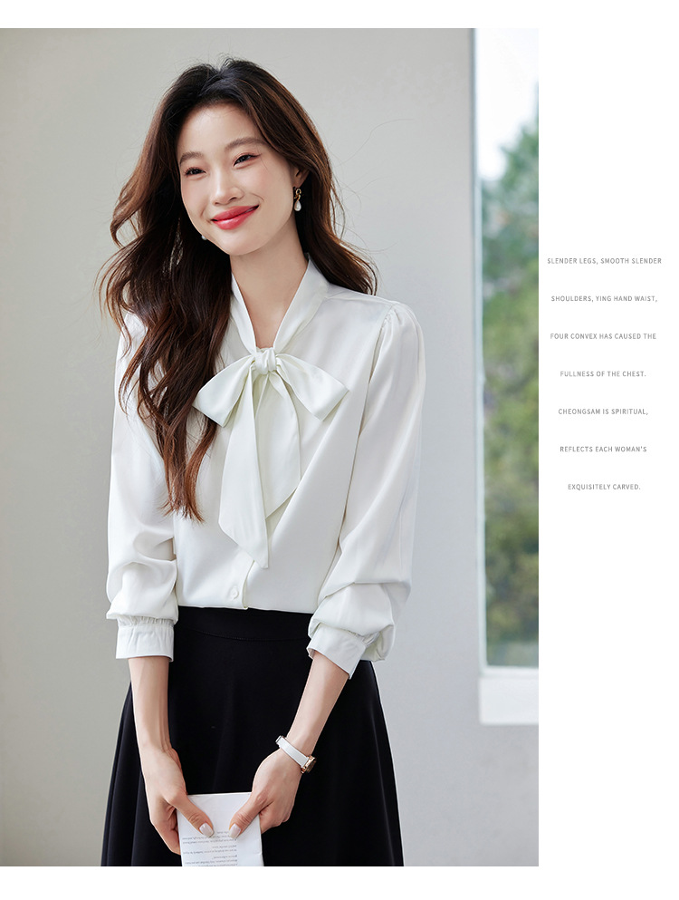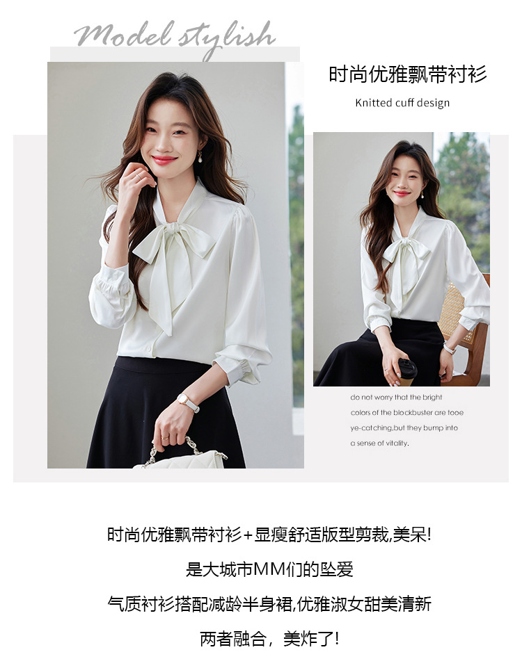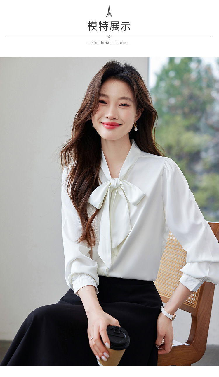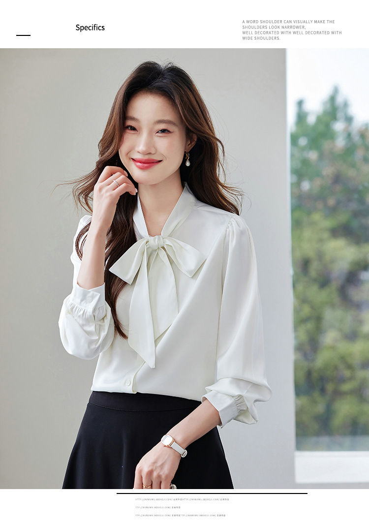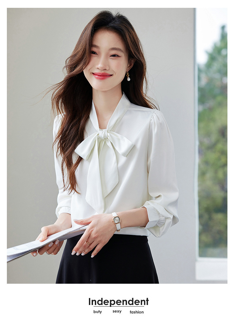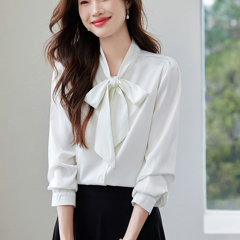 진짜 샷 활 셔츠 여성용 긴팔 2025 봄 새 프랑스 리본 탑 기본 흰색 셔츠스토어 가기