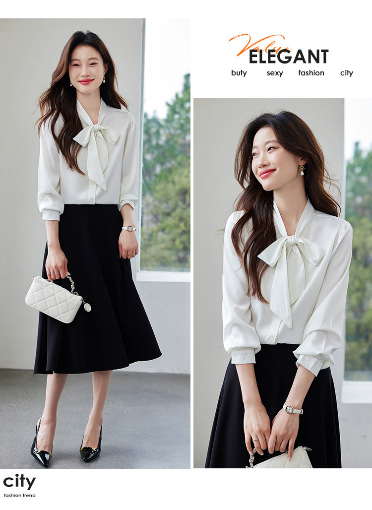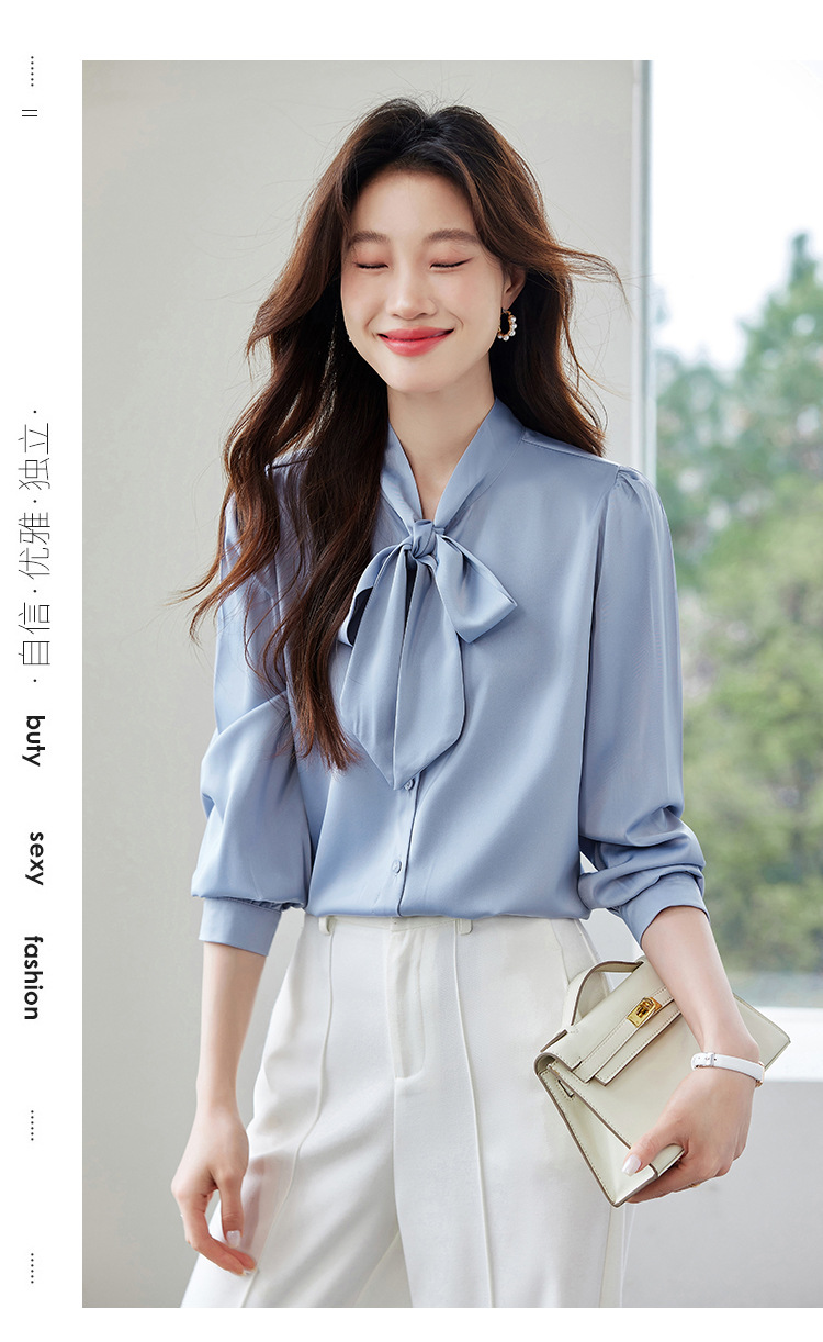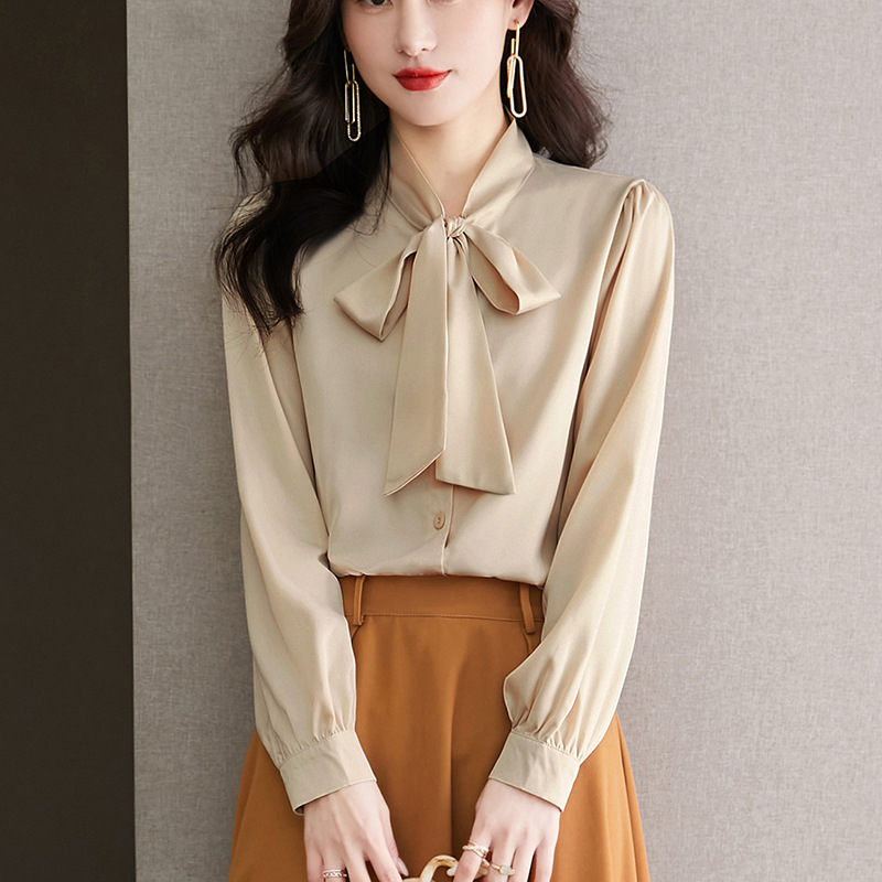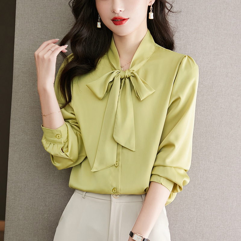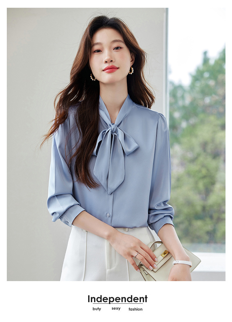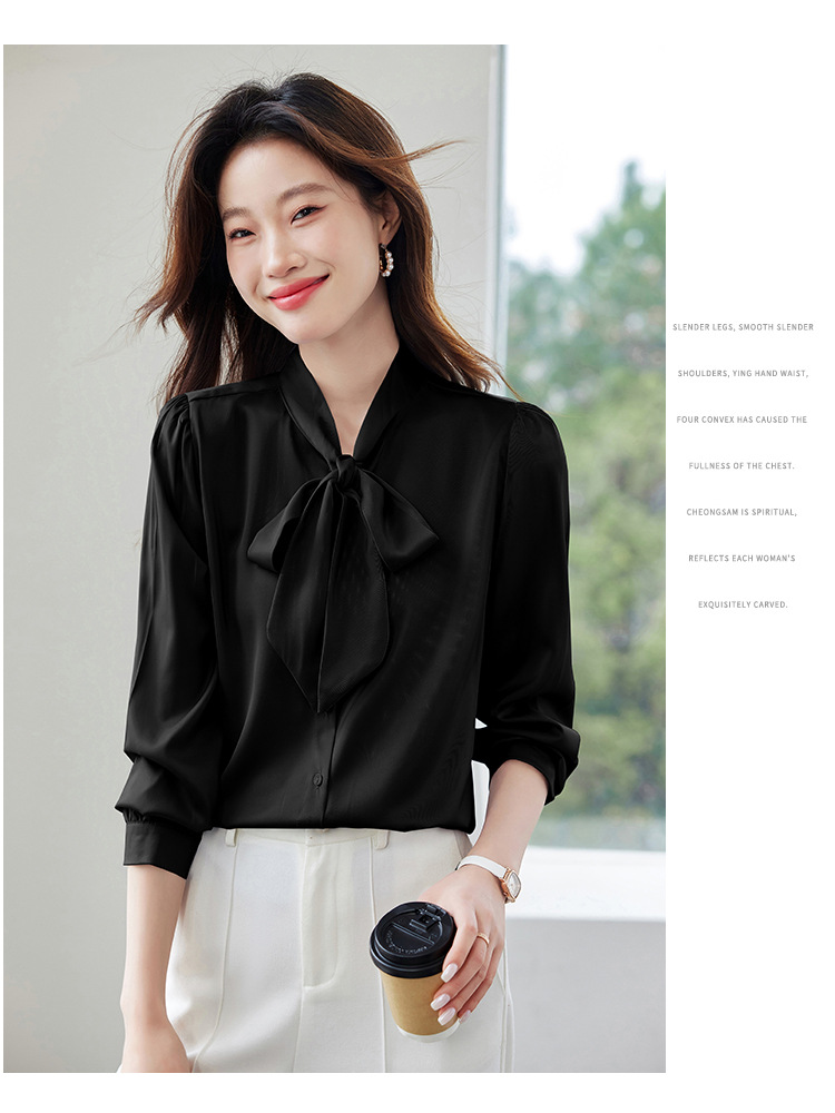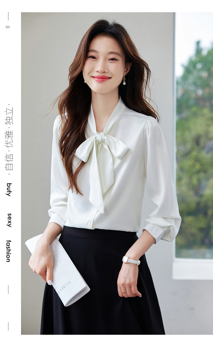 진짜 샷 활 셔츠 여성용 긴팔 2025 봄 새 프랑스 리본 탑 기본 흰색 셔츠스토어 가기