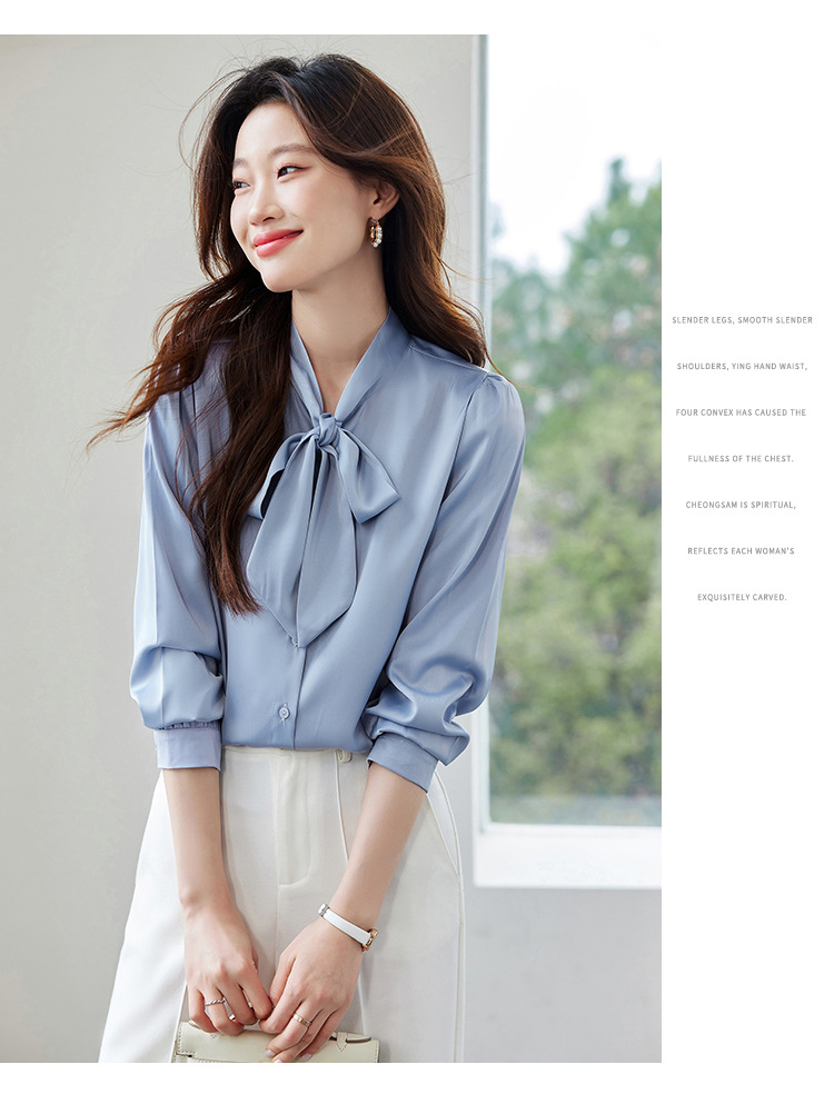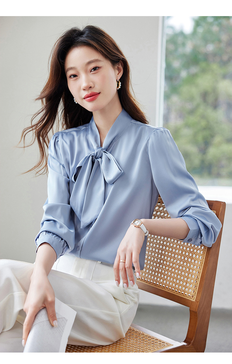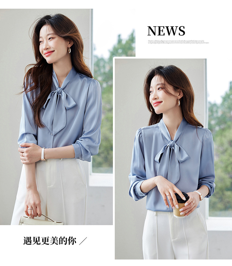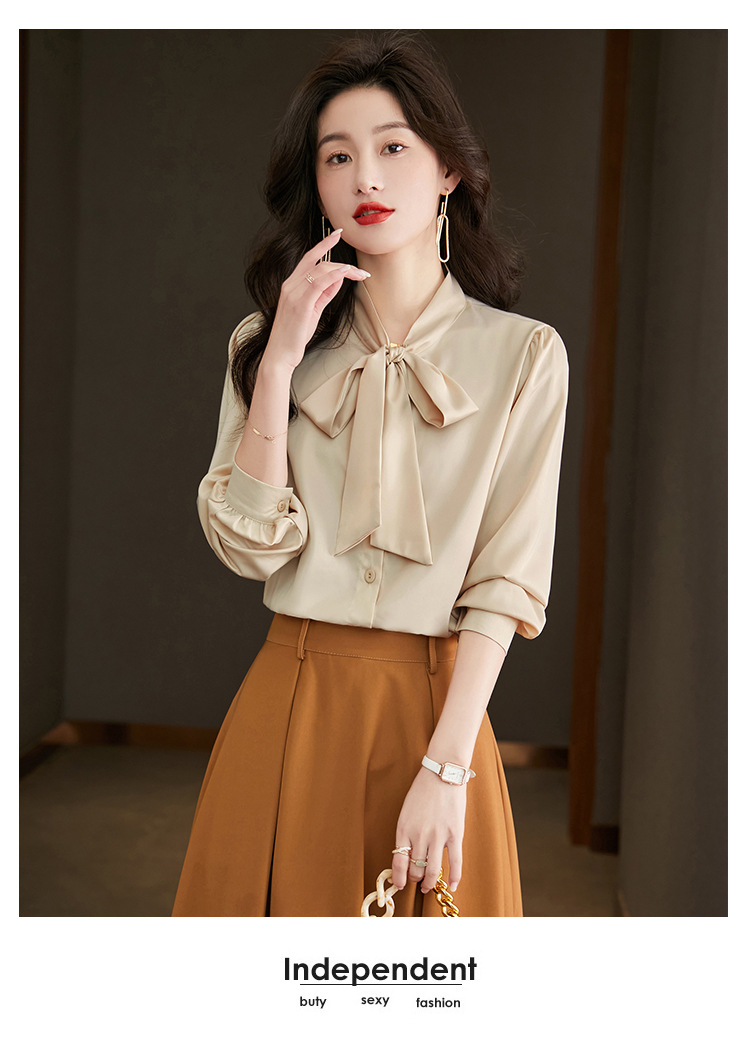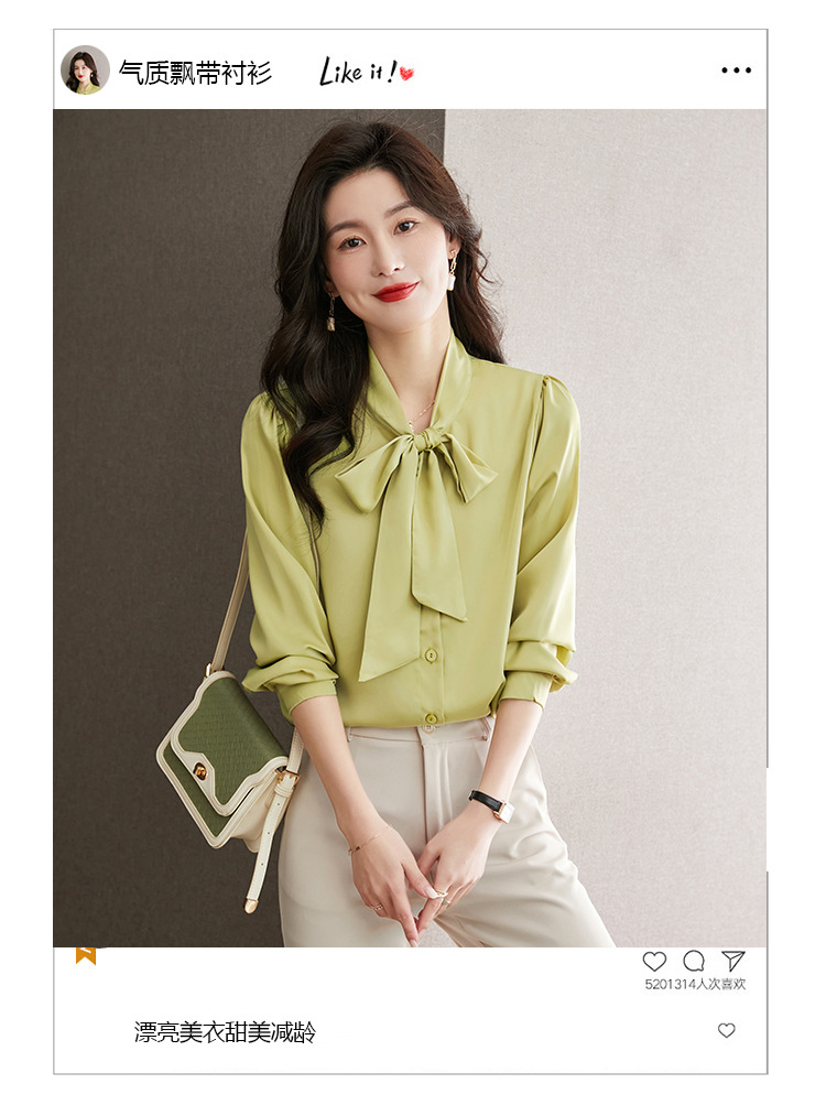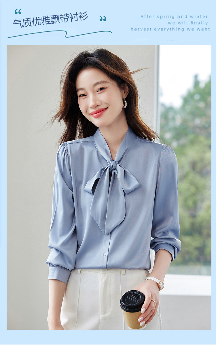 진짜 샷 활 셔츠 여성용 긴팔 2025 봄 새 프랑스 리본 탑 기본 흰색 셔츠스토어 가기