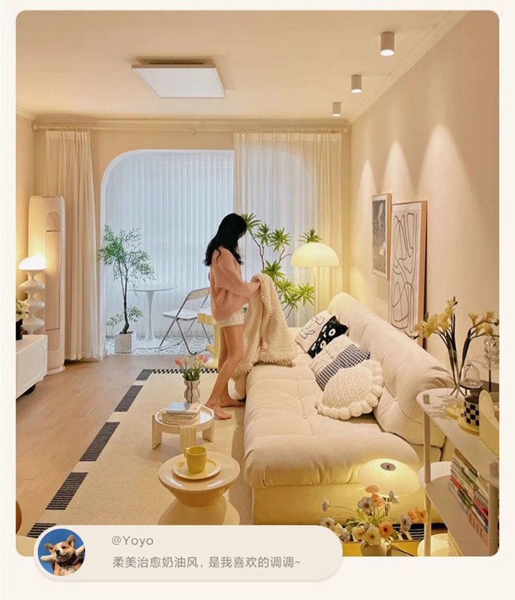 크림 Fengyunduo 소파 스트레이트 행 간단한 작은 아파트 거실 게으른 소파 더블 3 인 원단 조합스토어 가기