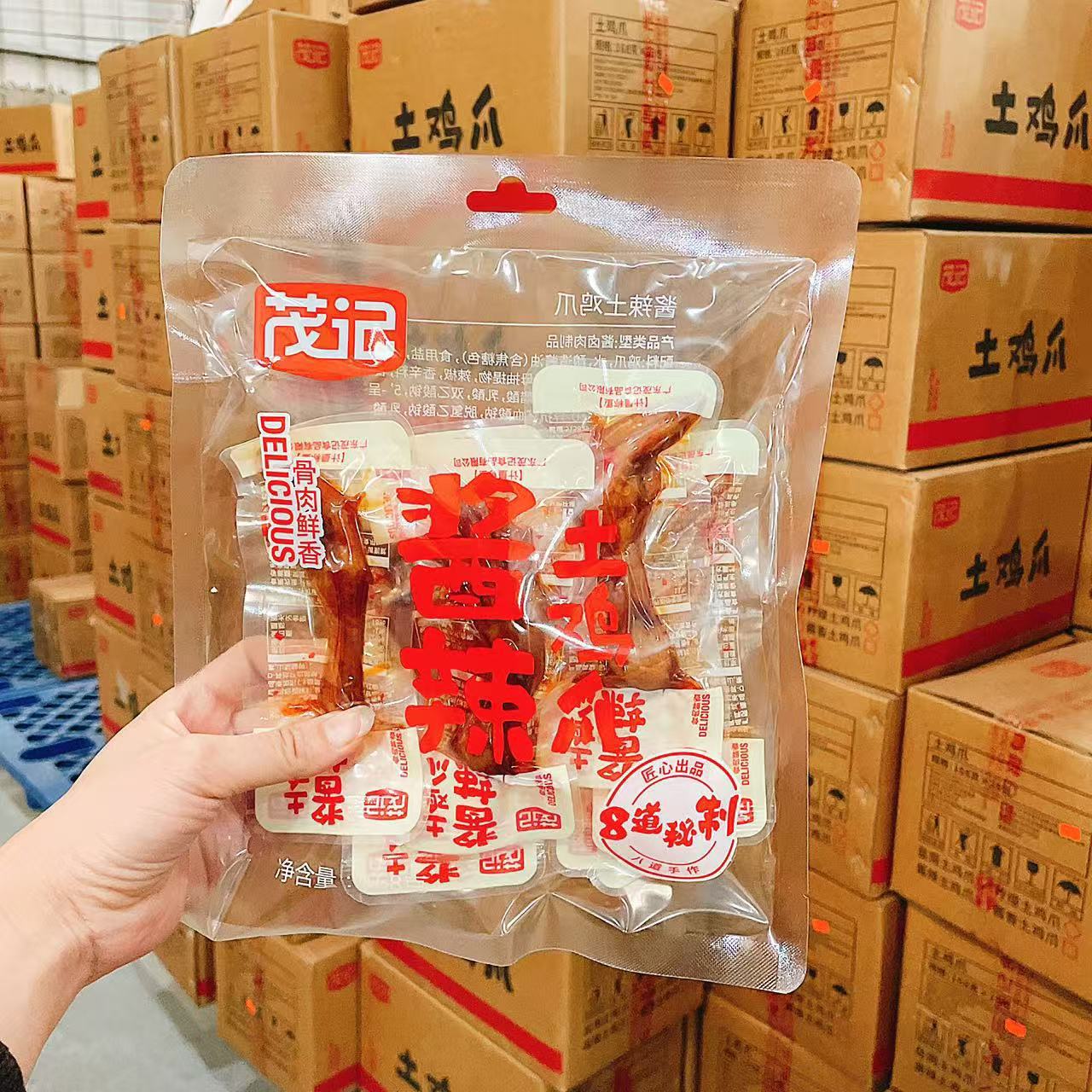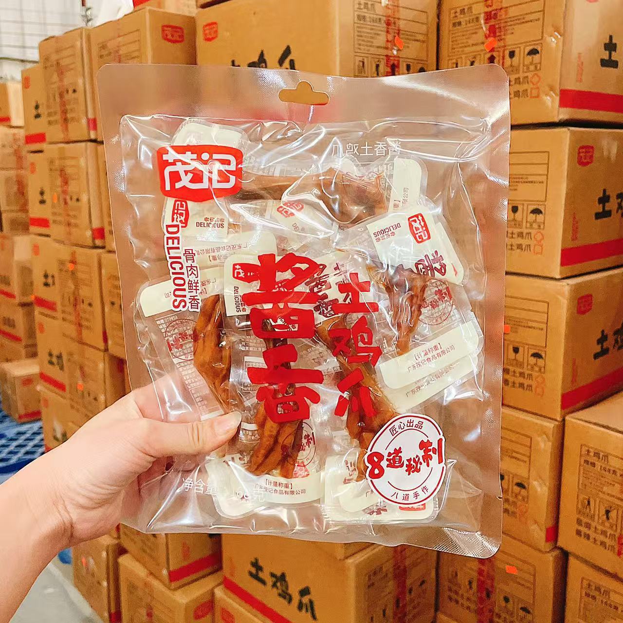 Maoji 토양 닭 발 소금 구운 절인 닭 발 매운 호랑이 피부 닭 피트 168 그램의 그물 레드 스낵 도매