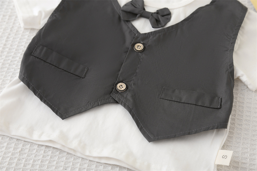 소년의 여름 세트 새로운 아동복 아기의 여름 얇은 조끼 나비 넥타이 가짜 투피스 반팔 세트