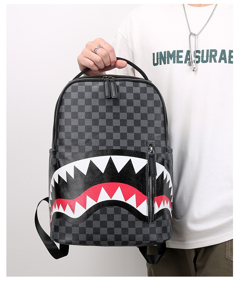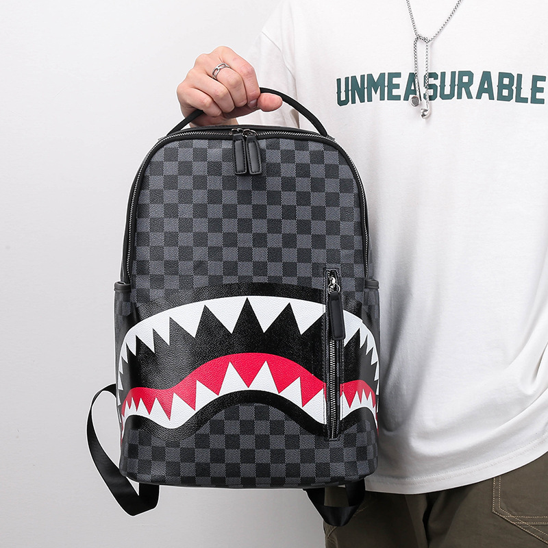 국경 간 패션 브랜드 남성 PU 가죽 배낭 캐주얼 체크 무늬 여행 배낭 대용량 체크 무늬 스쿨백 컴퓨터 가방스토어 가기